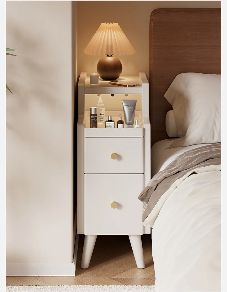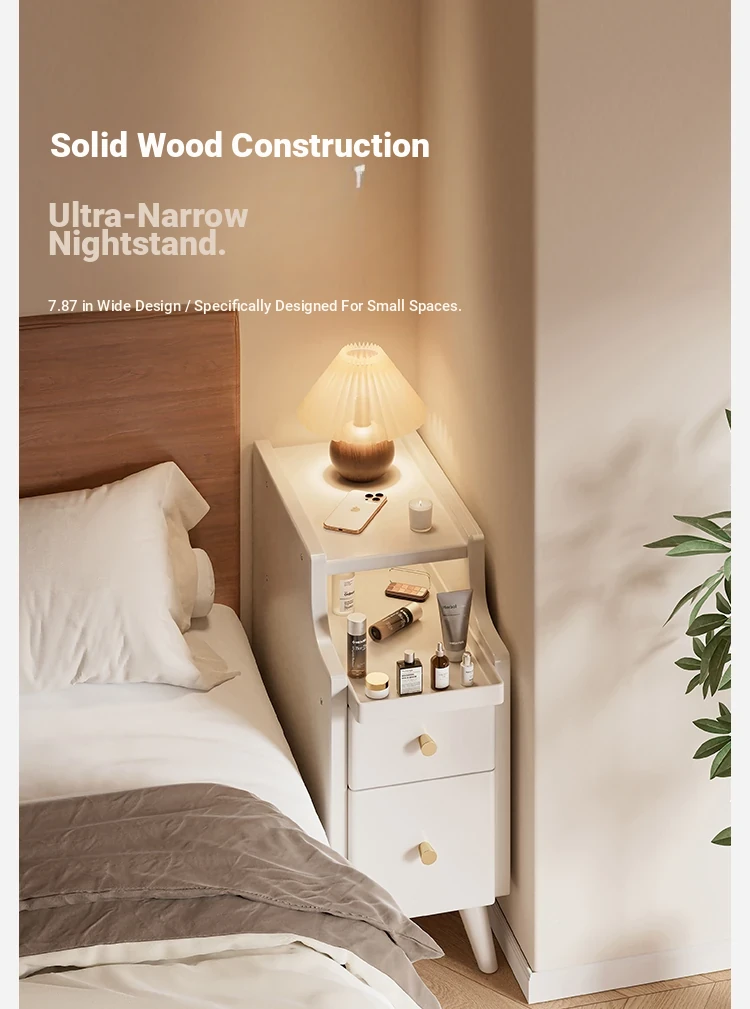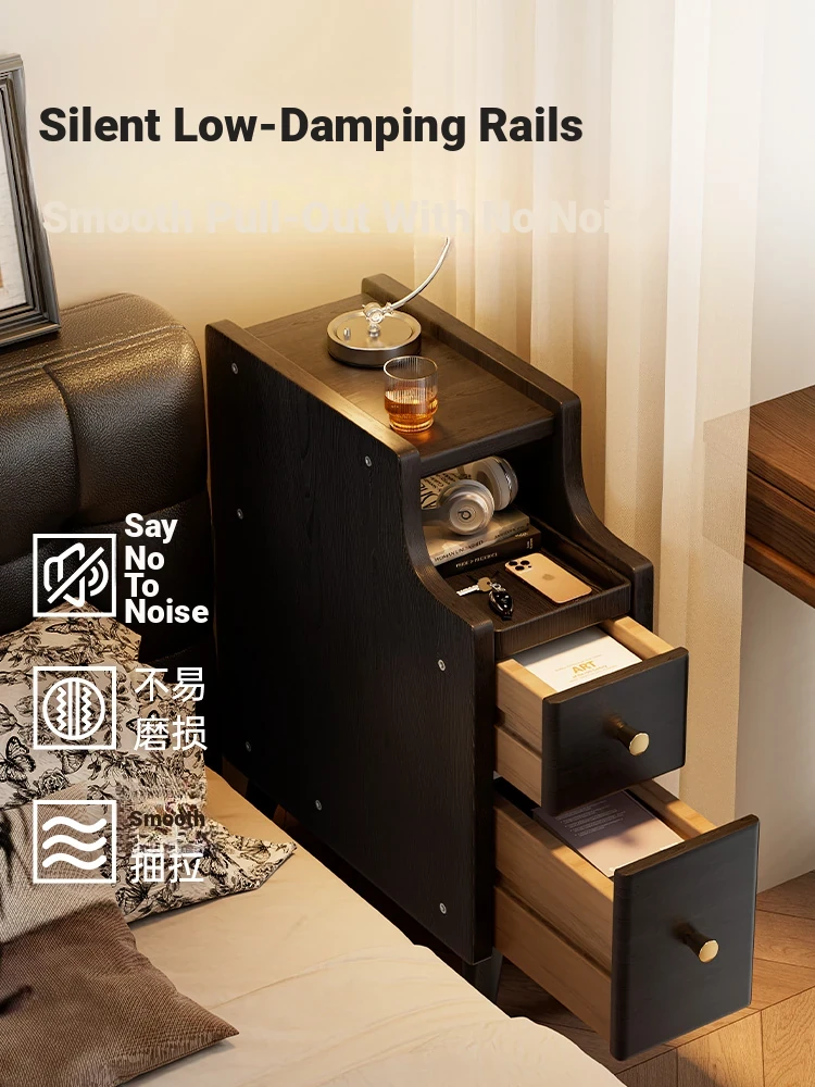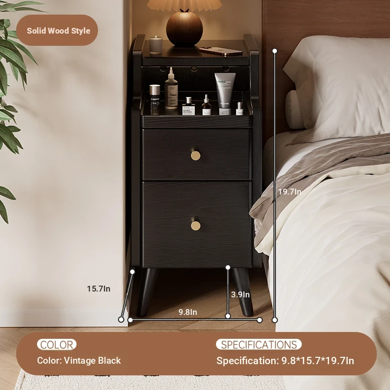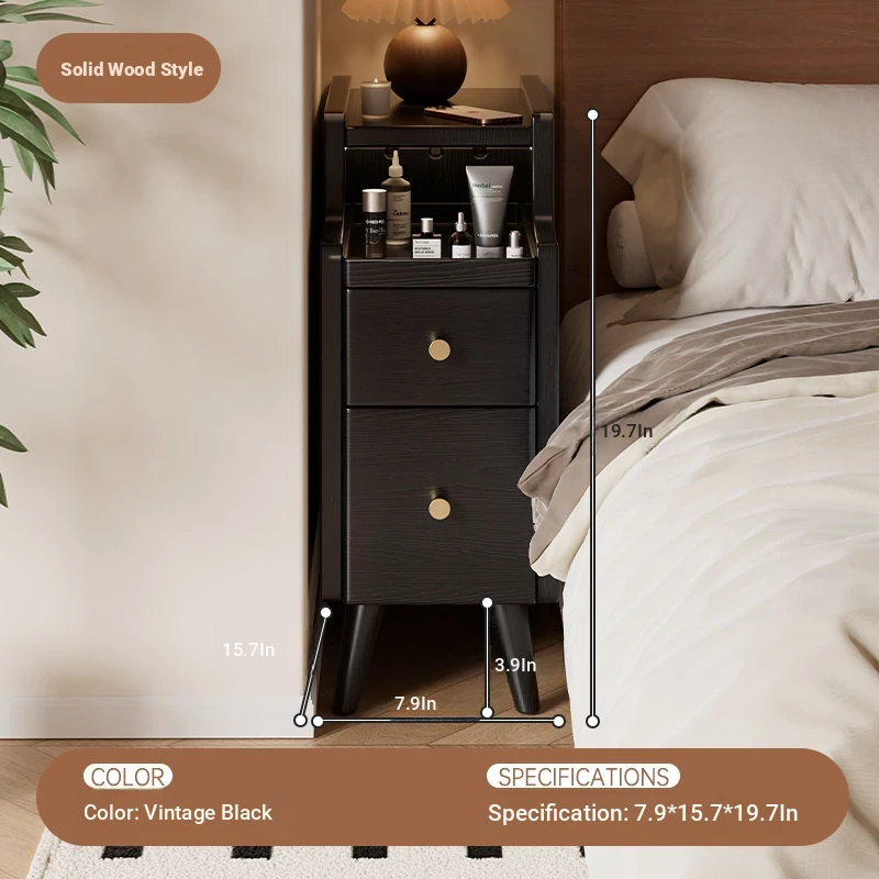 Sleek Black Mini Solid Wood Nightstand - Compact Bedside Storage Cabinet for Bedroom, Perfect for Small Spaces and Narrow Gaps