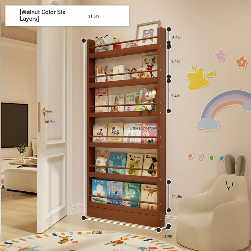 ⭐Main drawing⭐Walnut color, 6 layers, 23.62in long [ultra-narrow gap storage, anti-reverse paste]]