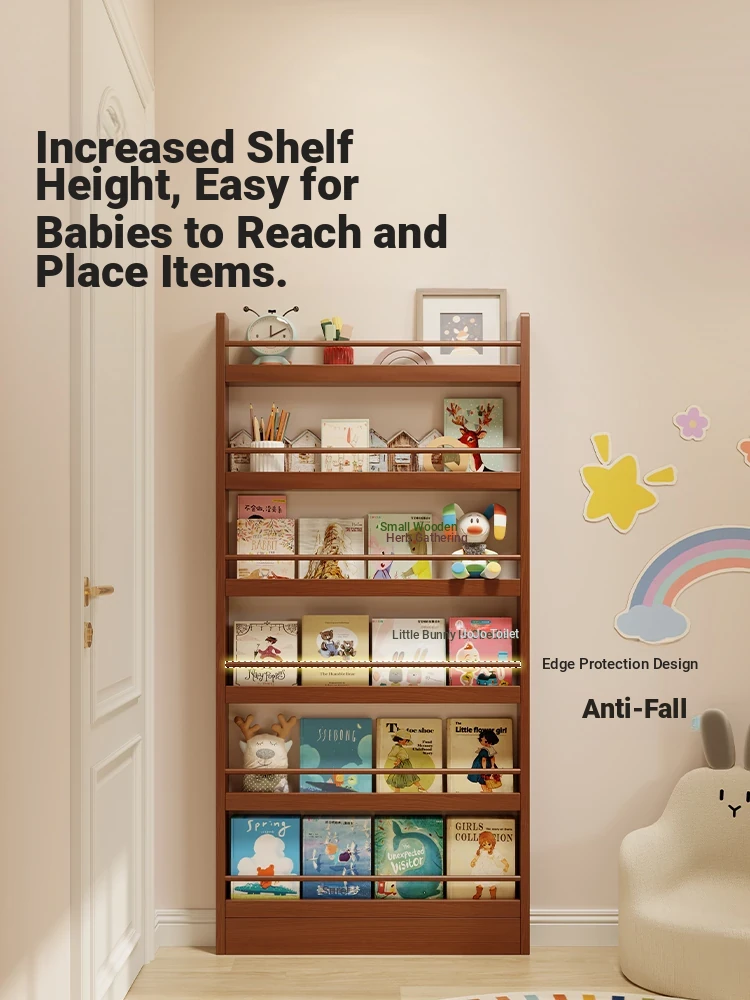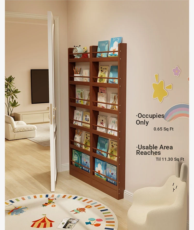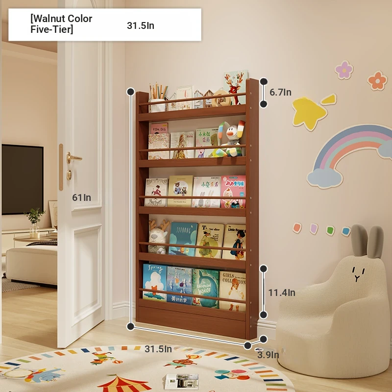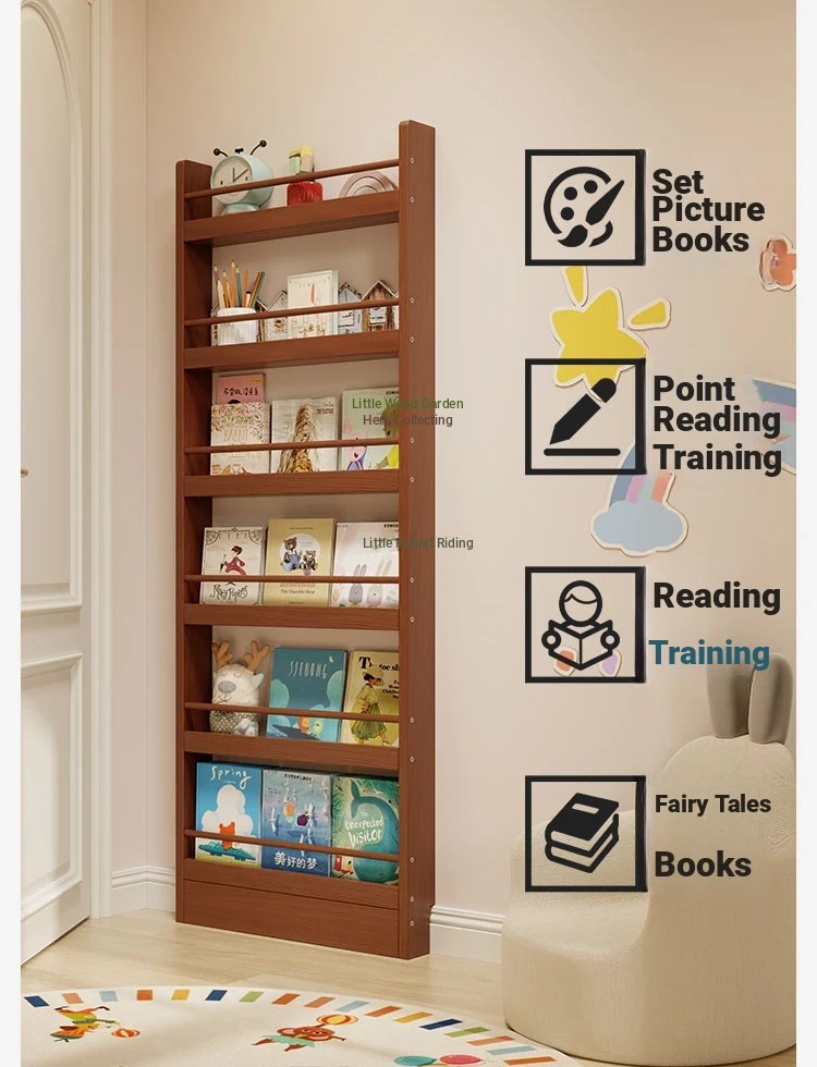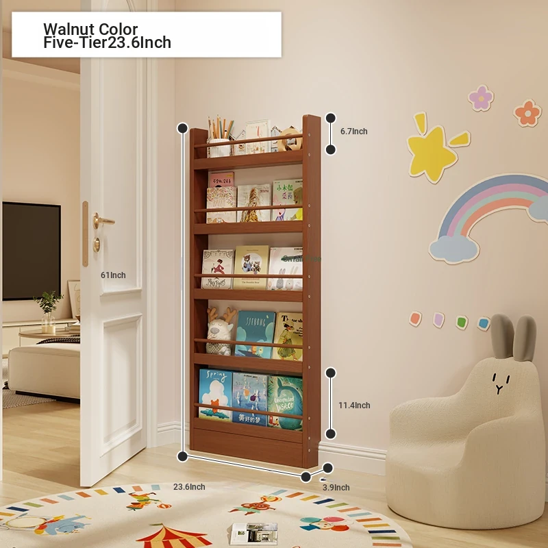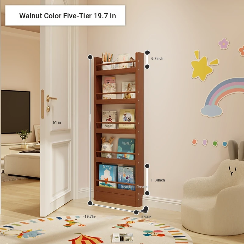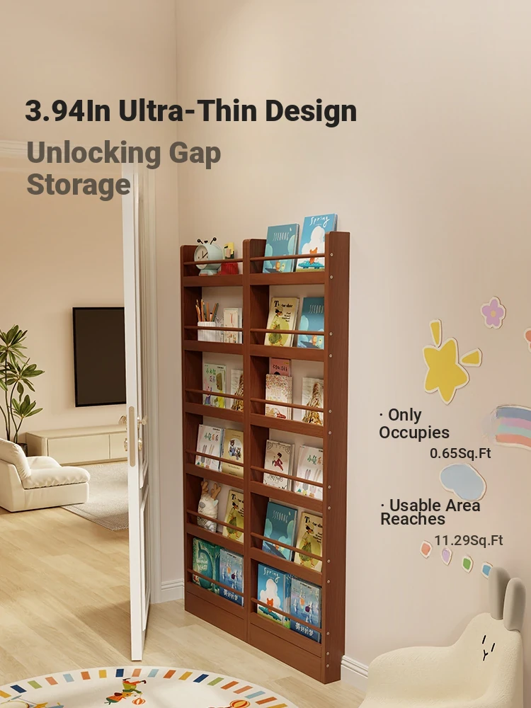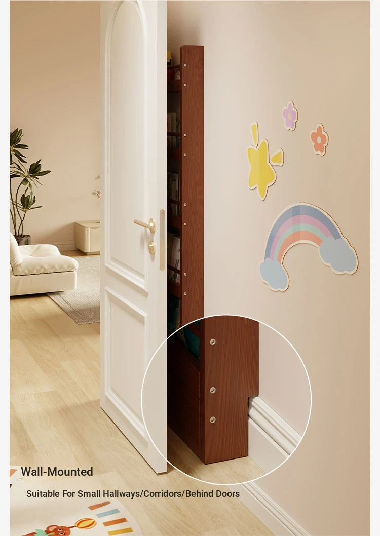 Slim Children's Picture Book Shelf - Space-Saving Wall-Mounted Narrow Cabinet for Kids, Perfect for Behind Doors, Floor Standing Storage Rack and Organizer