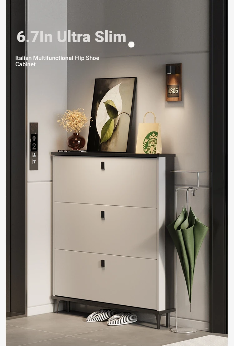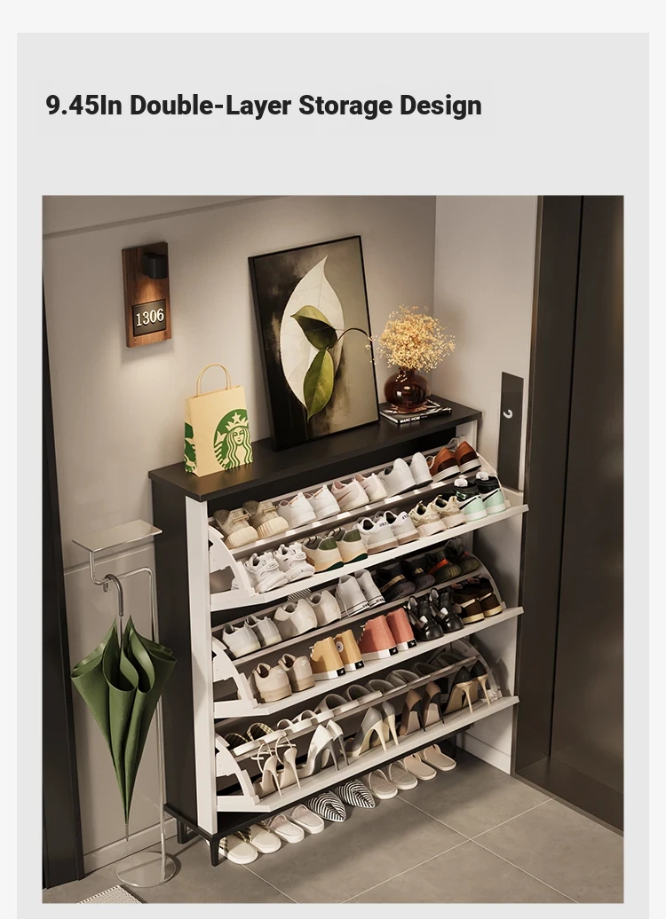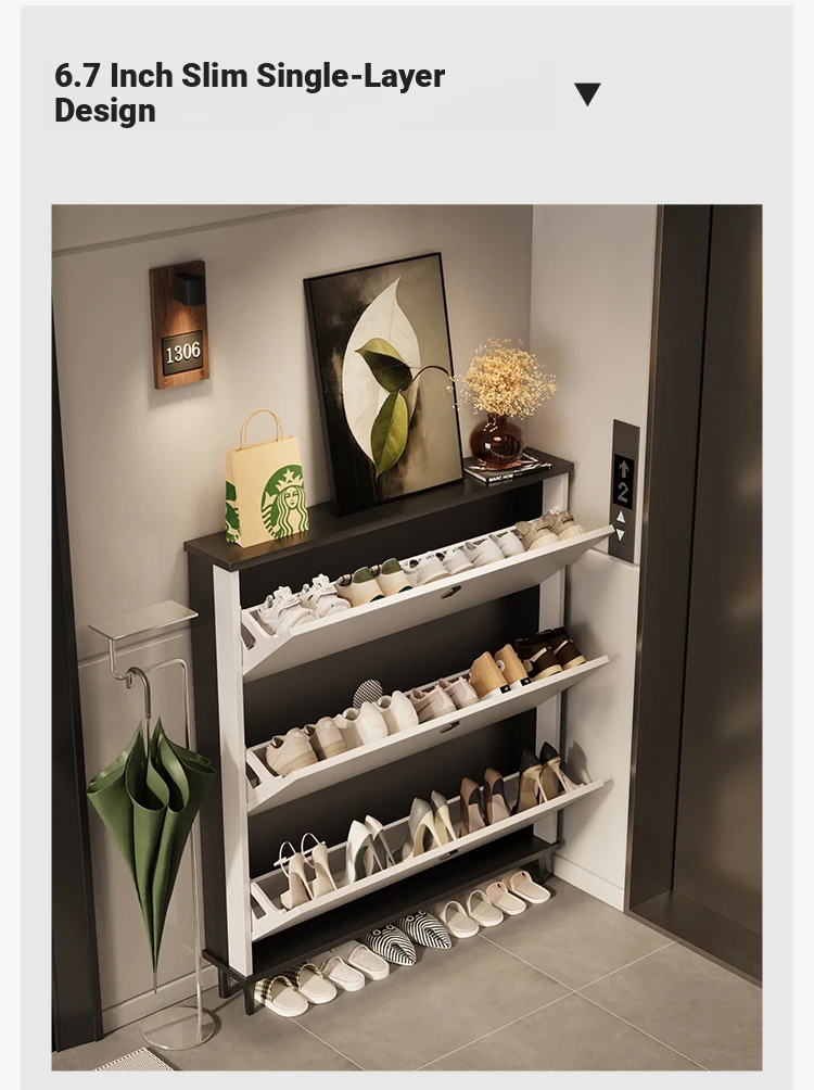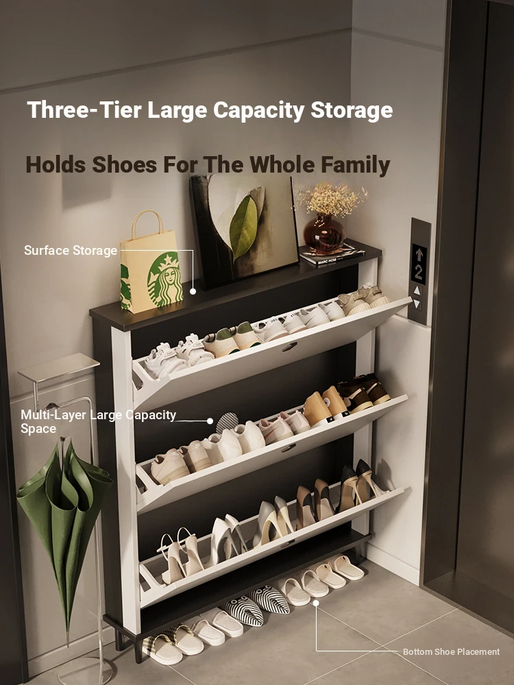 Slim Foldable Shoe Cabinet - Space-Saving Home Entryway Storage Solution for Hallways, Elevators, and Corridors with Large Multi-Layer Capacity.