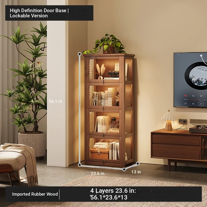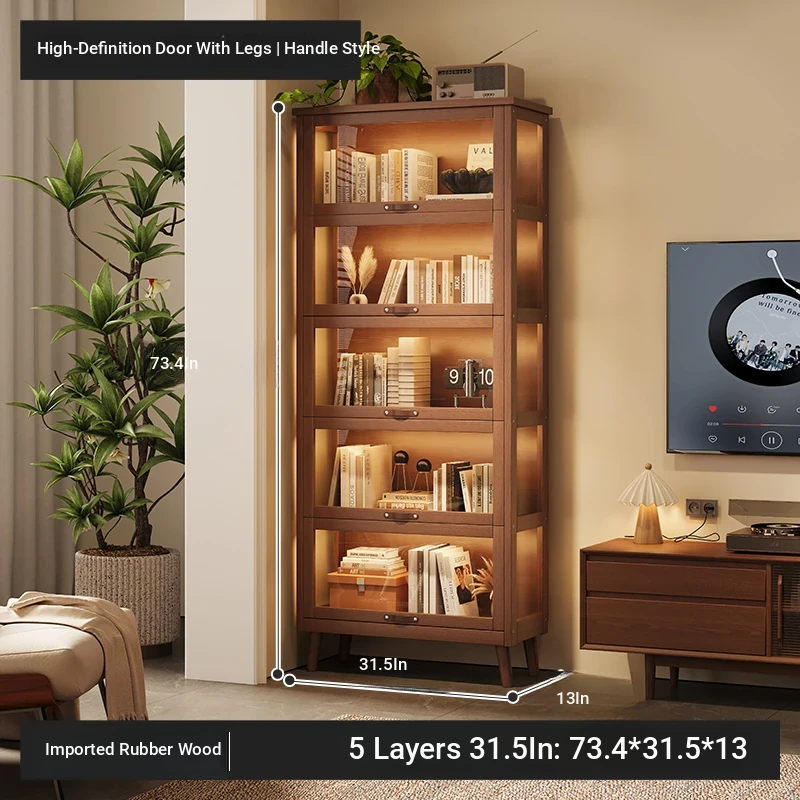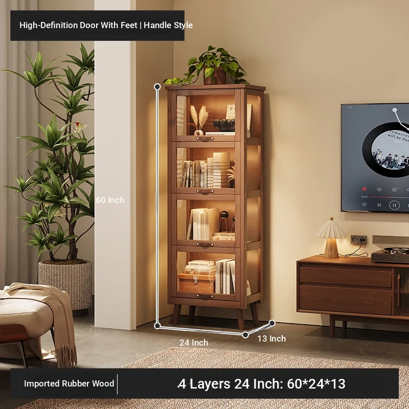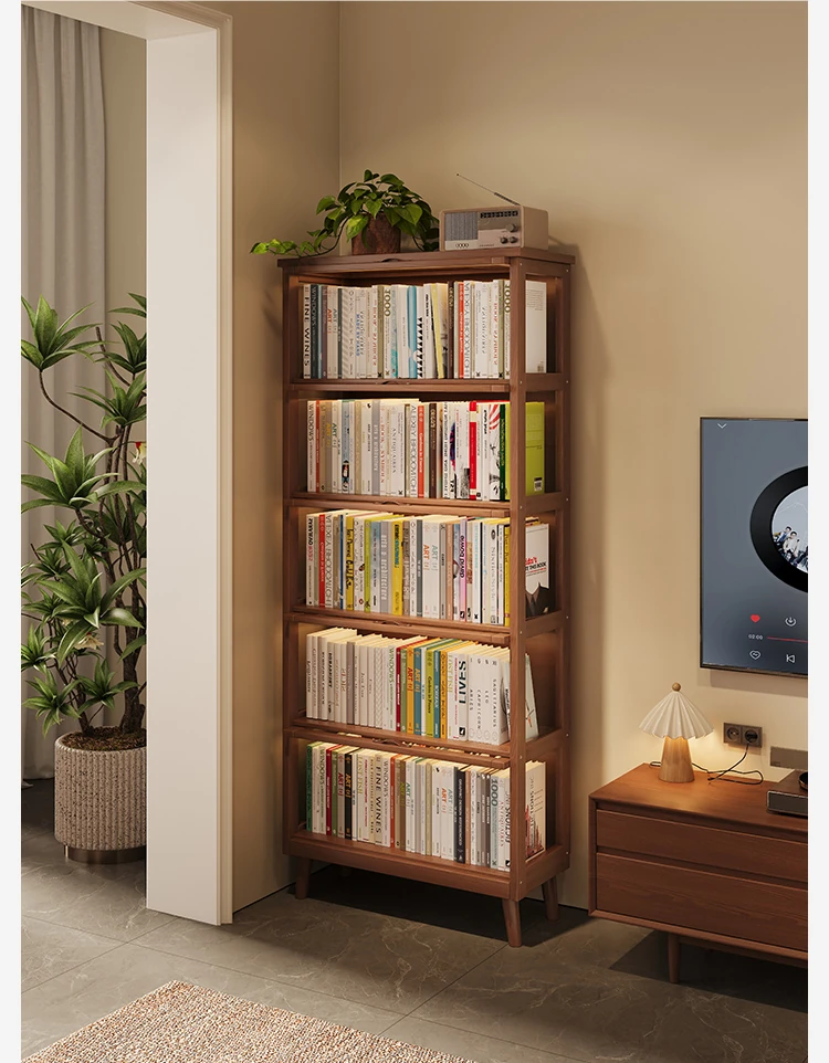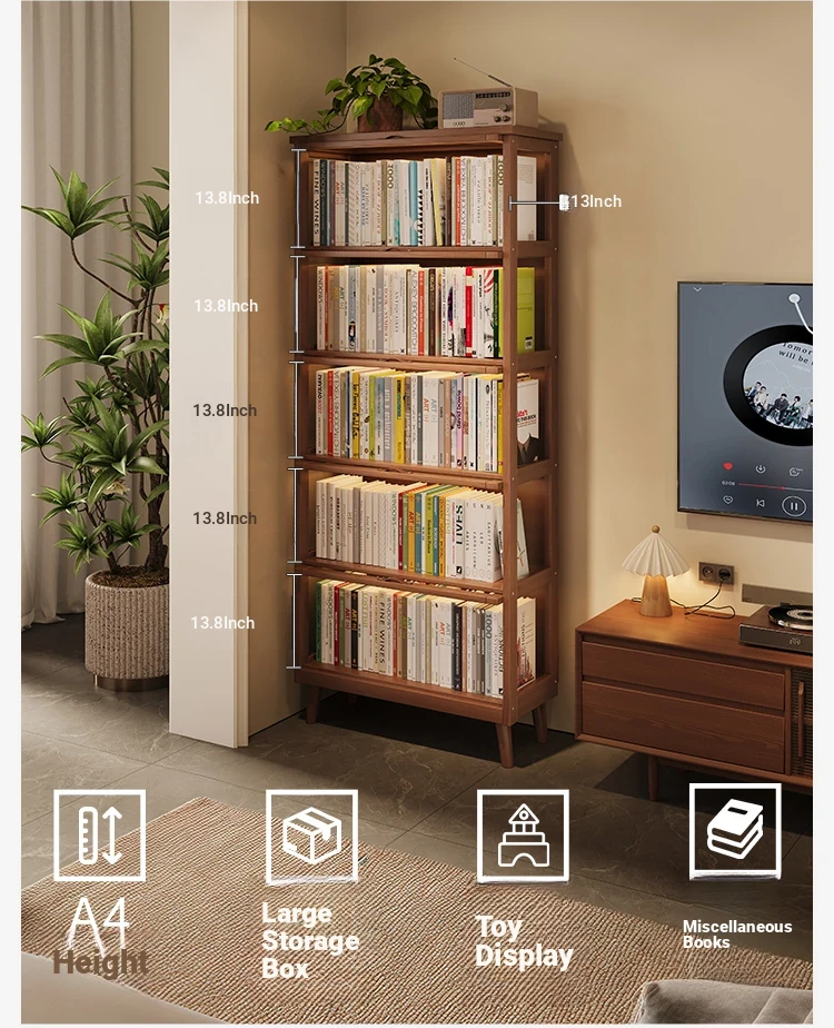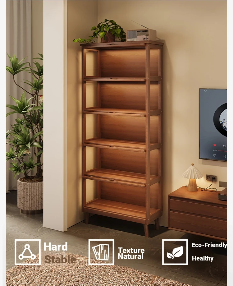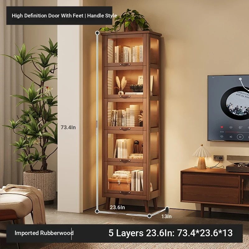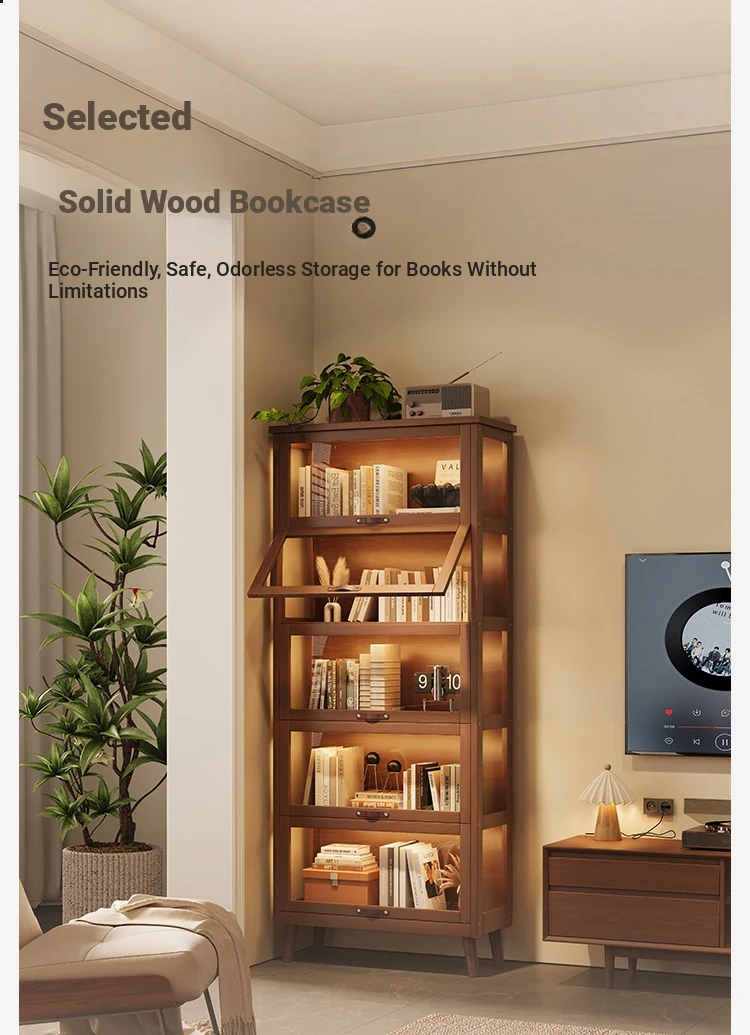 Solid Wood Bookshelf - Stylish Floor Storage Rack for Living Room, Perfect for Children's Picture Books and Displaying Collectibles, Transparent Design for Enhanced Visibility