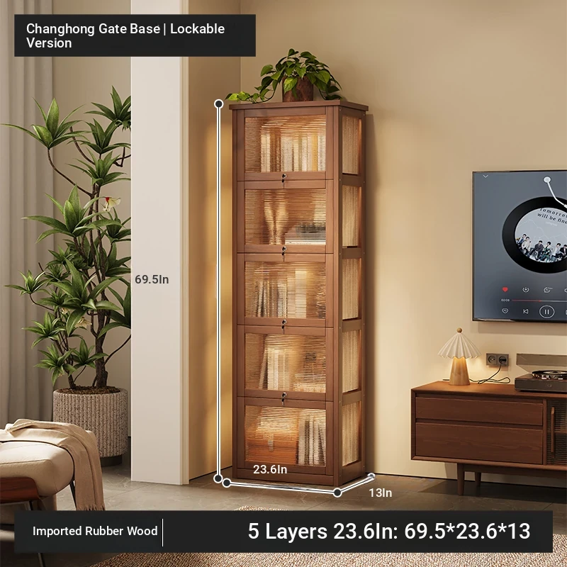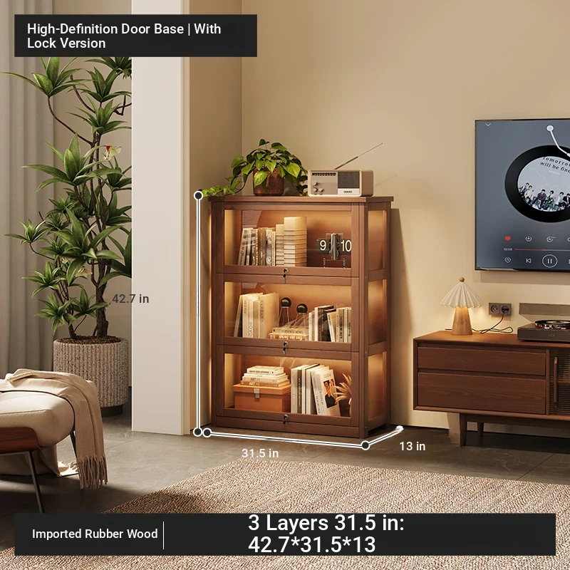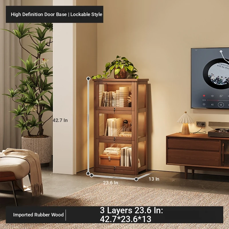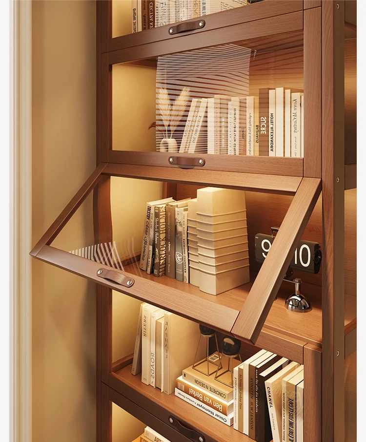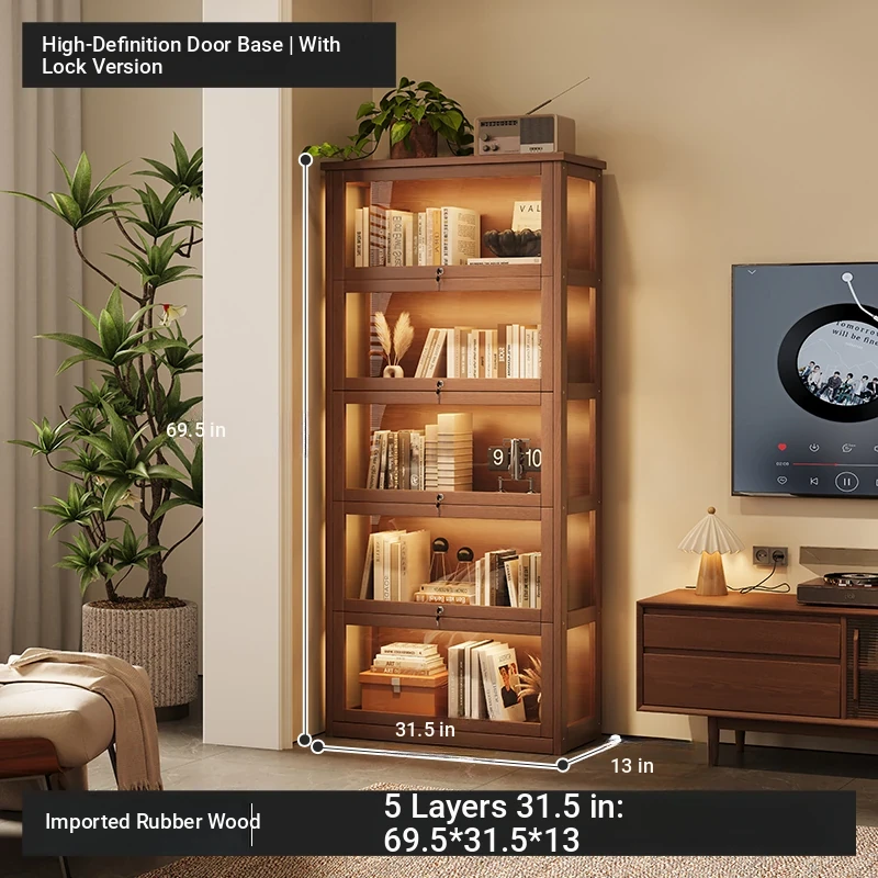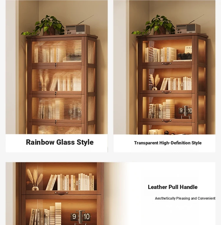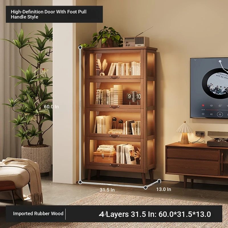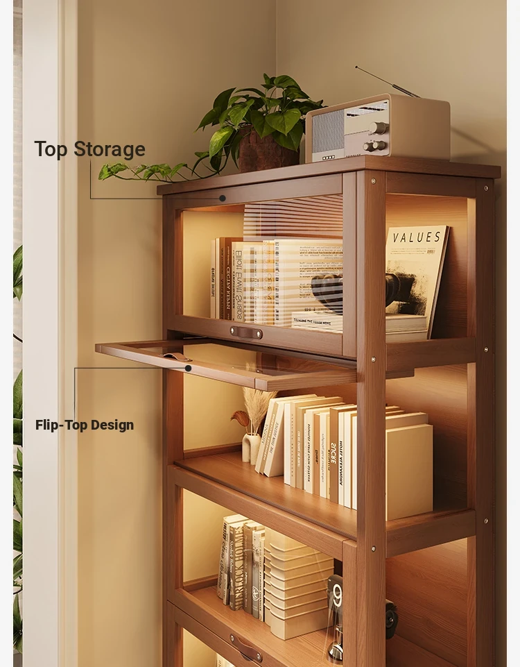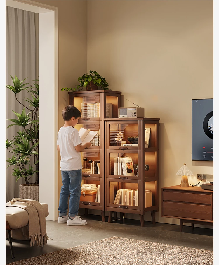 Solid Wood Bookshelf - Stylish Floor Storage Rack for Living Room, Perfect for Children's Picture Books and Displaying Collectibles, Transparent Design for Enhanced Visibility