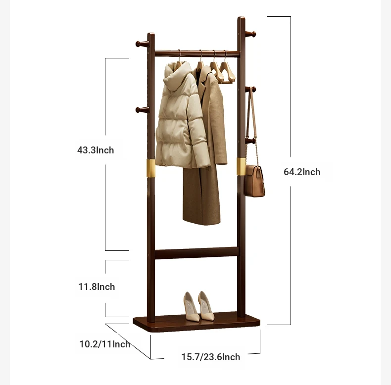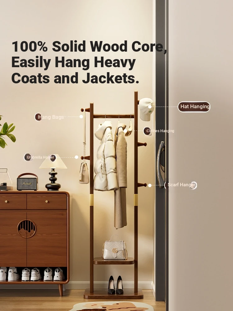 Solid Wood Corner Coat Rack - Space-Saving Vertical Clothes Organizer for Entryway and Bedroom, Perfect for Home Use