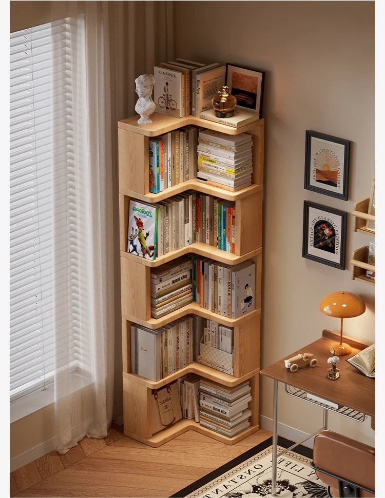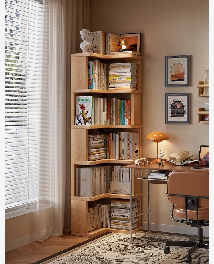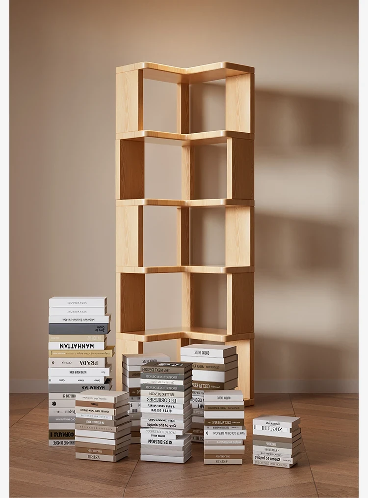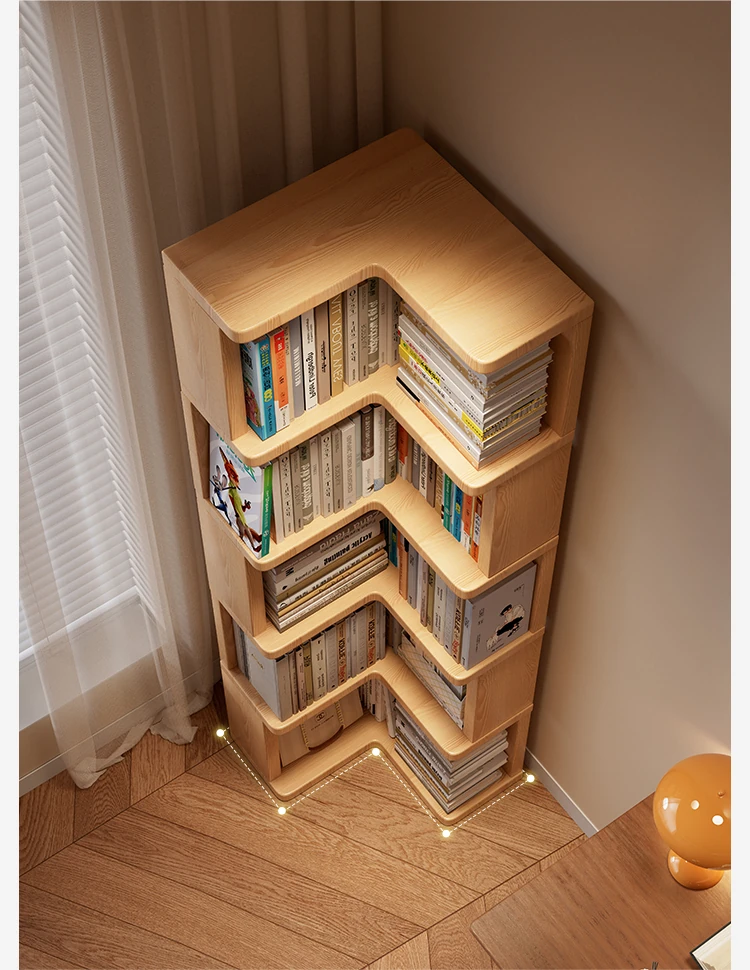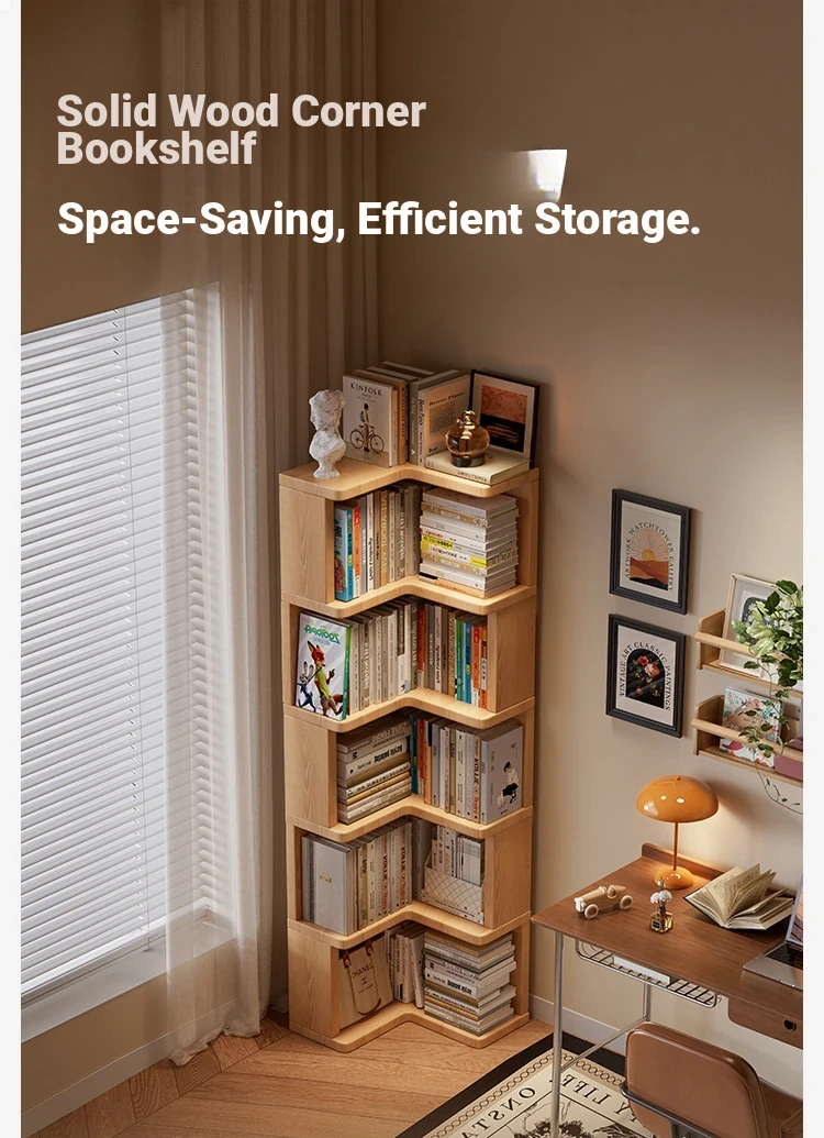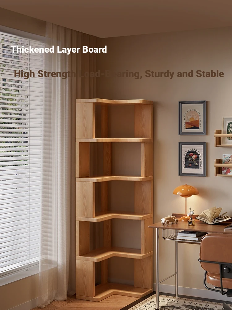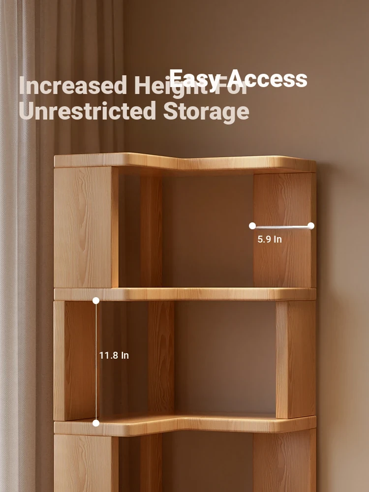 Solid Wood Corner Shelf - 90-Degree Wall-Mounted Storage Cabinet for Small Spaces, Multi-Functional Bookcase and Display Stand, Perfect for Compact Living Areas