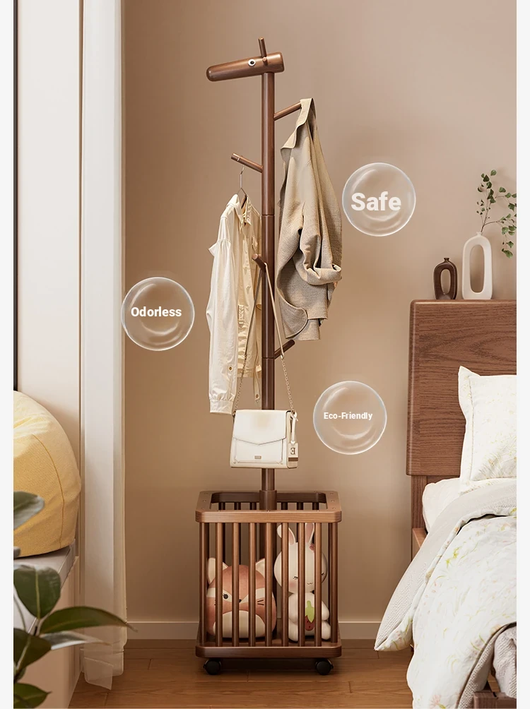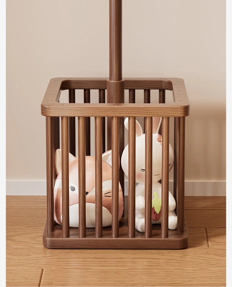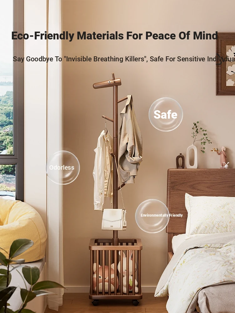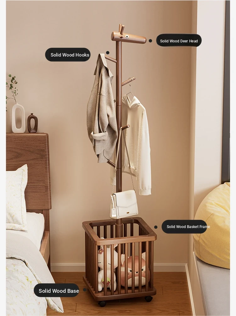 Solid Wood Deer Coat Rack - Versatile Floor Stand for Bedroom & Living Room, Stylish Clothes Organizer with Laundry Basket, Creative Kids' Hat and Coat Stand