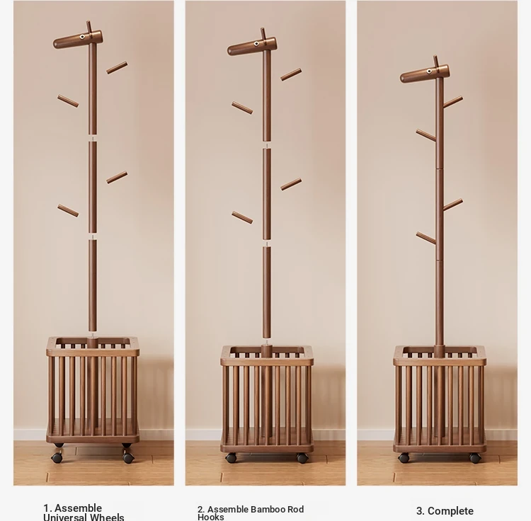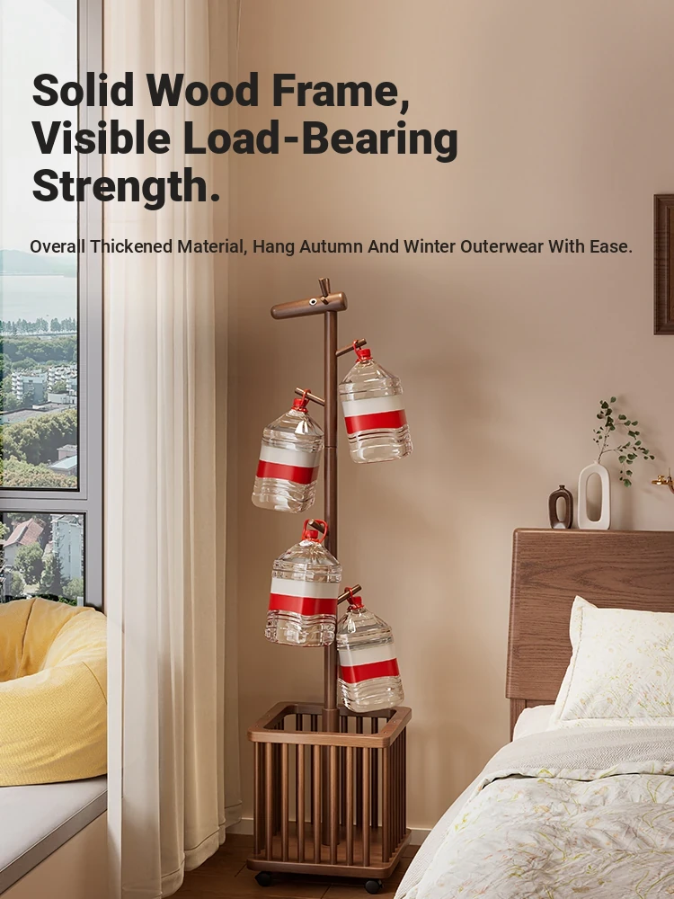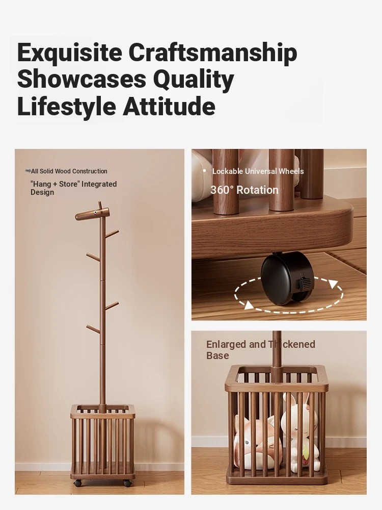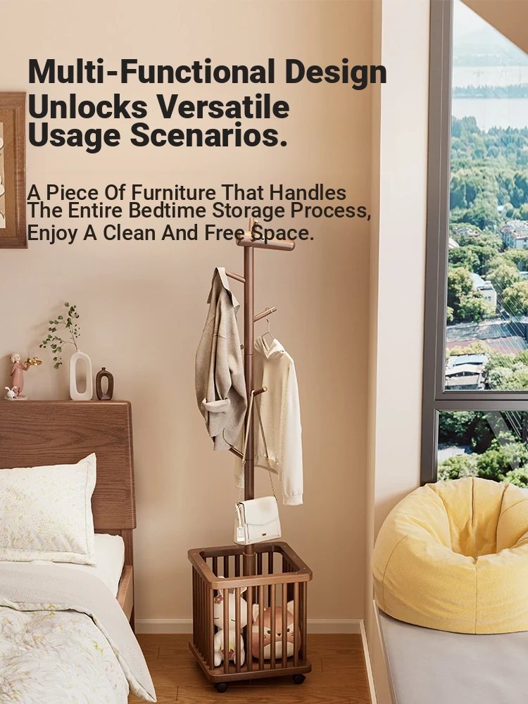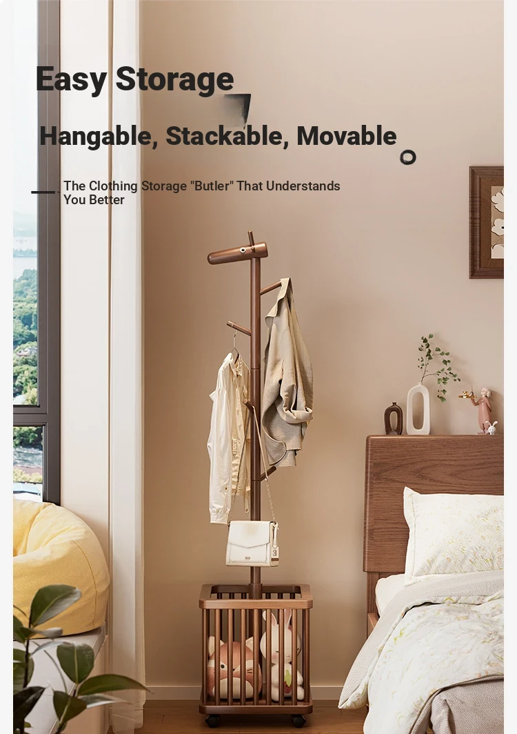 Solid Wood Deer Coat Rack - Versatile Floor Stand for Bedroom & Living Room, Stylish Clothes Organizer with Laundry Basket, Creative Kids' Hat and Coat Stand