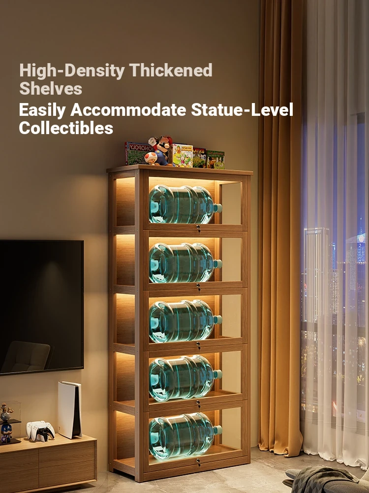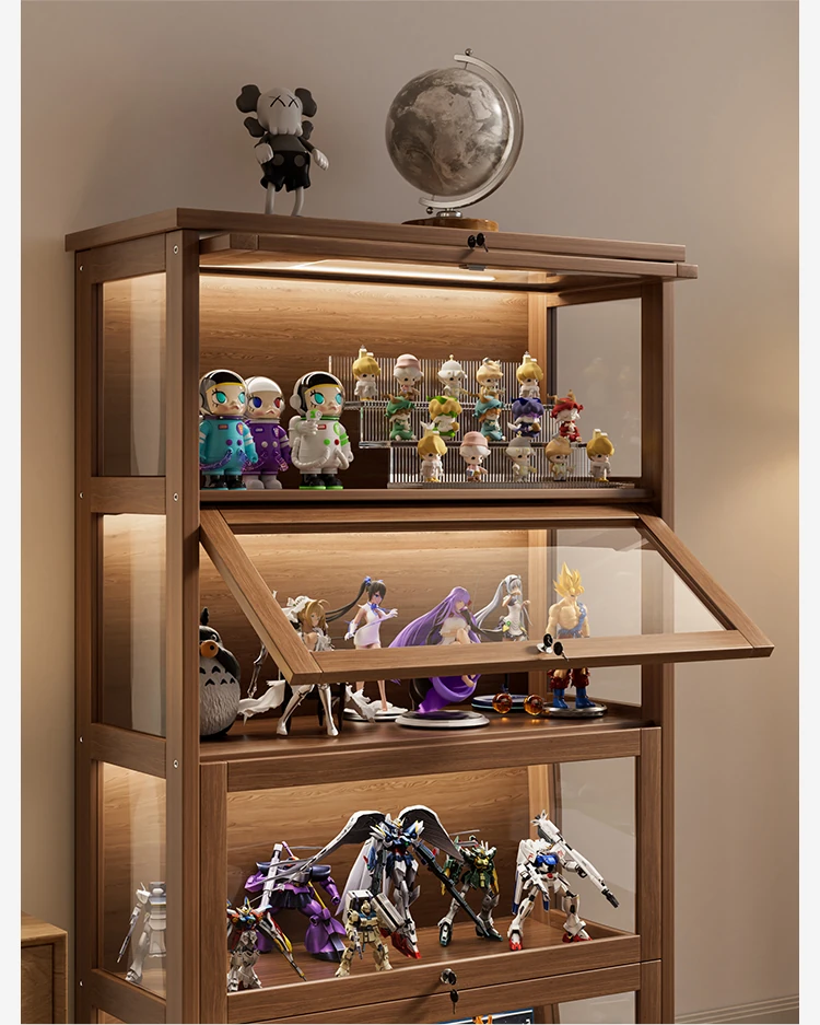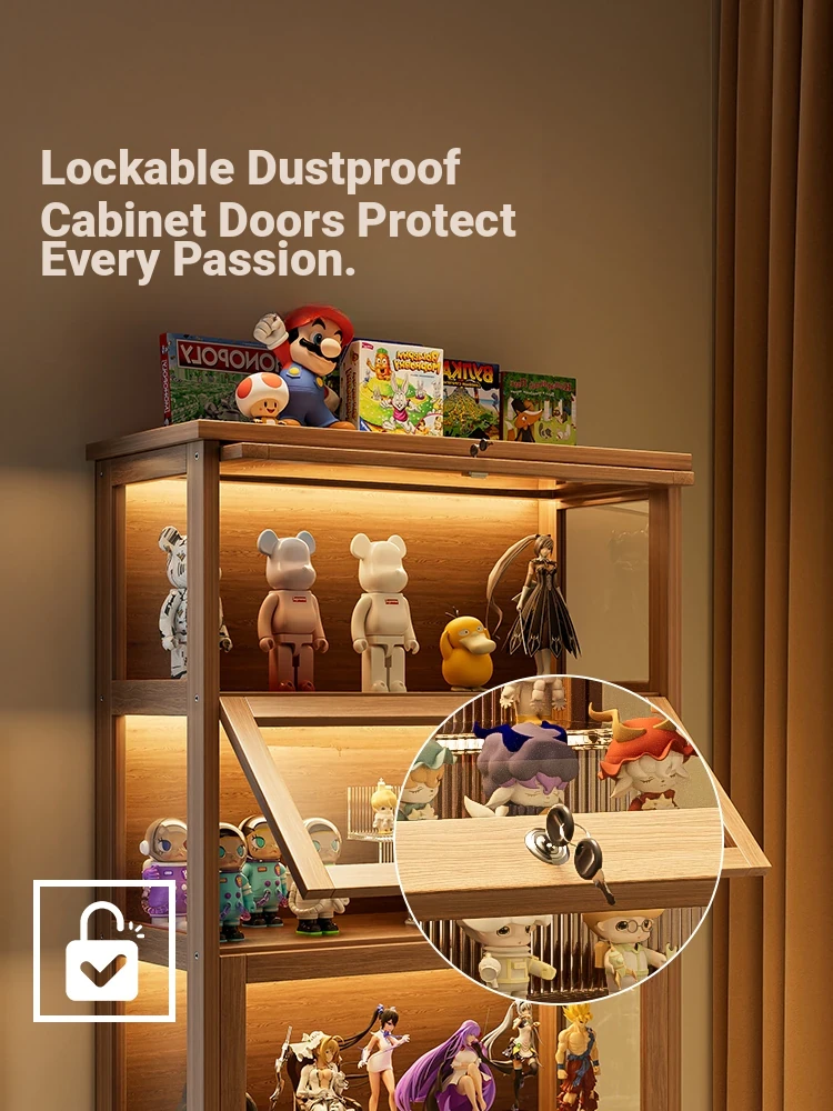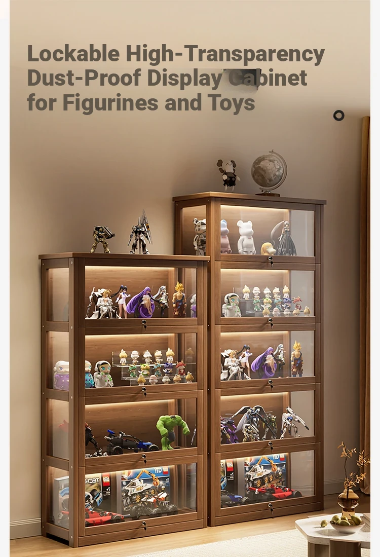 Solid Wood Display Cabinet with Lock - All-Clear Acrylic Showcase for Model Toys, Floor Standing Storage and Display Solution for Collectibles
