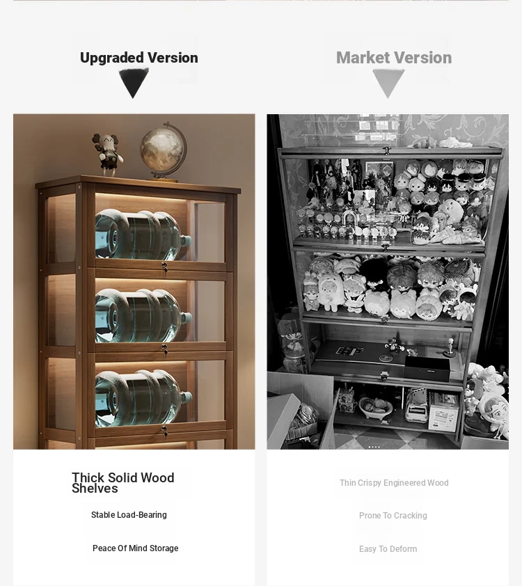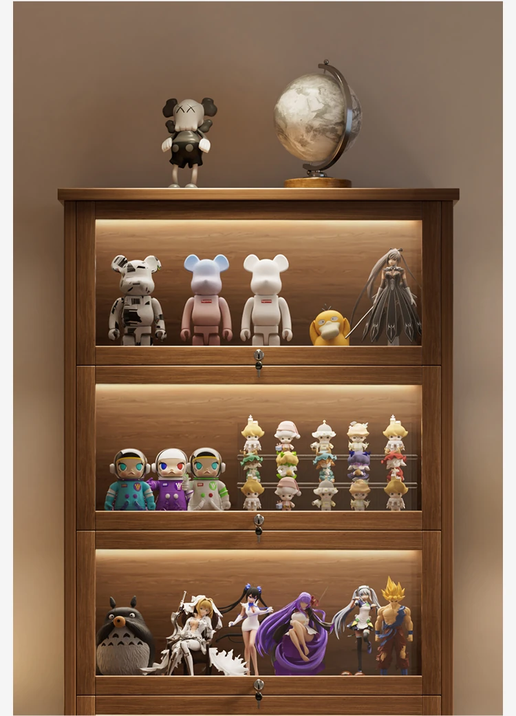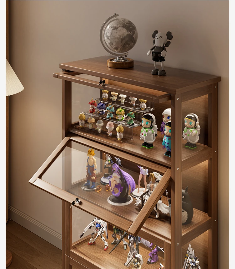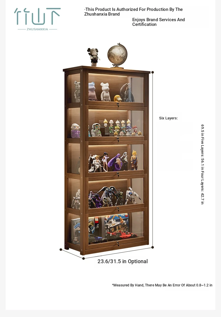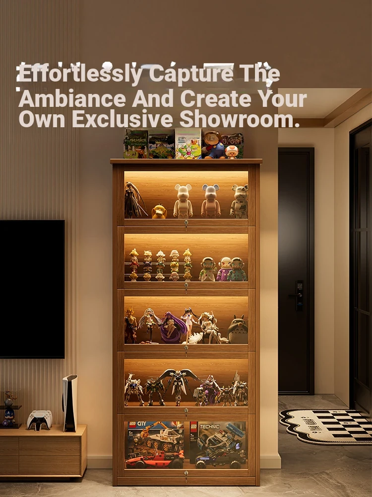 Solid Wood Display Cabinet with Lock - All-Clear Acrylic Showcase for Model Toys, Floor Standing Storage and Display Solution for Collectibles