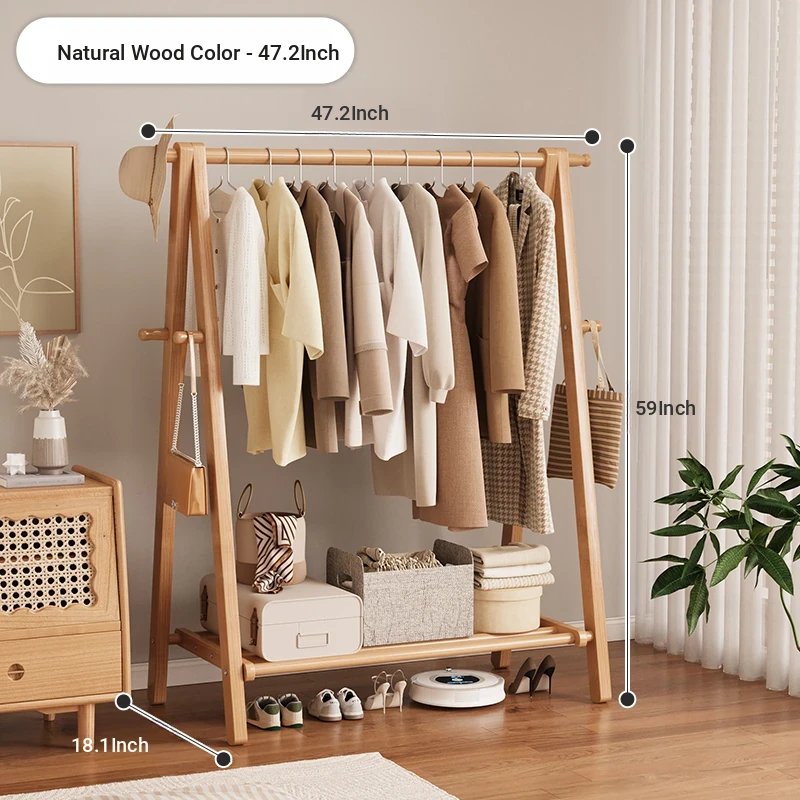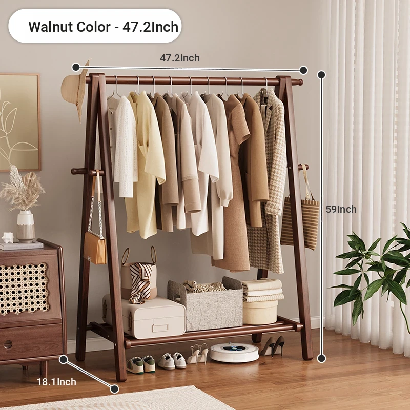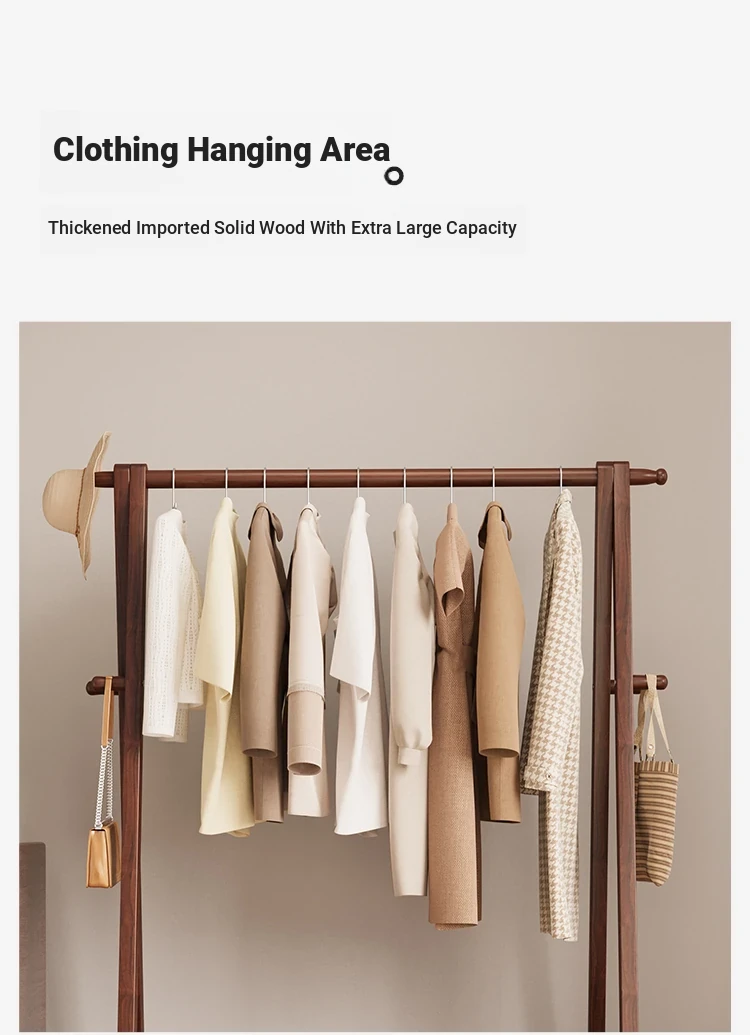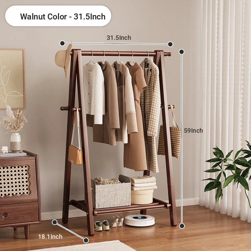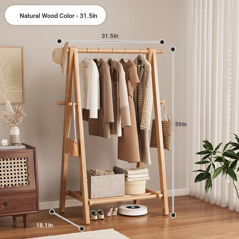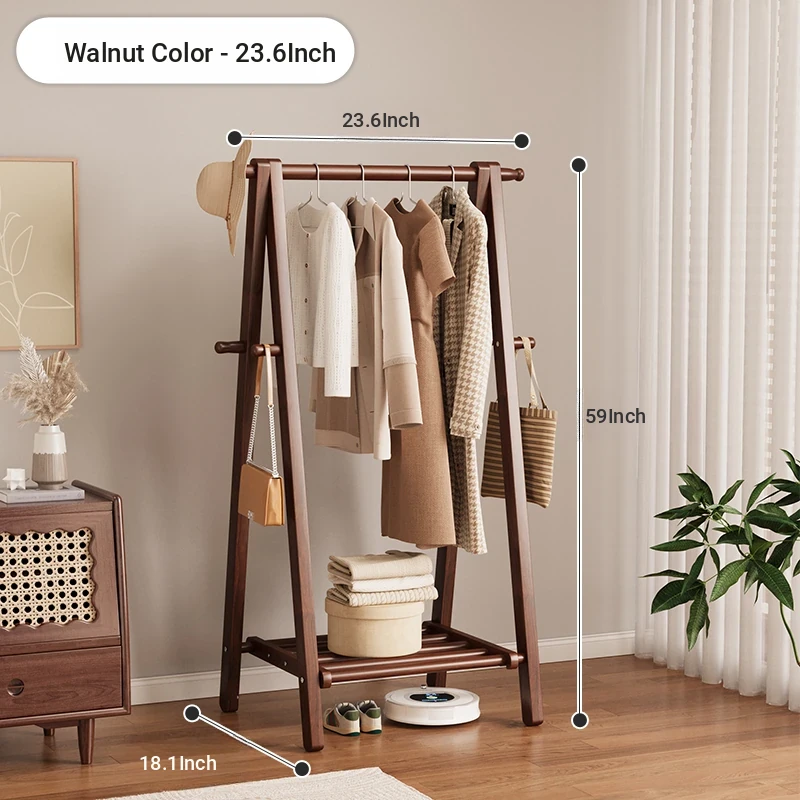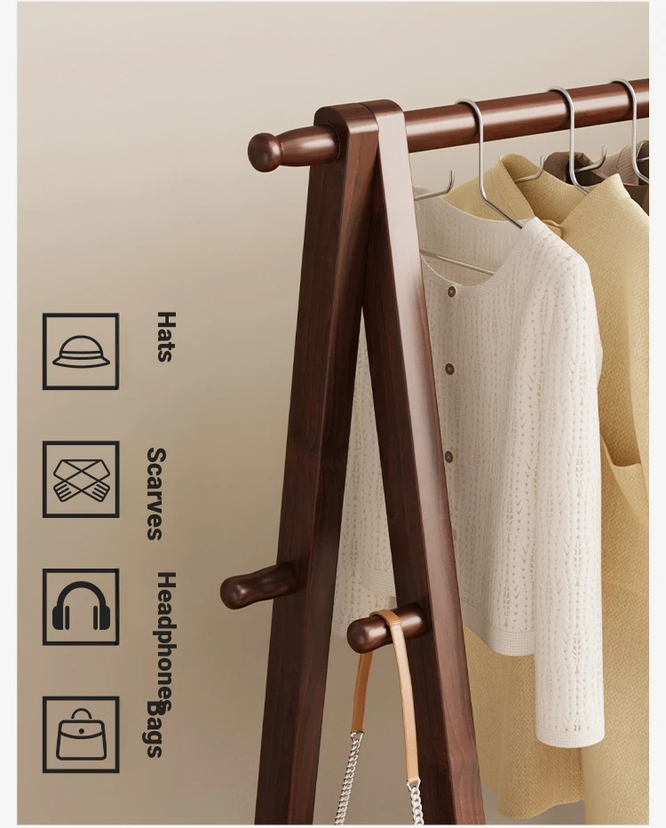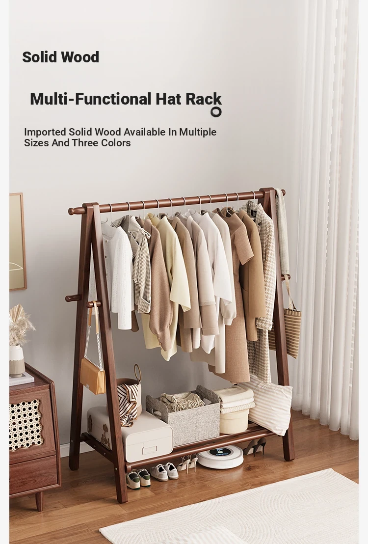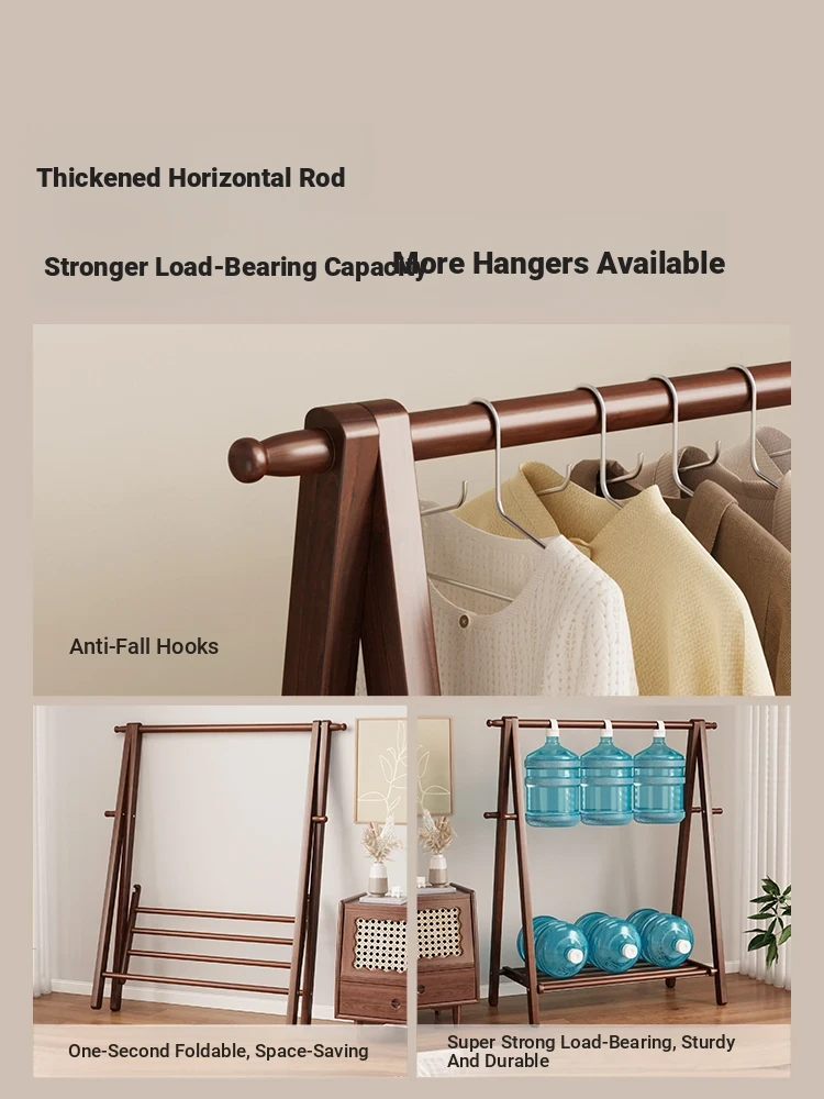 Solid Wood Freestanding Clothes Rack - Space-Saving Folding Garment Hanger for Bedroom, Perfect Bedside Clothing Organizer and Stylish Hat Stand