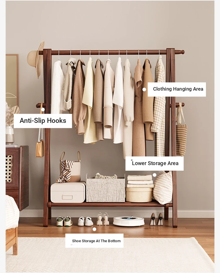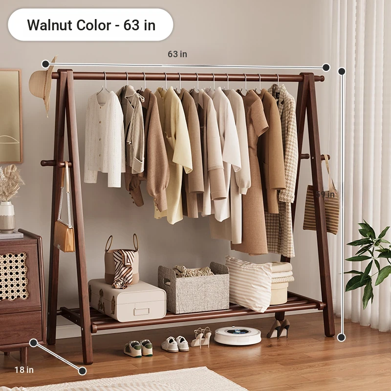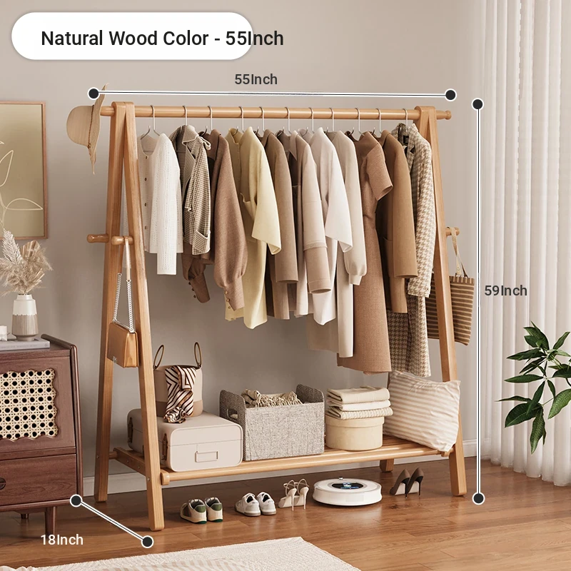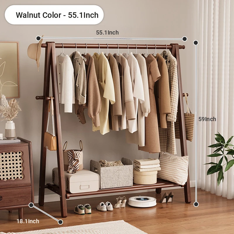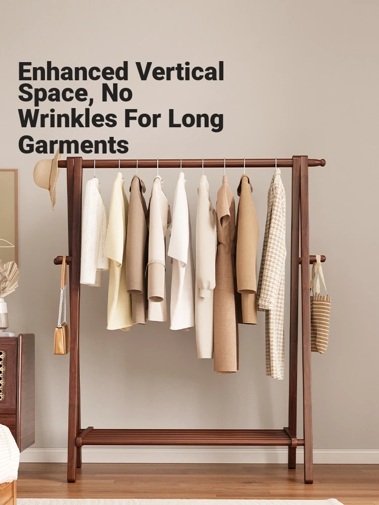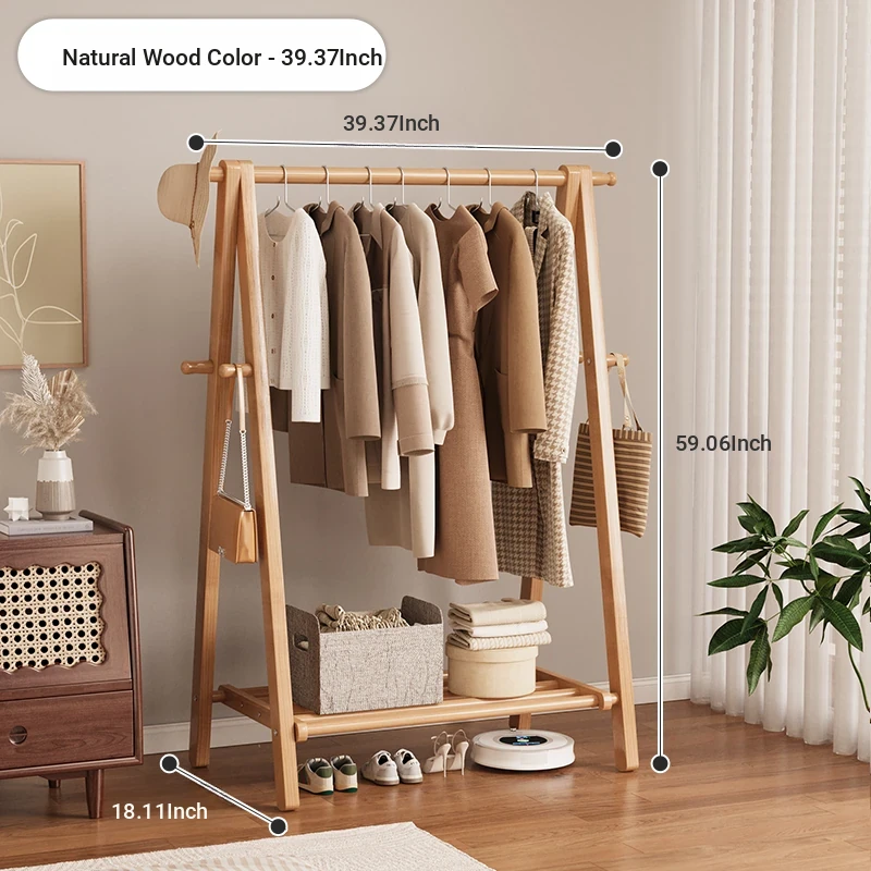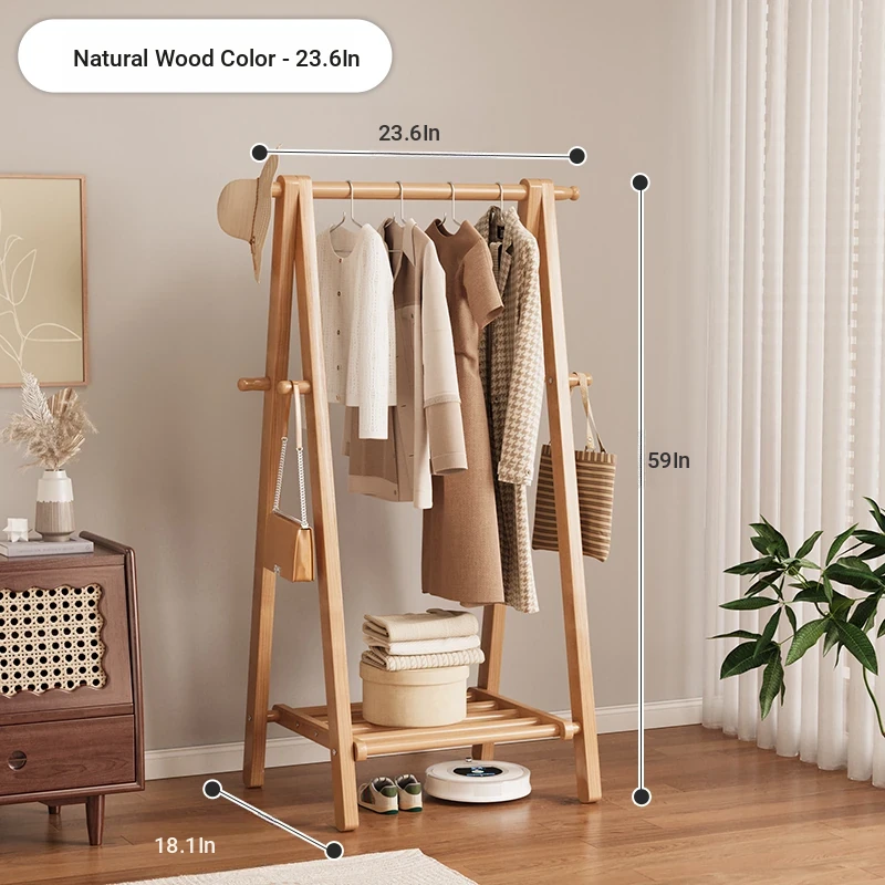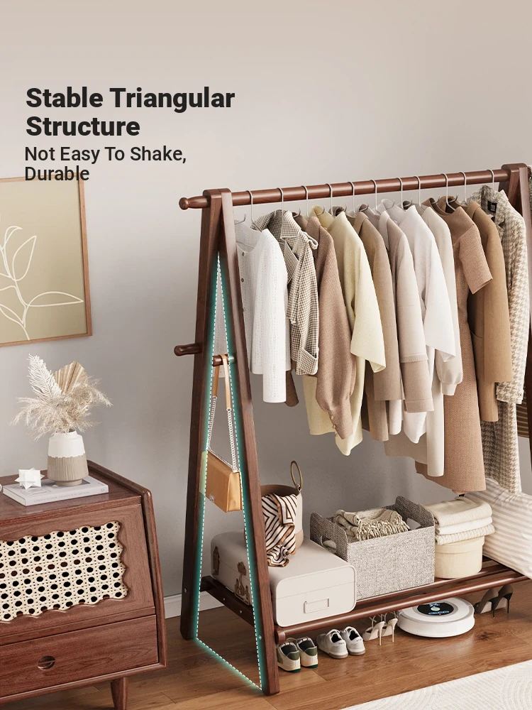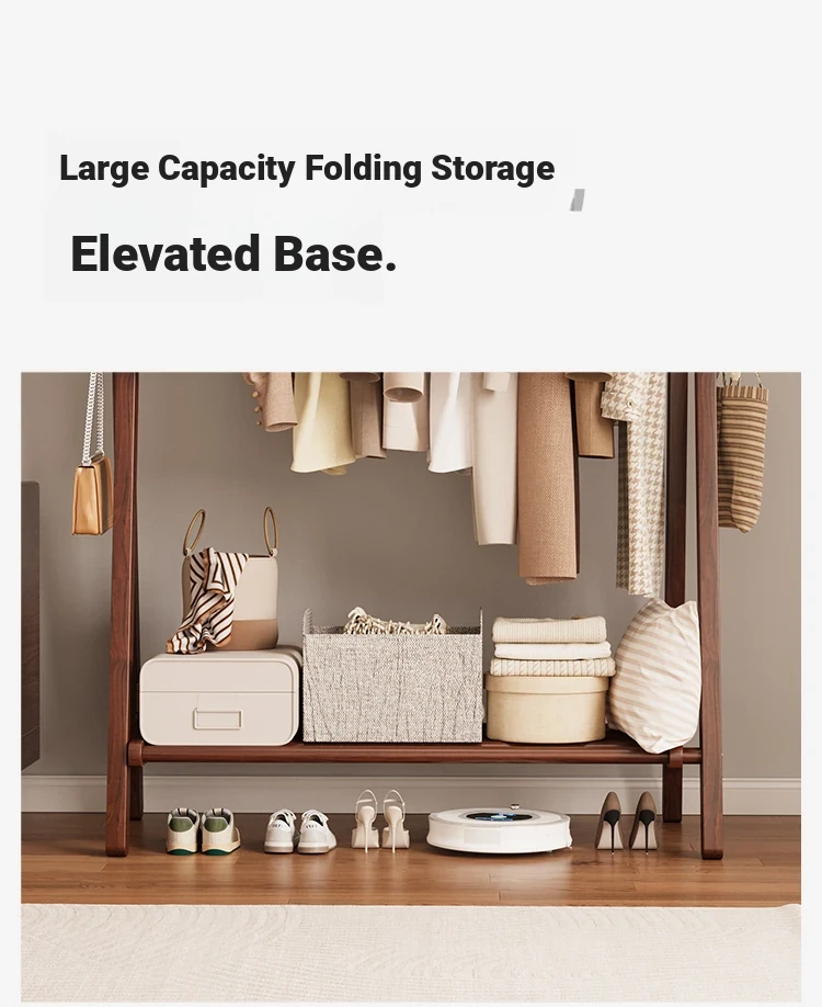 Solid Wood Freestanding Clothes Rack - Space-Saving Folding Garment Hanger for Bedroom, Perfect Bedside Clothing Organizer and Stylish Hat Stand
