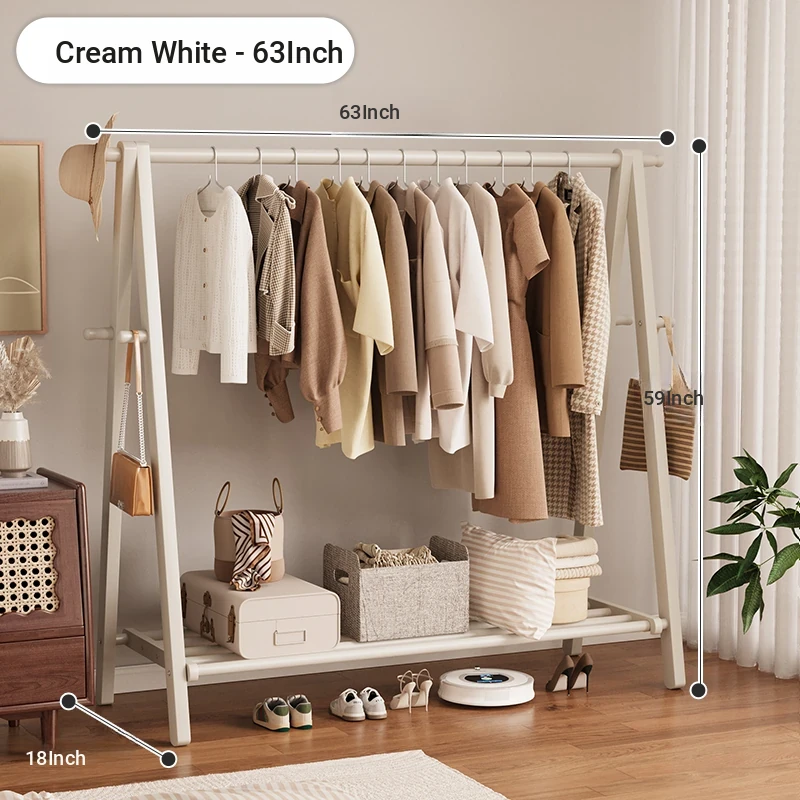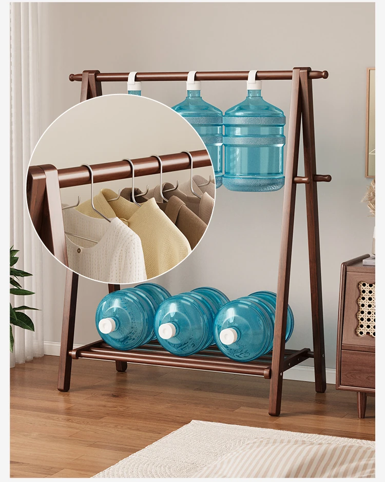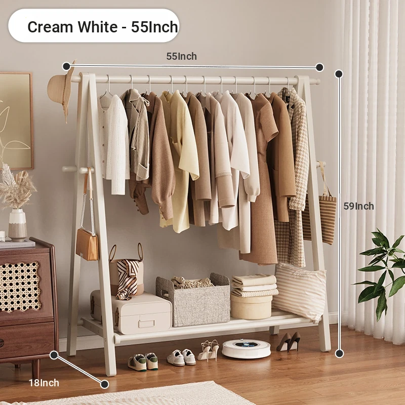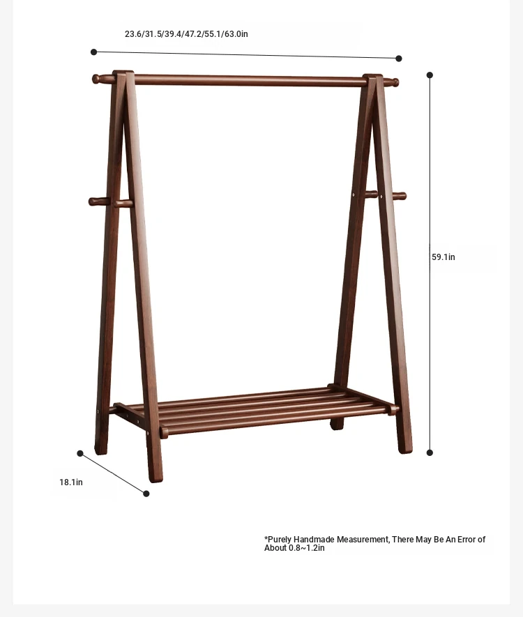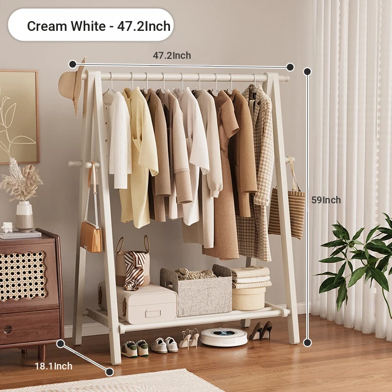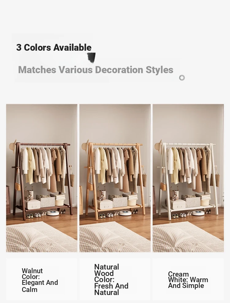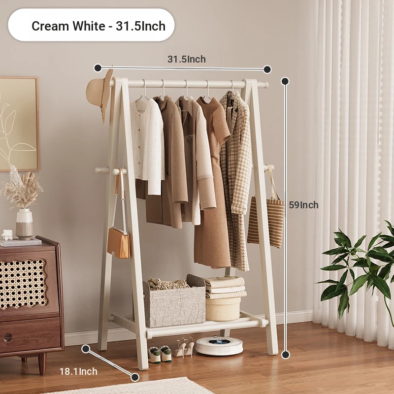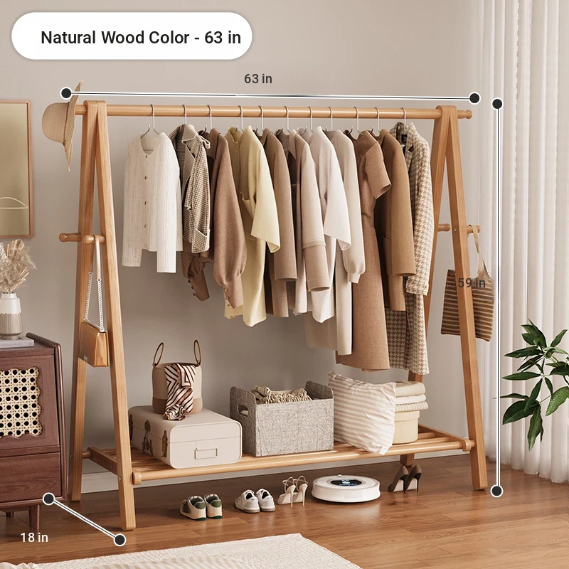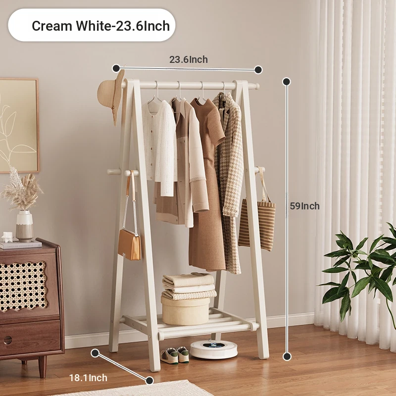 Solid Wood Freestanding Clothes Rack - Space-Saving Folding Garment Hanger for Bedroom, Perfect Bedside Clothing Organizer and Stylish Hat Stand