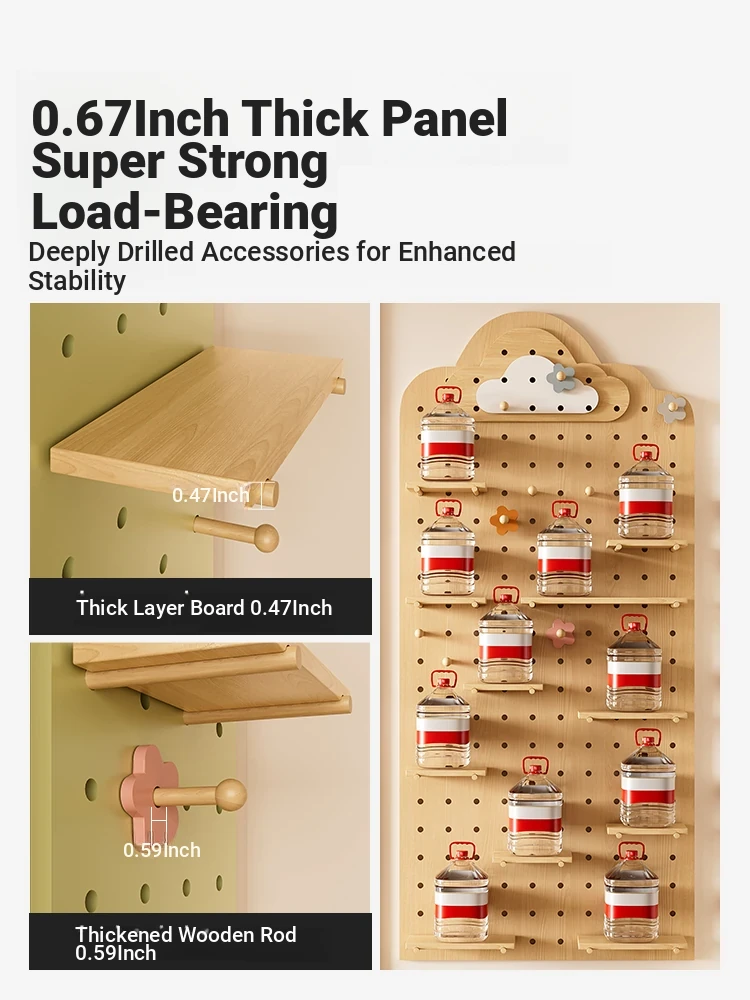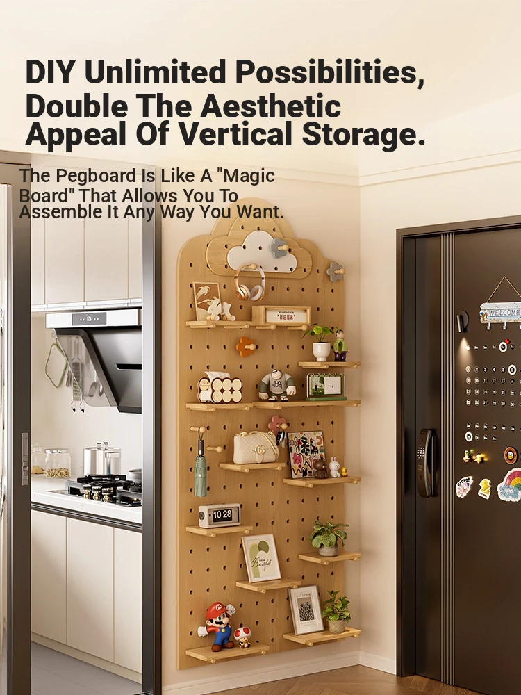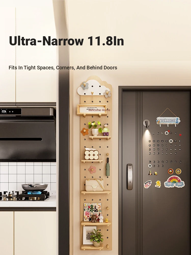 Solid Wood Pegboard Storage Rack - Slim 30cm Width for Doorways, Perfect for Entryways and Hallways, Stylish Wall-Mounted Organizer for Efficient Home Storage