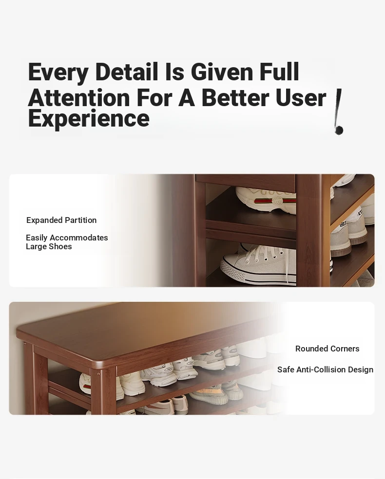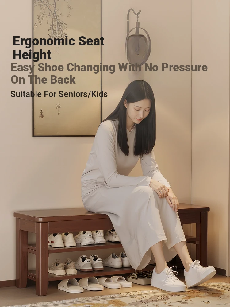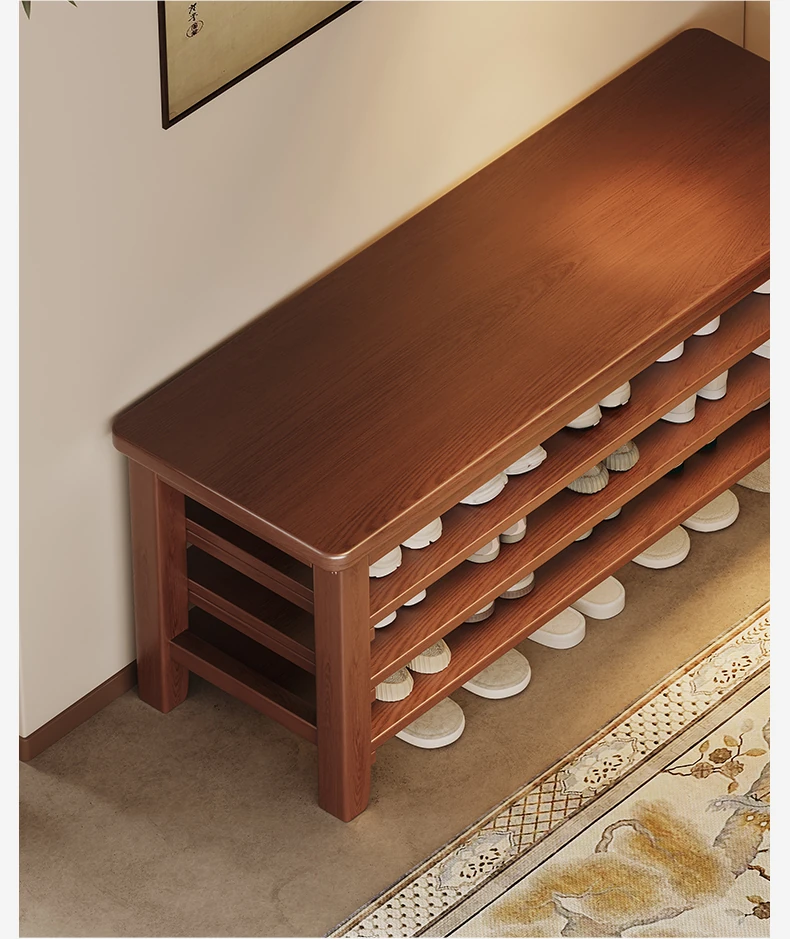 Solid Wood Shoe Bench - Multi-Layer Entryway Storage and Seating Solution, Perfect for Home Use, Stylish Shoe Rack for Easy Organization at Your Doorstep