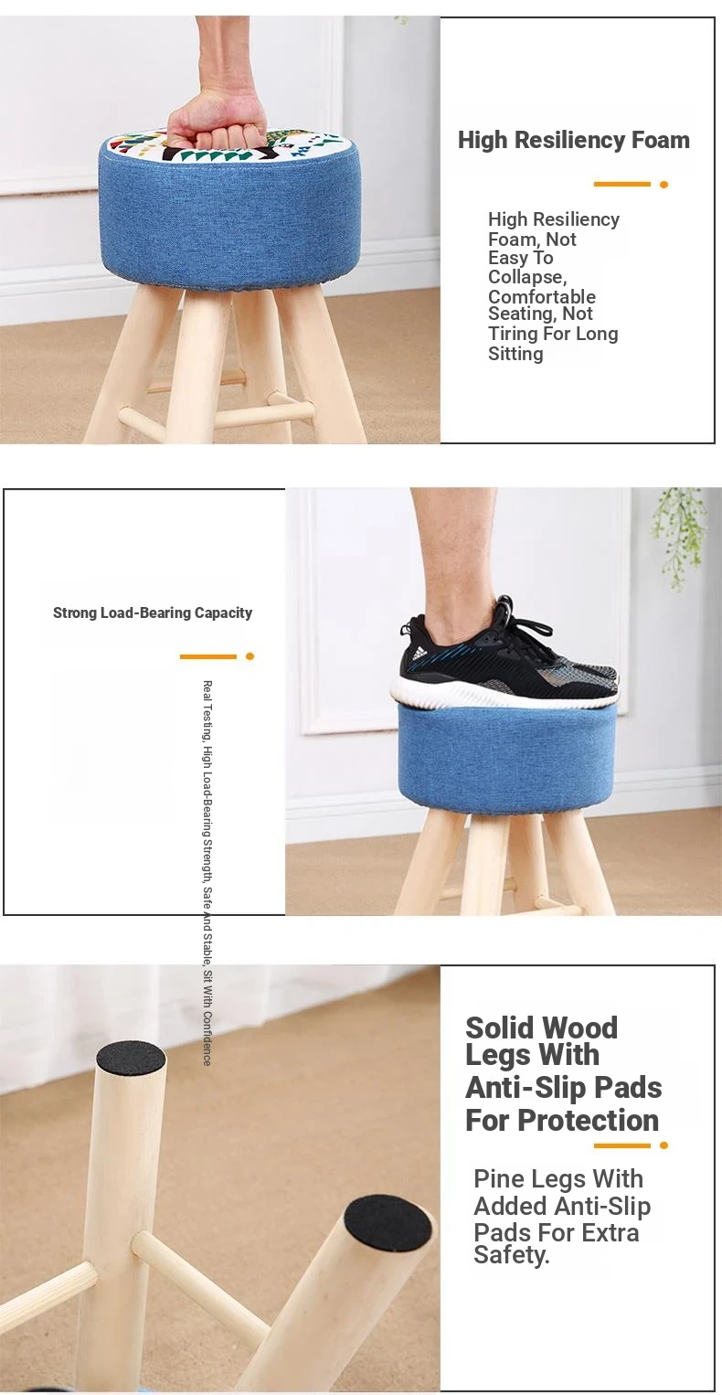 Solid Wood Stool for Home Use - Stylish High Square Stool, Perfect for Living Room, Dining Table, Creative Low Makeup Stool, Versatile Dining Stool, Compact Small Bench