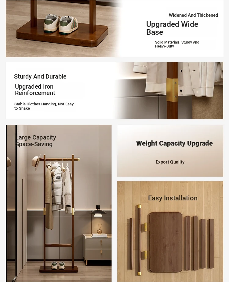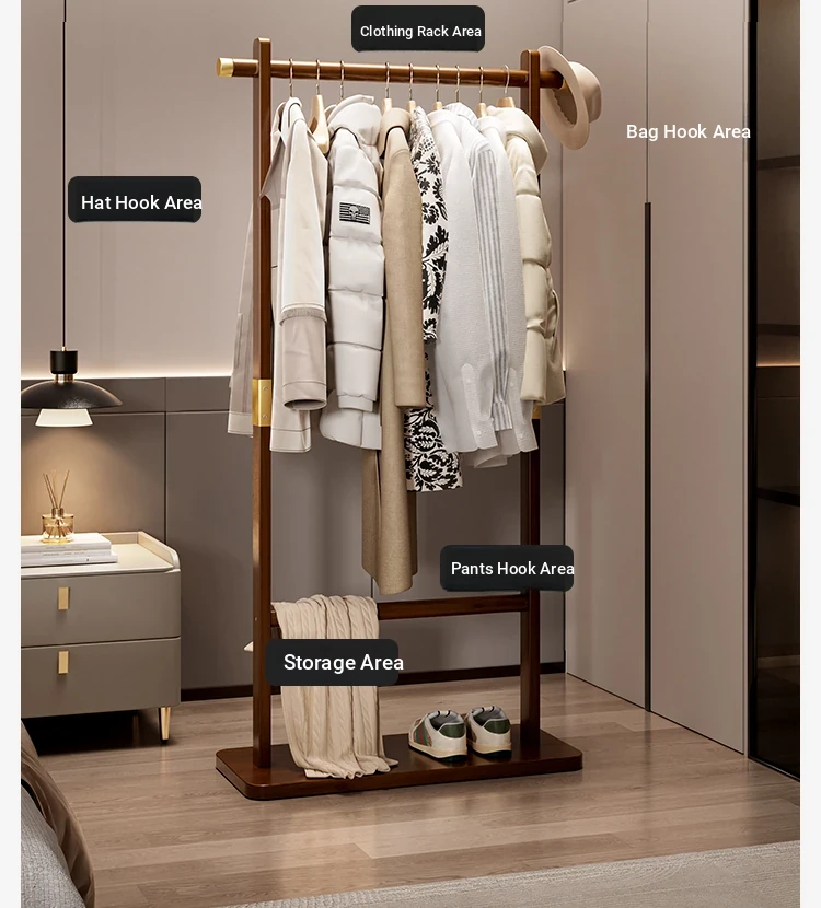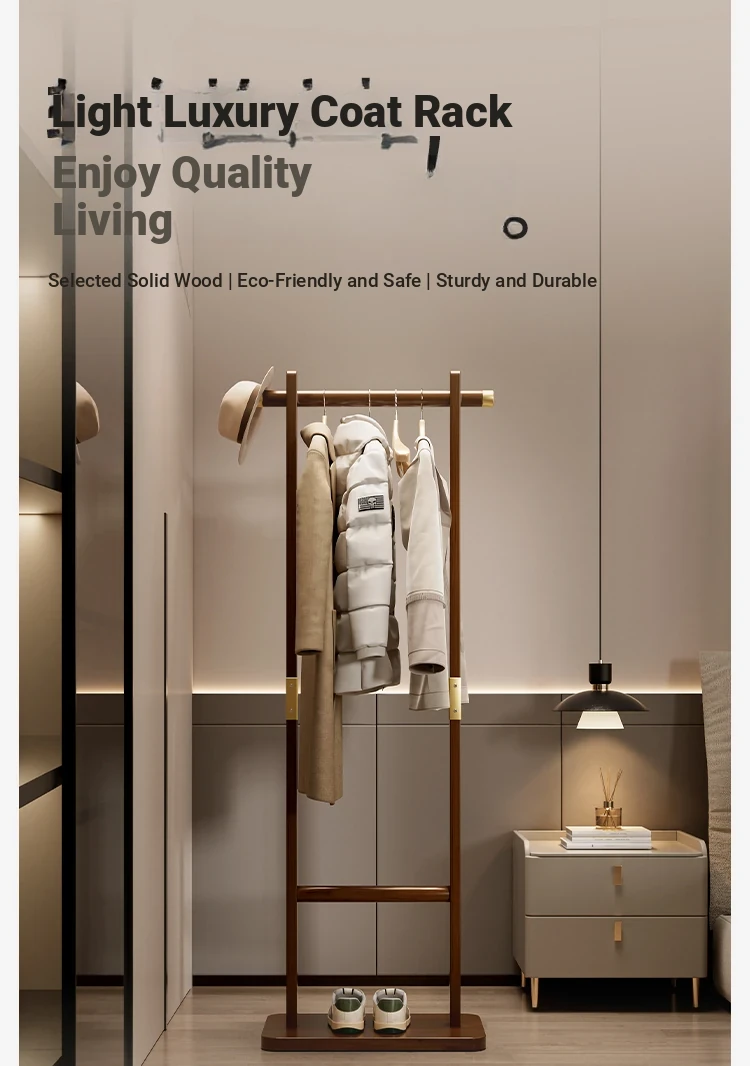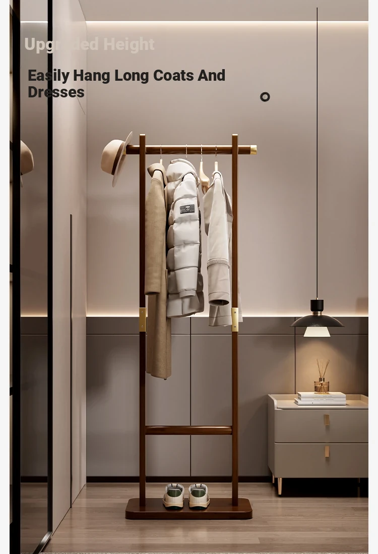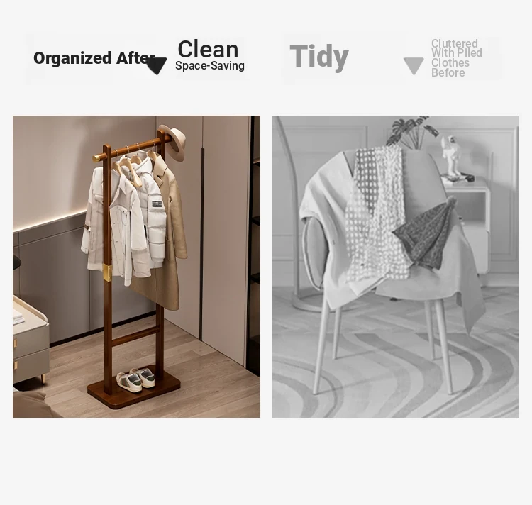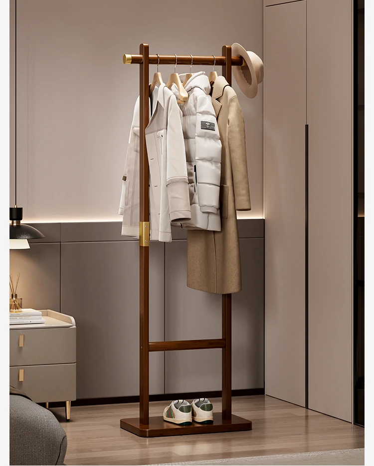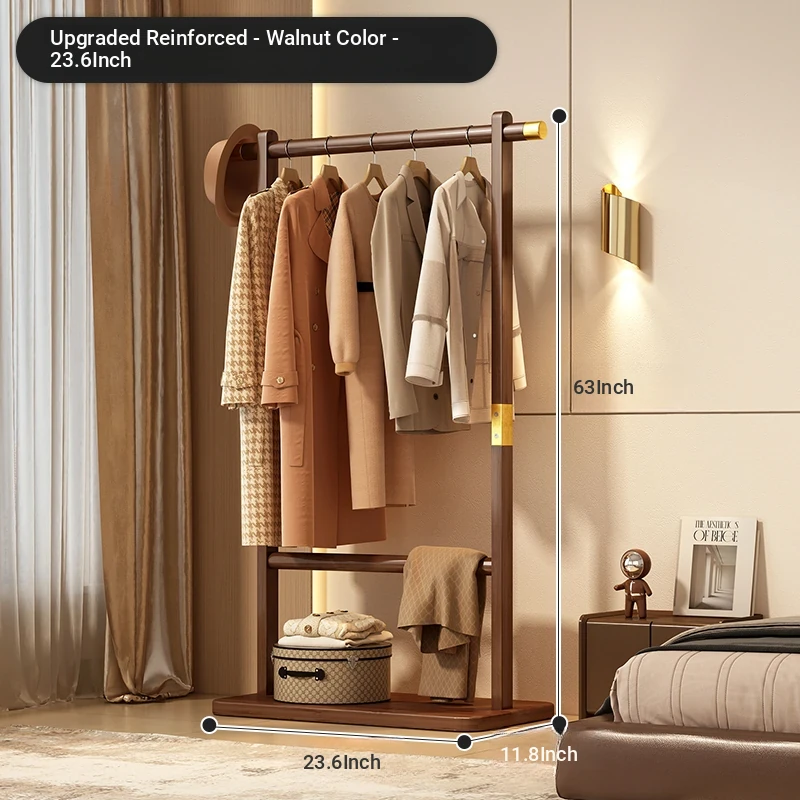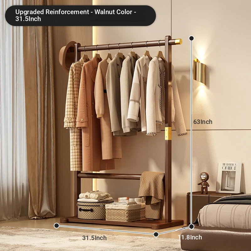 Space-Saving Solid Wood Clothes Rack - Bedroom Floor Standing Hanger for Easy Access to Evening Outfits and Accessories - Perfect Bedside Solution for Organizing Clothes