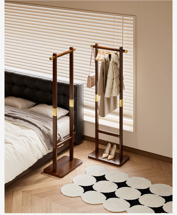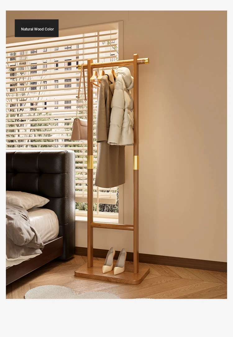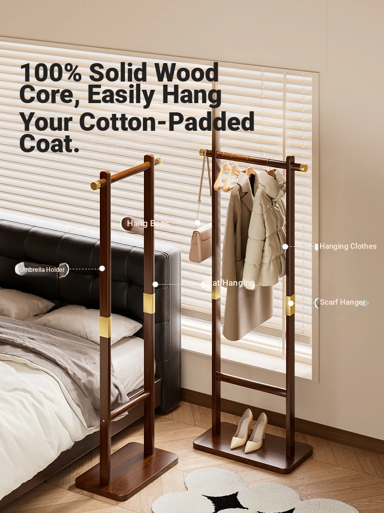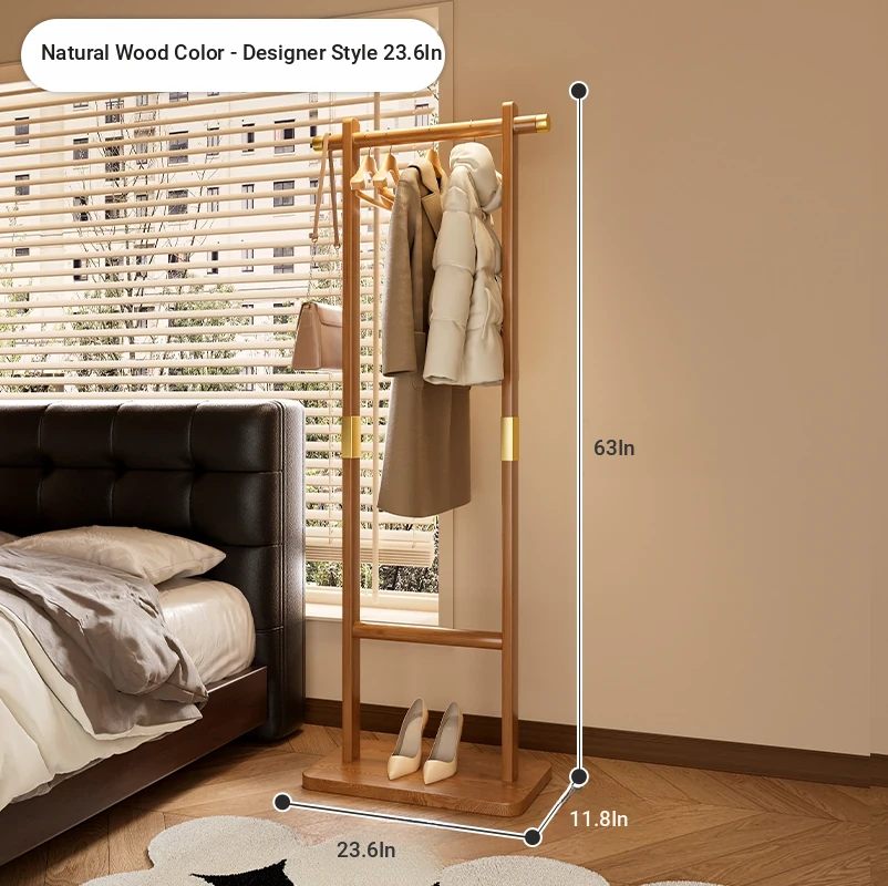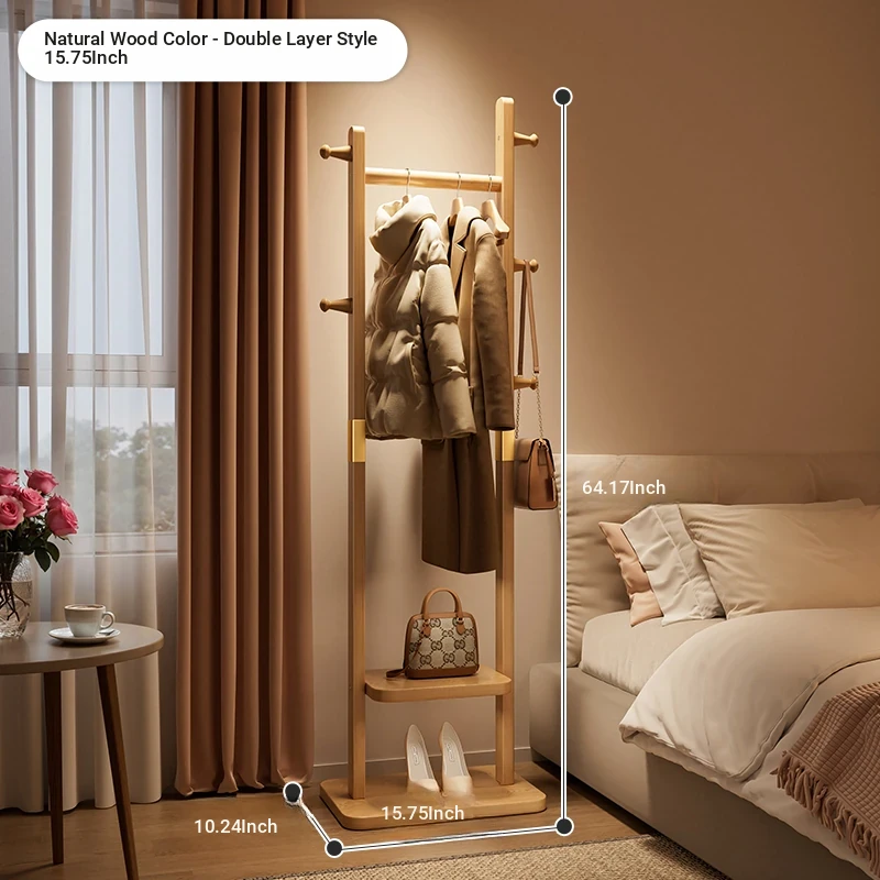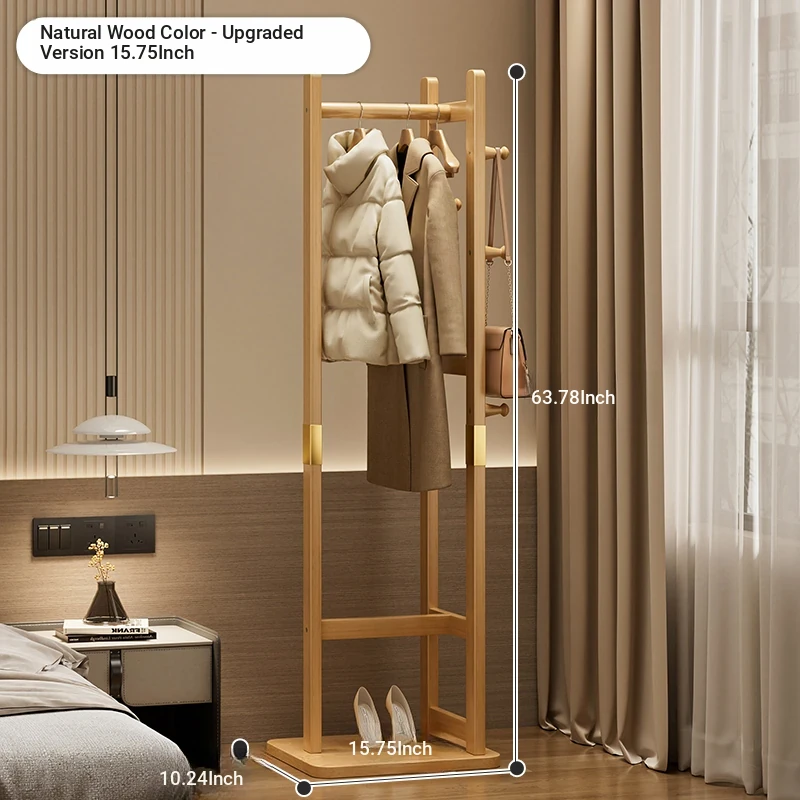 Space-Saving Solid Wood Clothes Rack for Bedroom and Living Room – Perfect for Hanging Clothes at Night, Sturdy Floor Stand for Bags and Accessories, Ideal for Entryways!