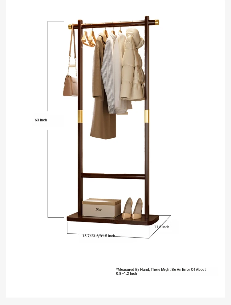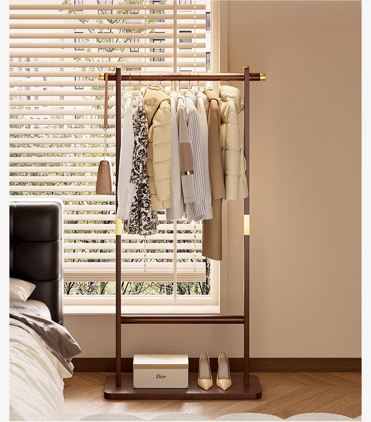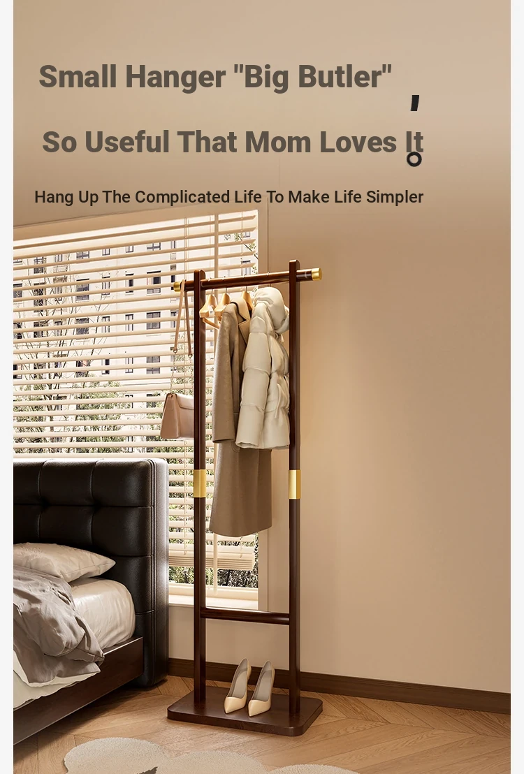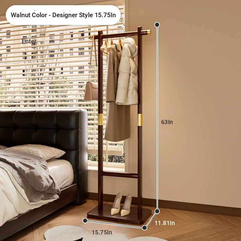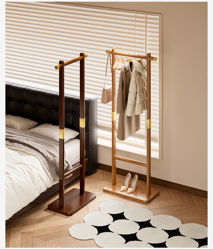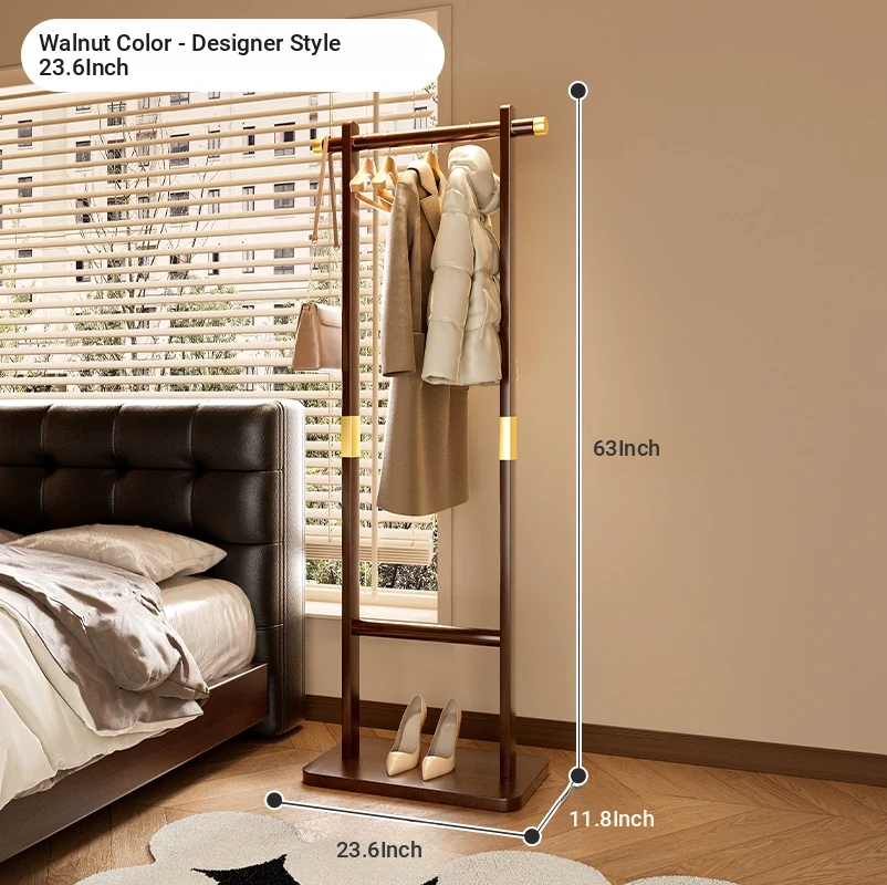 Space-Saving Solid Wood Clothes Rack for Bedroom and Living Room – Perfect for Hanging Clothes at Night, Sturdy Floor Stand for Bags and Accessories, Ideal for Entryways!