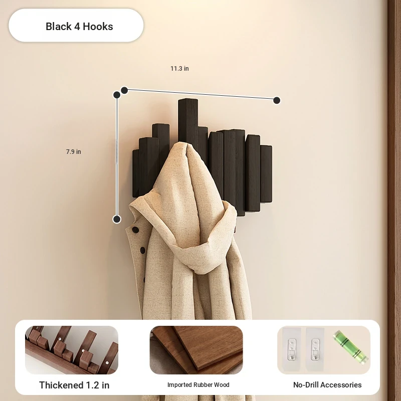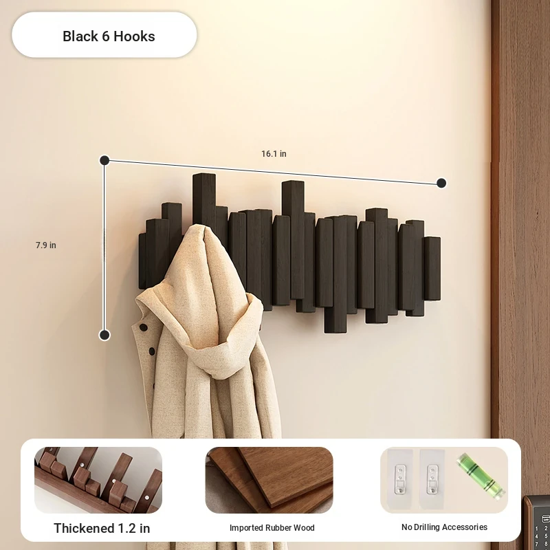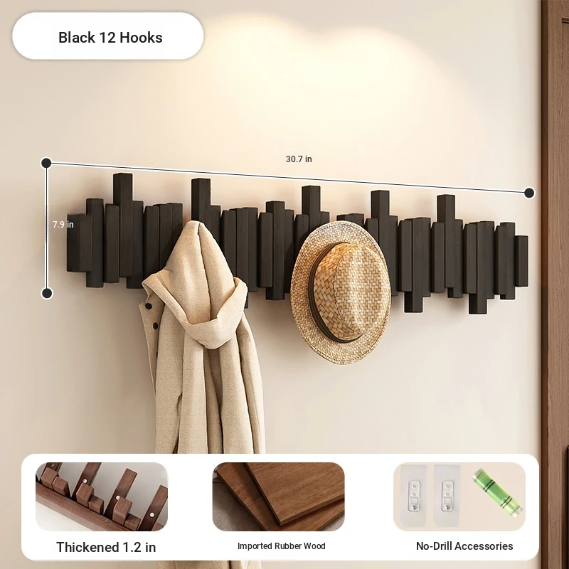 [No punching] Black 12 Hook [international FSC certification rubber wood] [send no punching accessories]]
