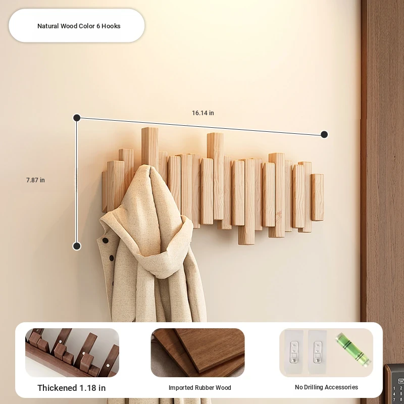 [No punching] primary color 6 Hook [international FSC certification rubber wood] [send no punching accessories]]
