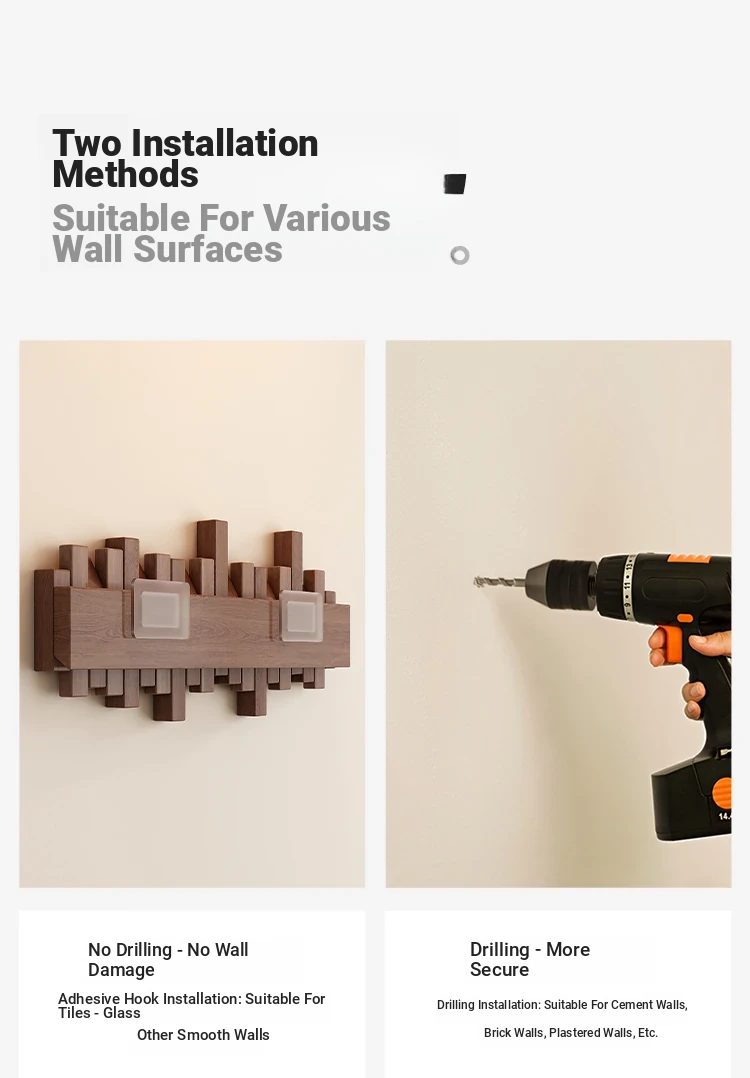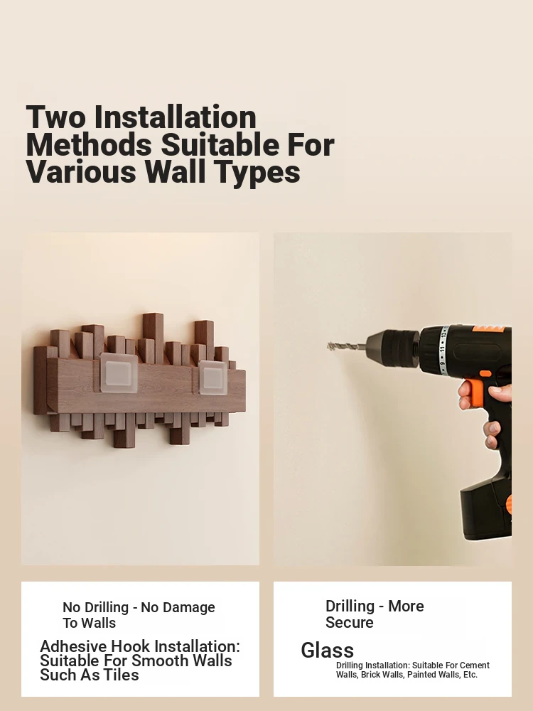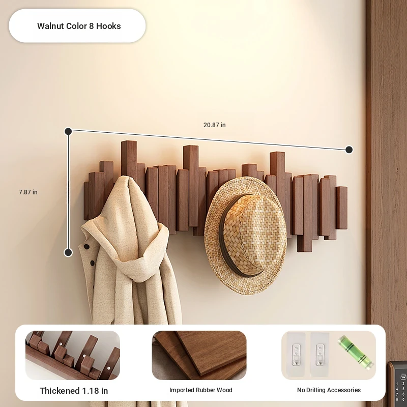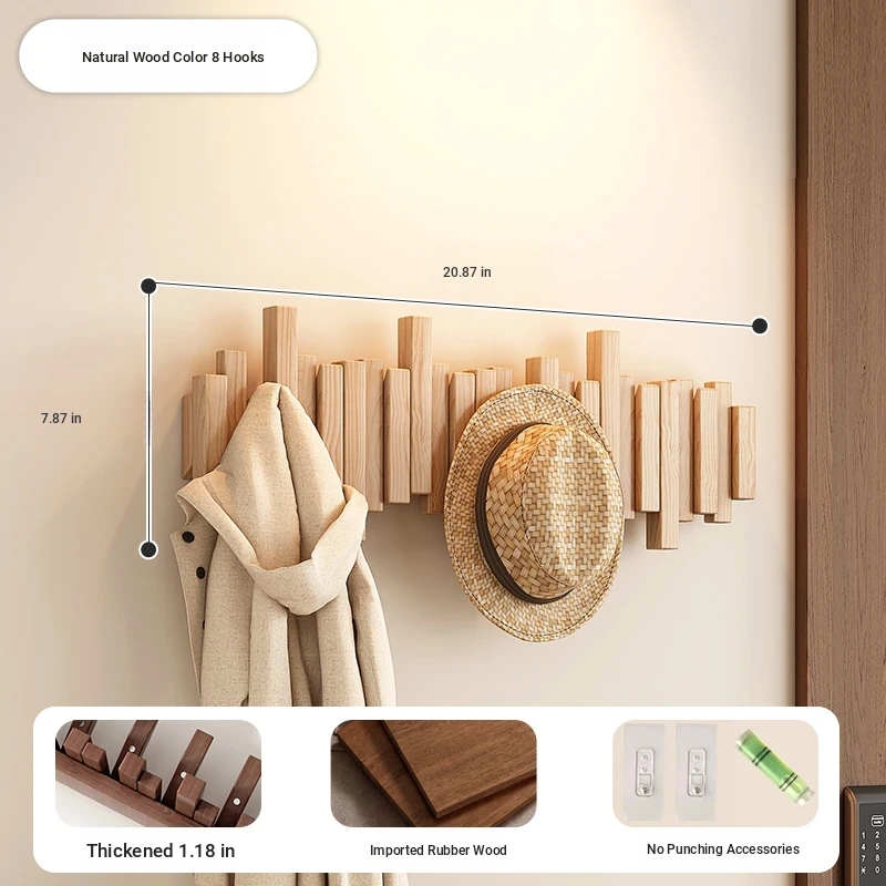 [No punching] primary color 8 Hook [international FSC certification rubber wood] [send no punching accessories]]