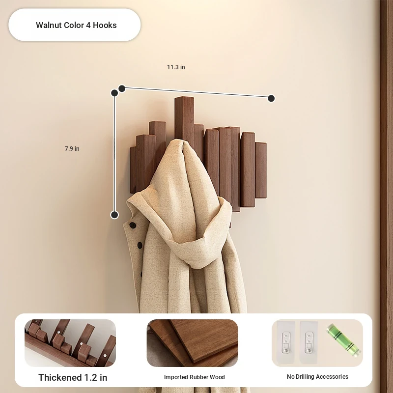 [No punching] walnut color 4 hook [international FSC certification rubber wood] [send no punching accessories]]