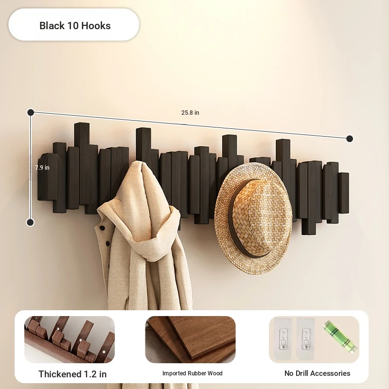 Hot sale⭐Black 10 hook [international FSC certification rubber wood] [send free punch accessories]]