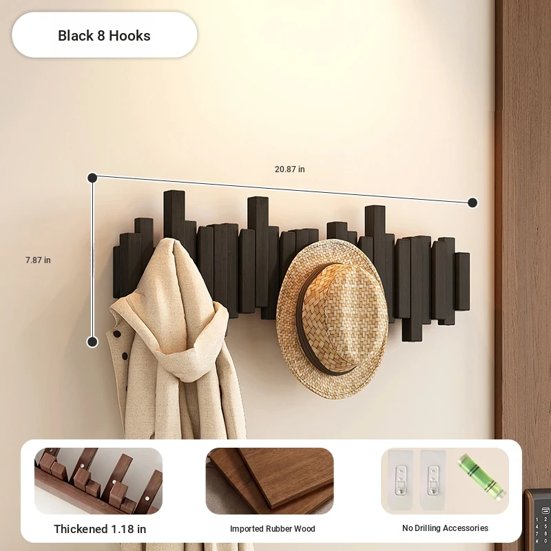 Hot sale⭐Black 8 Hook [international FSC certification rubber wood] [send free punch accessories]]