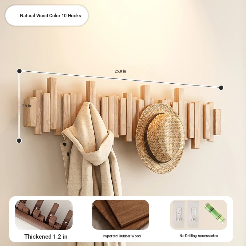[No punching] primary color 10 hook [international FSC certification rubber wood] [send no punching accessories]]