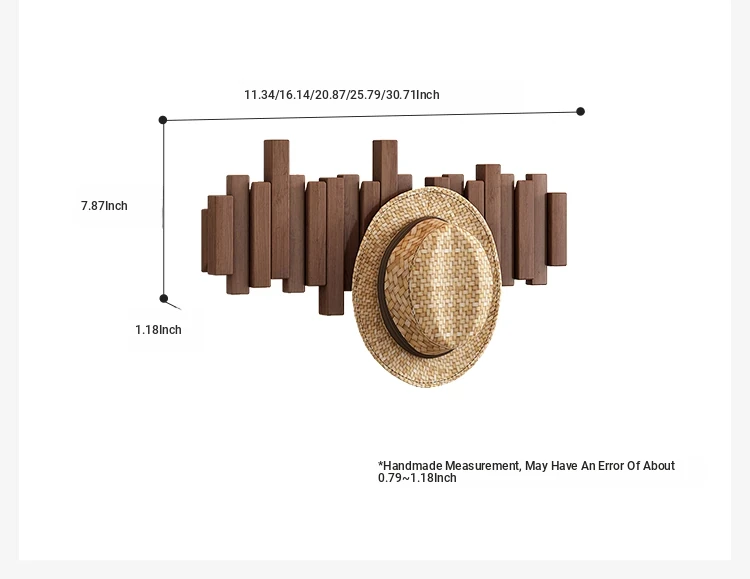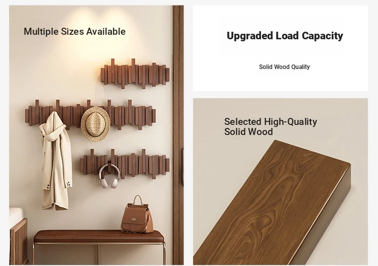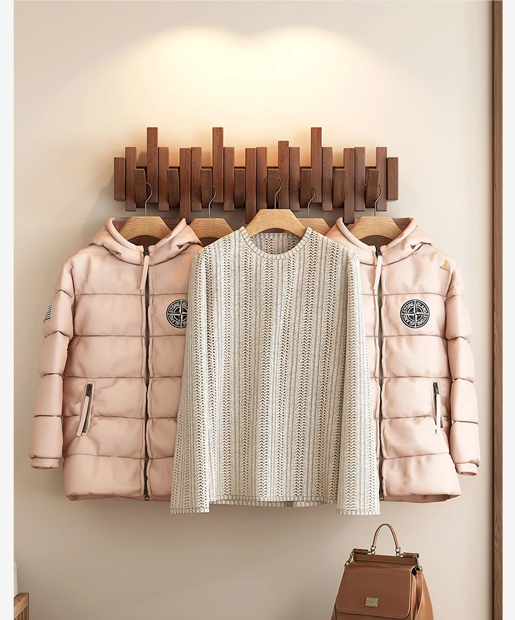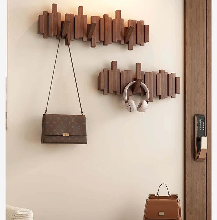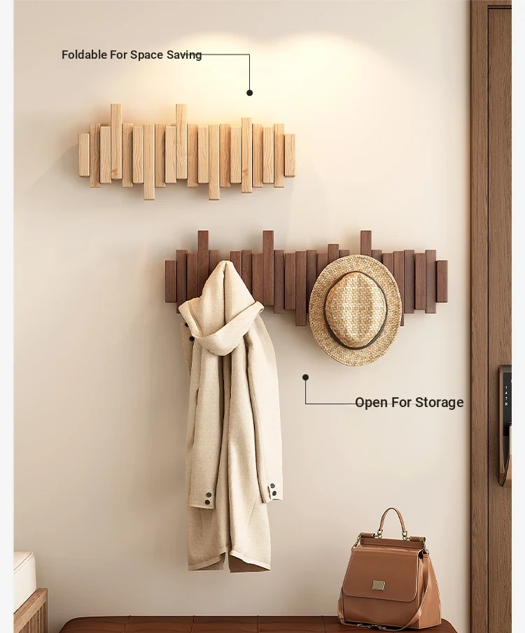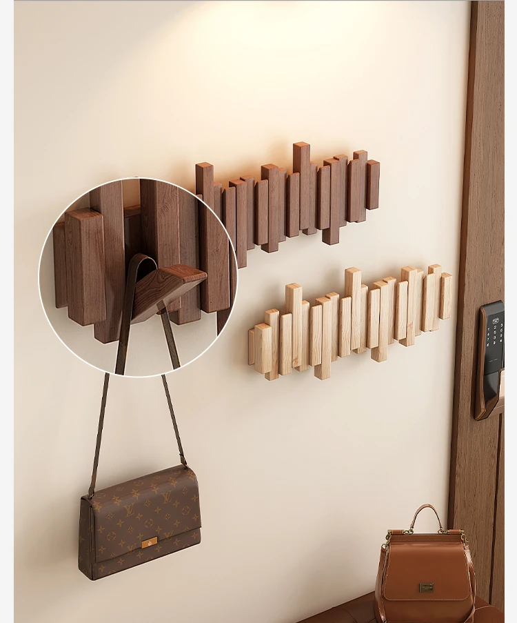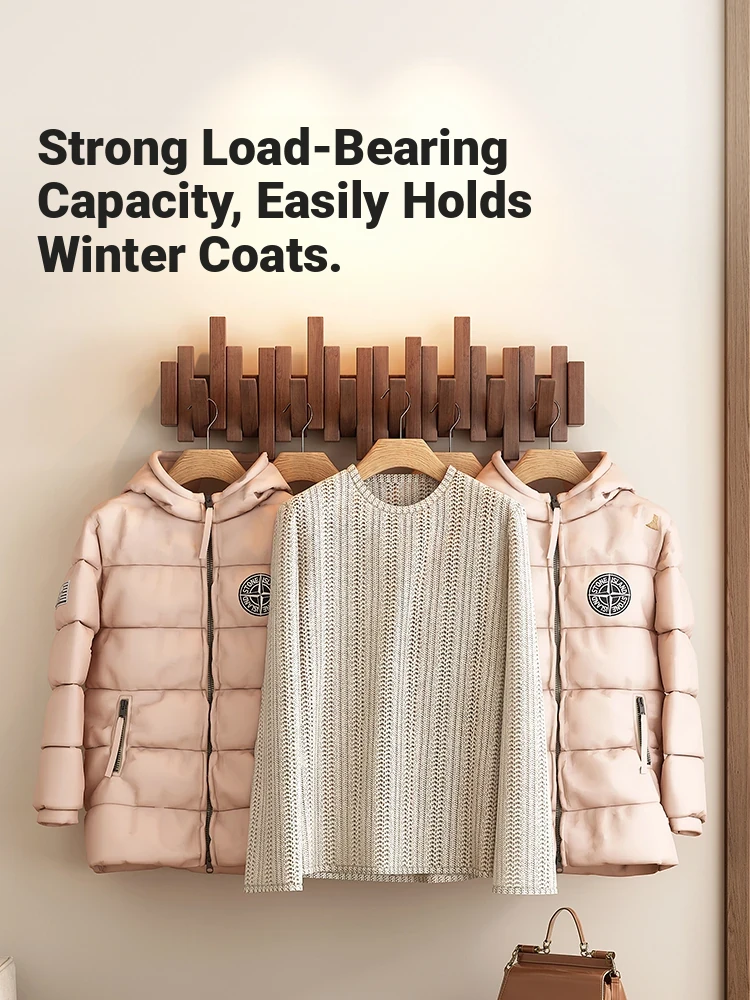 Space-Saving Solid Wood Wall-Mounted Coat Rack - Stylish Piano Key Design for Entryway and Bedroom, Perfect for Hanging Clothes and Hats!