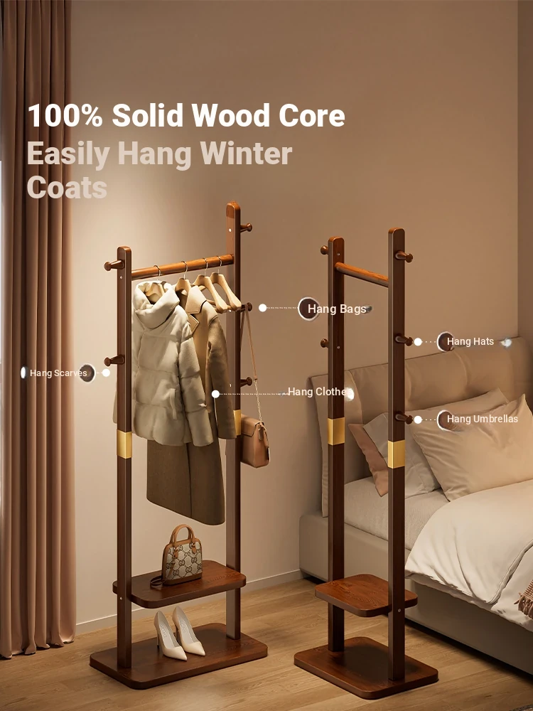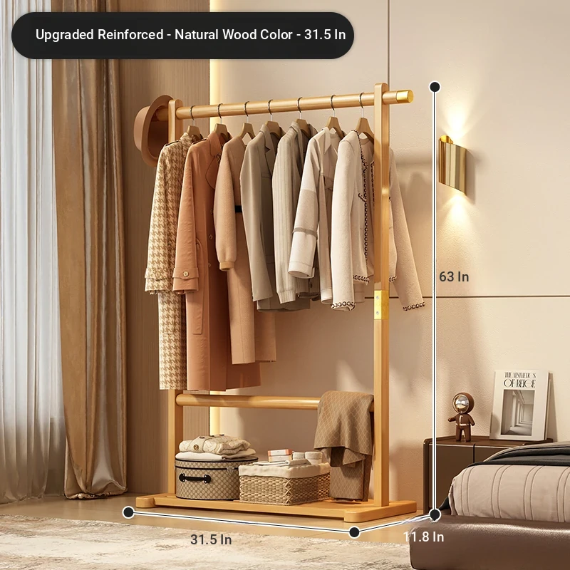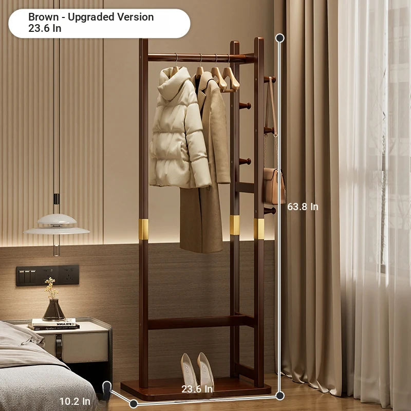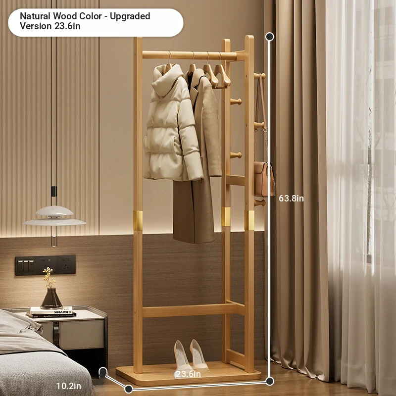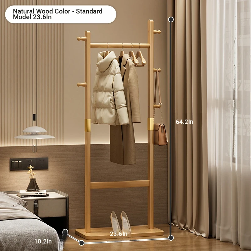 Space-Saving Wooden Clothes Rack - Stylish Floor Stand for Bedroom, Perfect for Hanging Clothes and Accessories by Your Bed - The Ultimate Nighttime Clothing Organizer