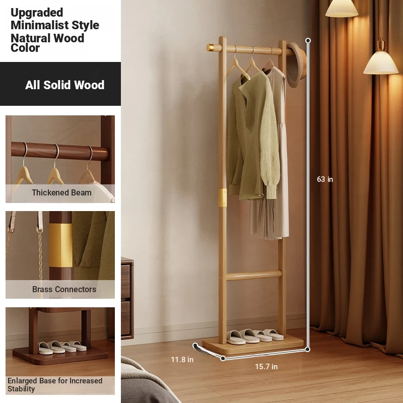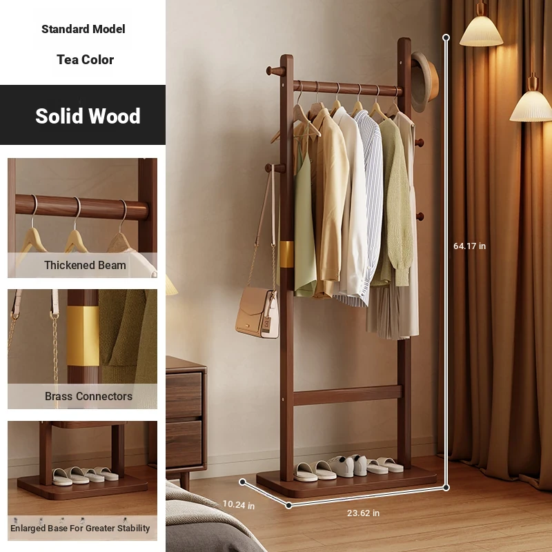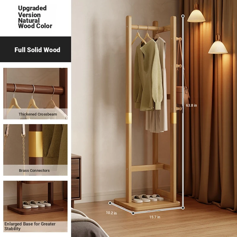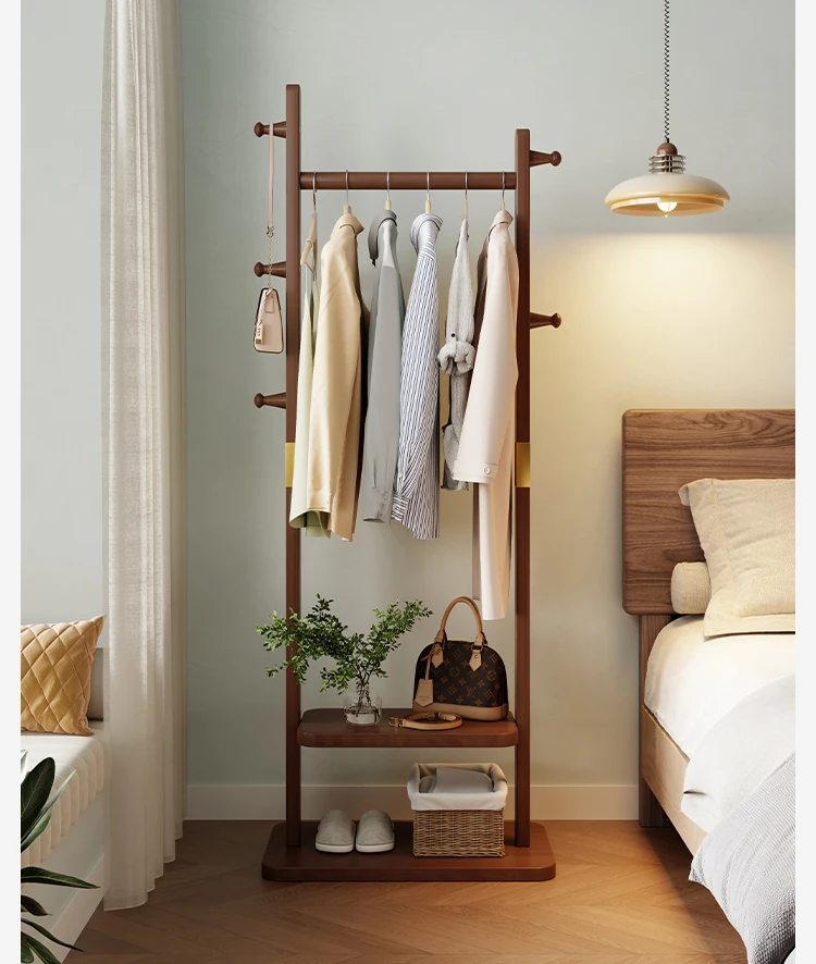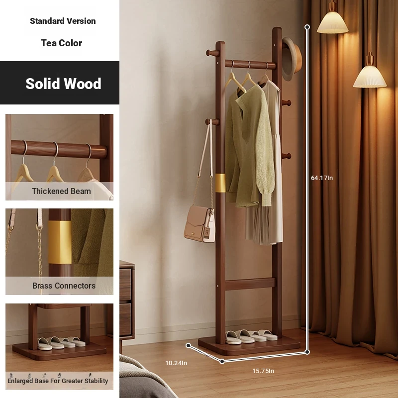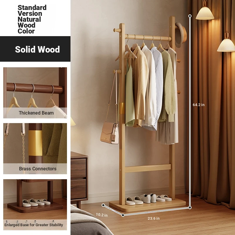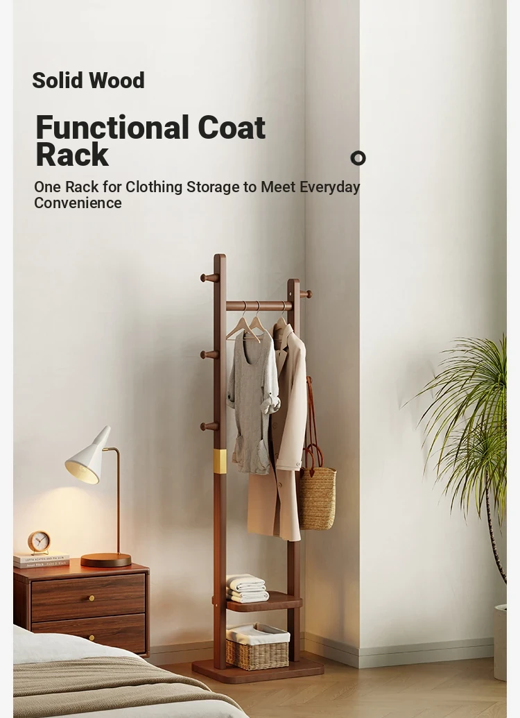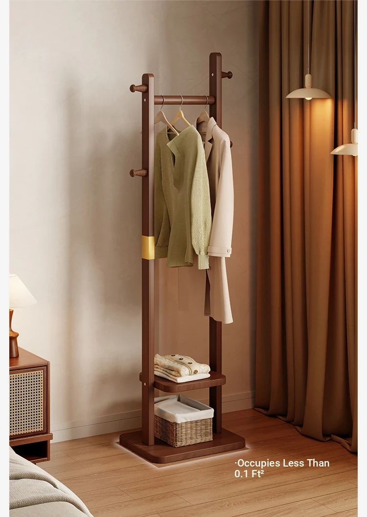 Space-Saving Wooden Coat Rack - Stylish Floor Stand for Bedroom, Ideal for Bedside or Entryway Use, Compact Design for Hats and Coats