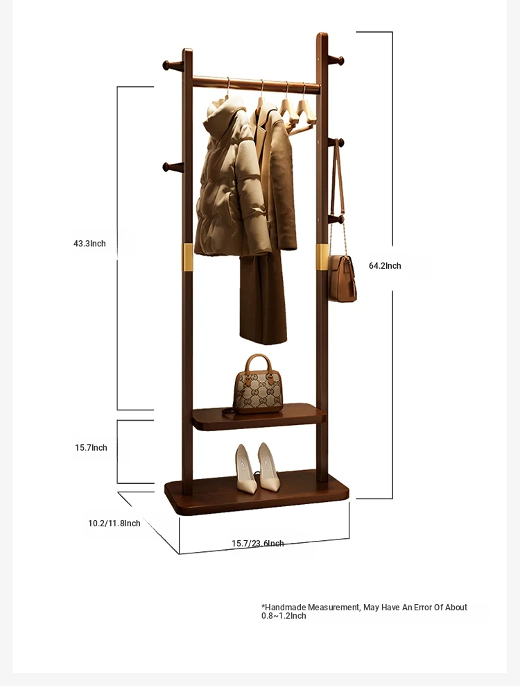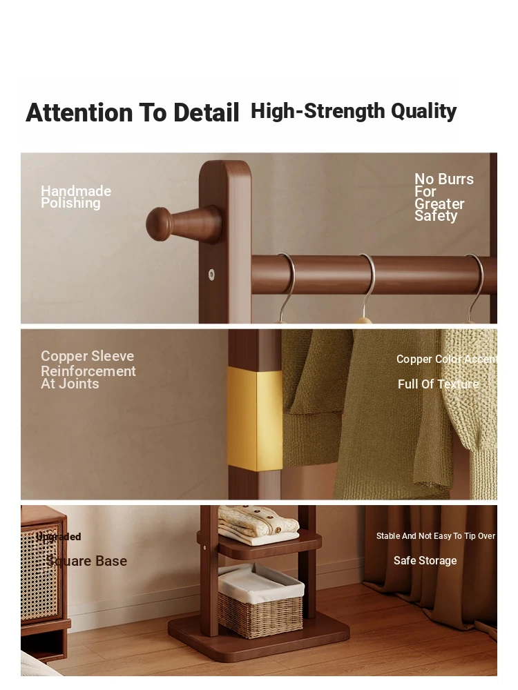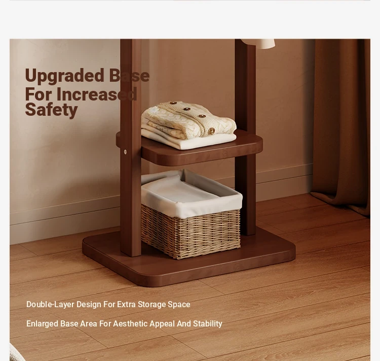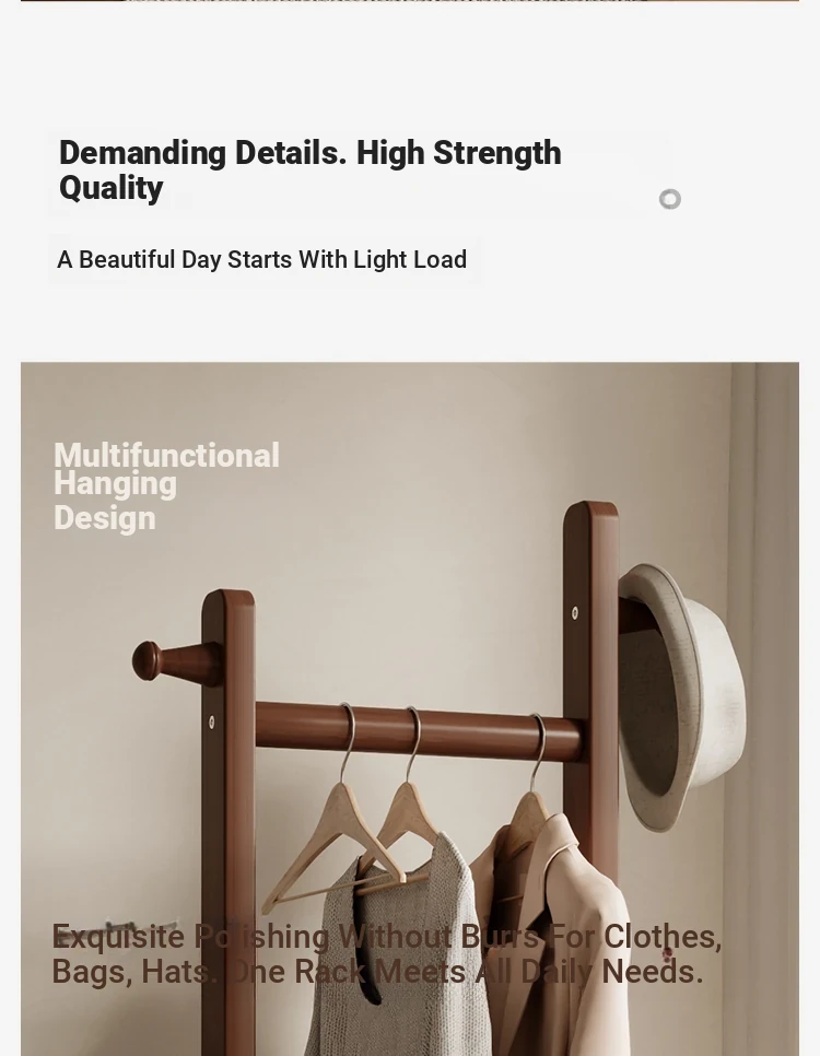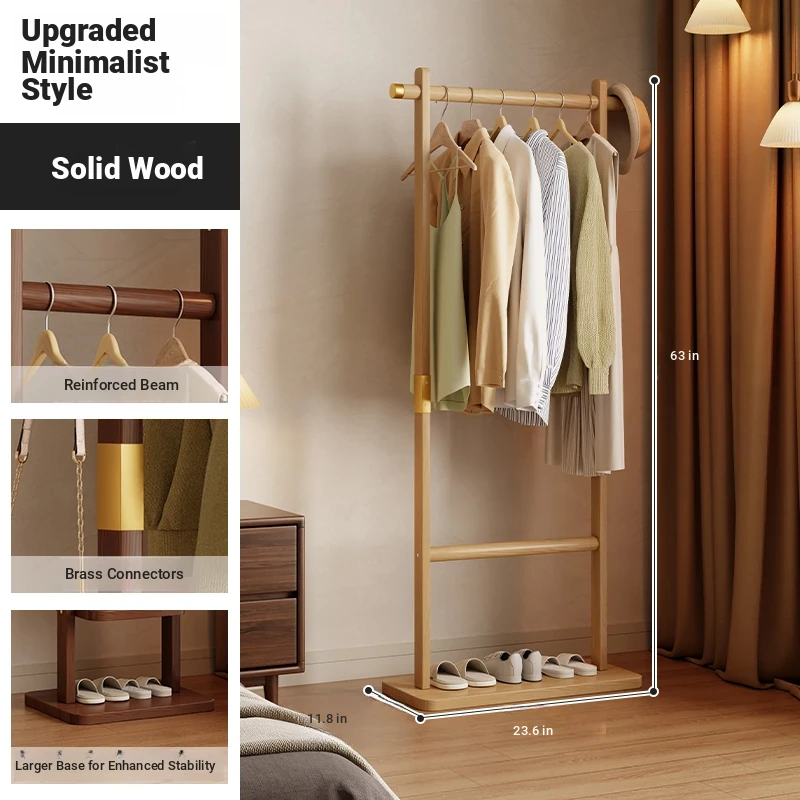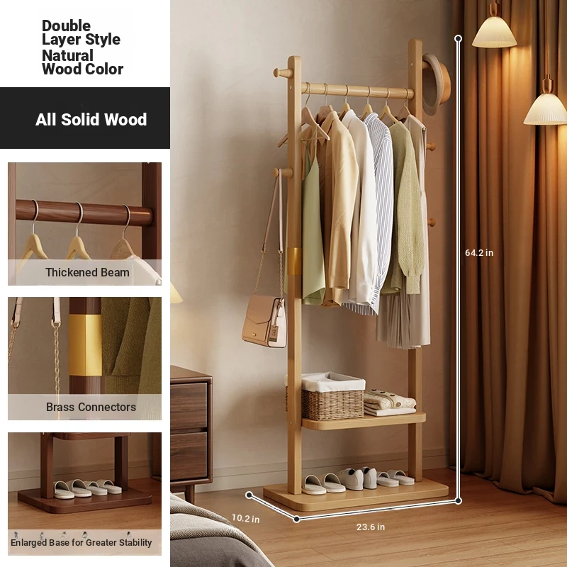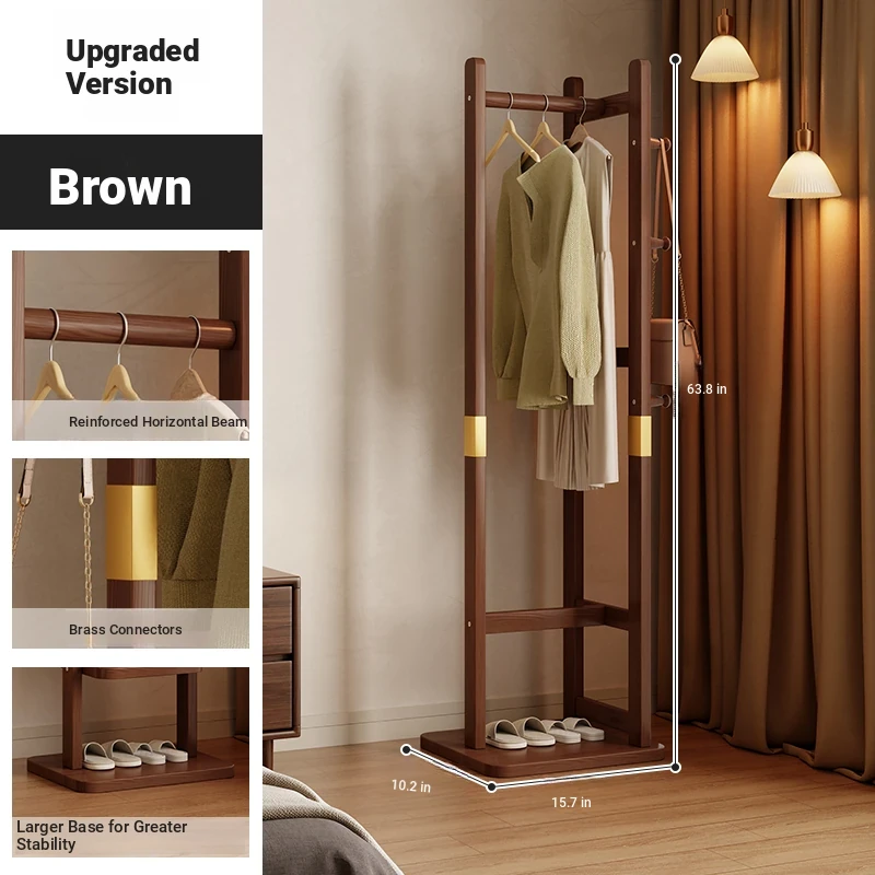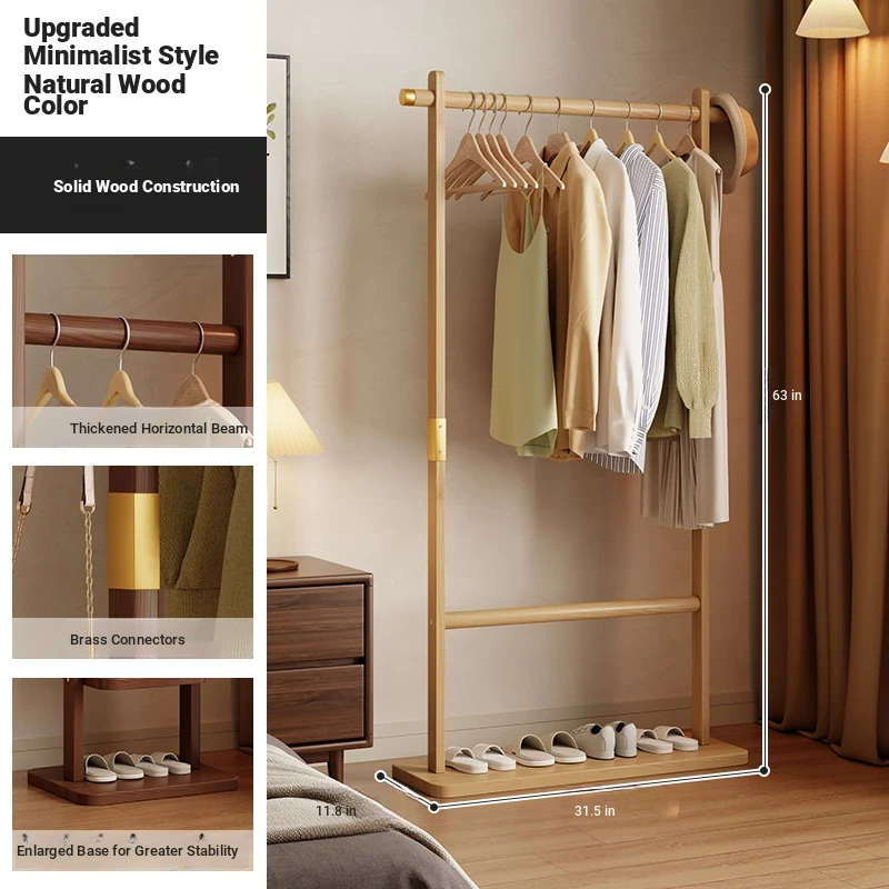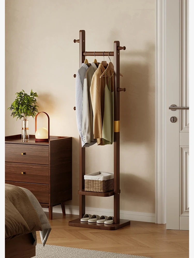 Space-Saving Wooden Coat Rack - Stylish Floor Stand for Bedroom, Ideal for Bedside or Entryway Use, Compact Design for Hats and Coats
