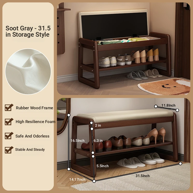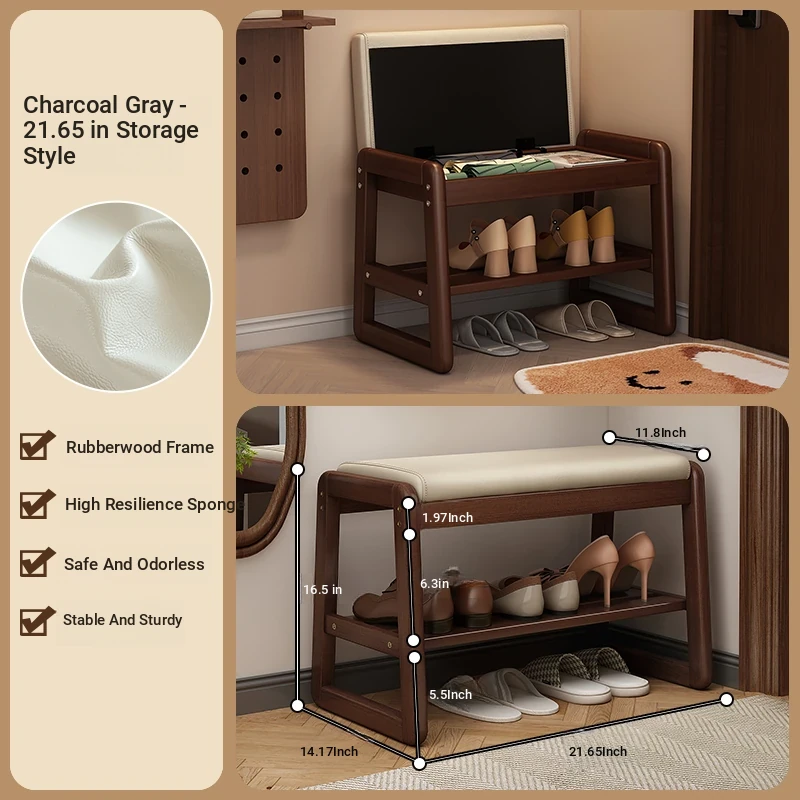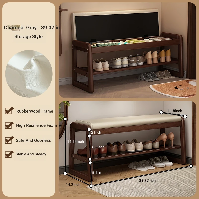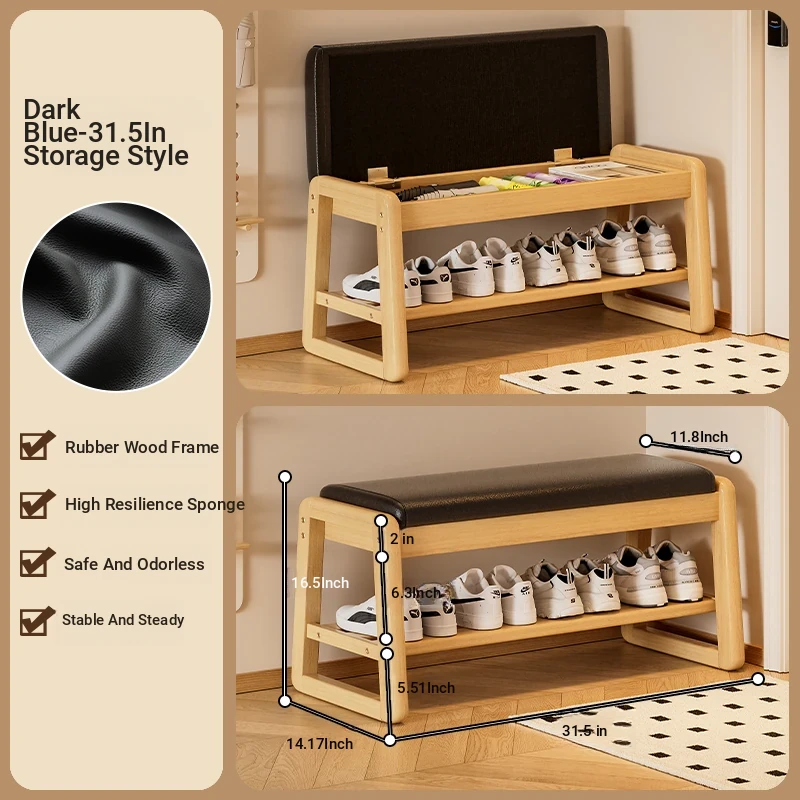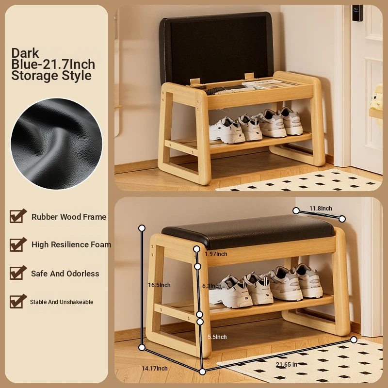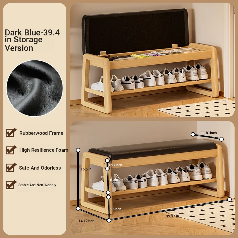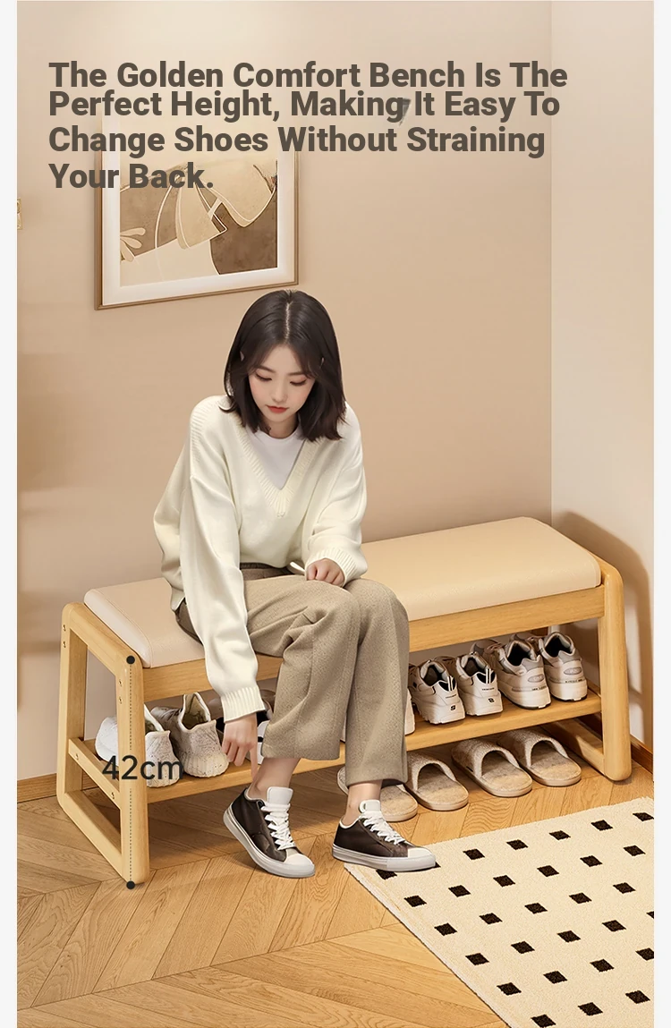 Stylish Entryway Shoe Bench – Multi-functional Hardwood Soft Cushion Seating & Storage for Home, Perfect for Easy Shoe Changes at the Door, Space-Saving Design, Ideal for Hallways and Entrances