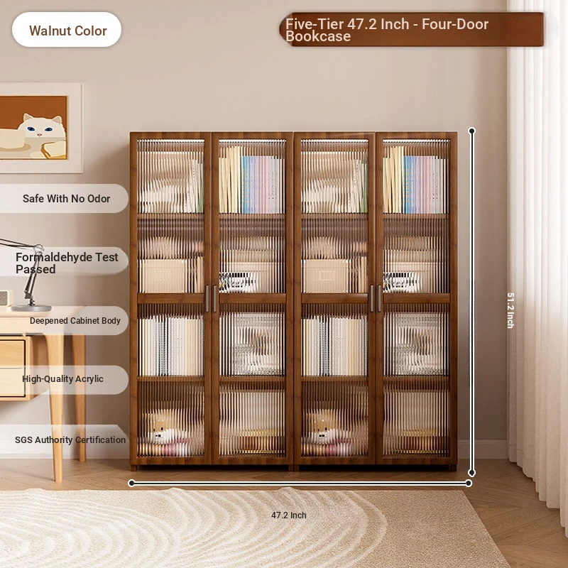 [Transparent Door] Walnut Color, Four Doors -5 Layers 47.24in [Environmental-Friendly No Odor Stable and Not Shaking]]