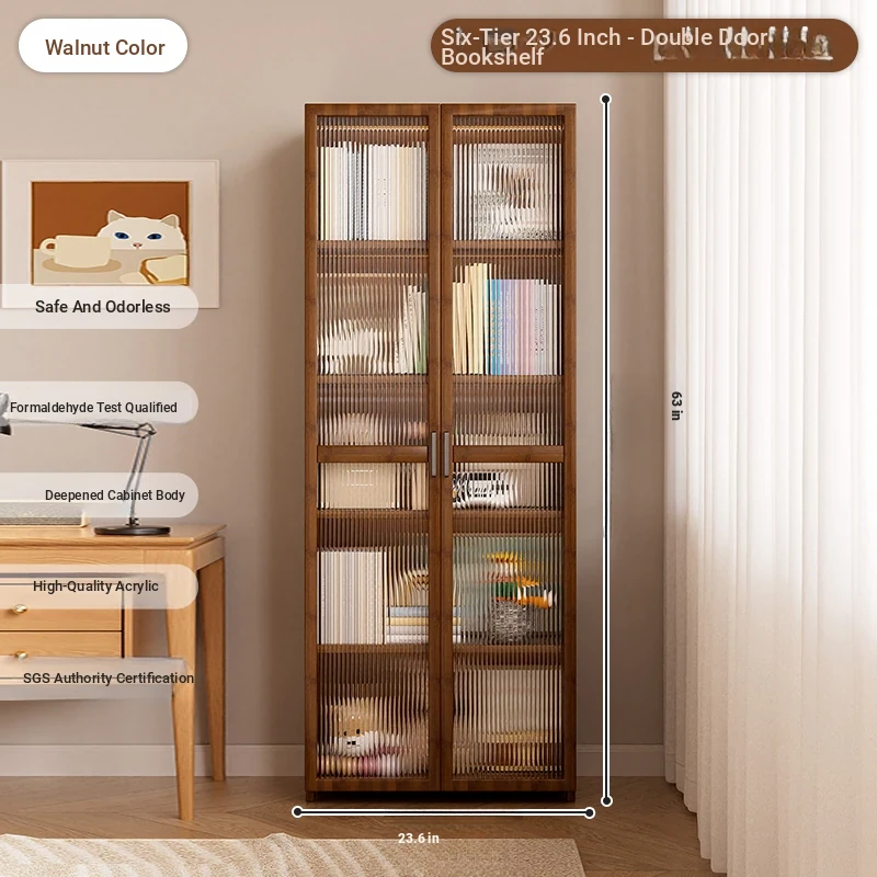 [Transparent Door] Walnut Color, Double Door -6 Floor 23.62in [Environmental-Friendly No Odor Stable and Not Shaking]]