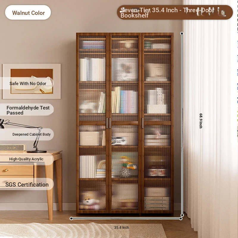[Transparent Door] Walnut Color, Three Doors -7 Layers 35.43in [Environmental-Friendly No Odor Stable and Not Shaking]]