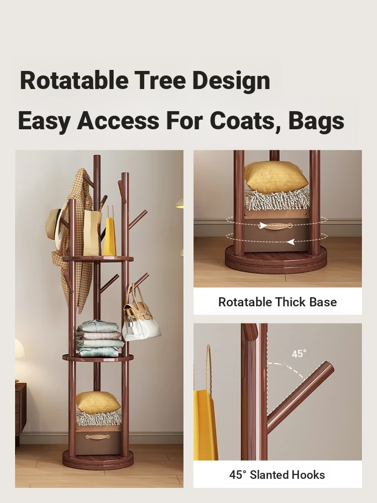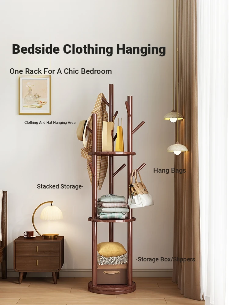 Stylish Solid Wood Clothes Rack - Compact Freestanding Corner Hanger for Bedroom & Living Room, Perfect for Bedside Use to Keep Your Outfits Organized!