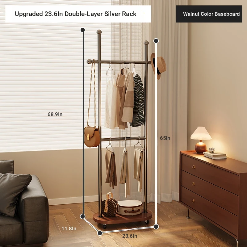 ⭐Hot-selling upgrade double-layer⭐: [23.62in double layer] silver frame + walnut color bottom plate