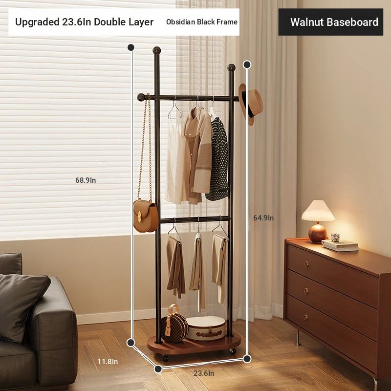 Upgrade double layer: [23.62in double layer] Obsidian Black Frame + walnut color bottom plate