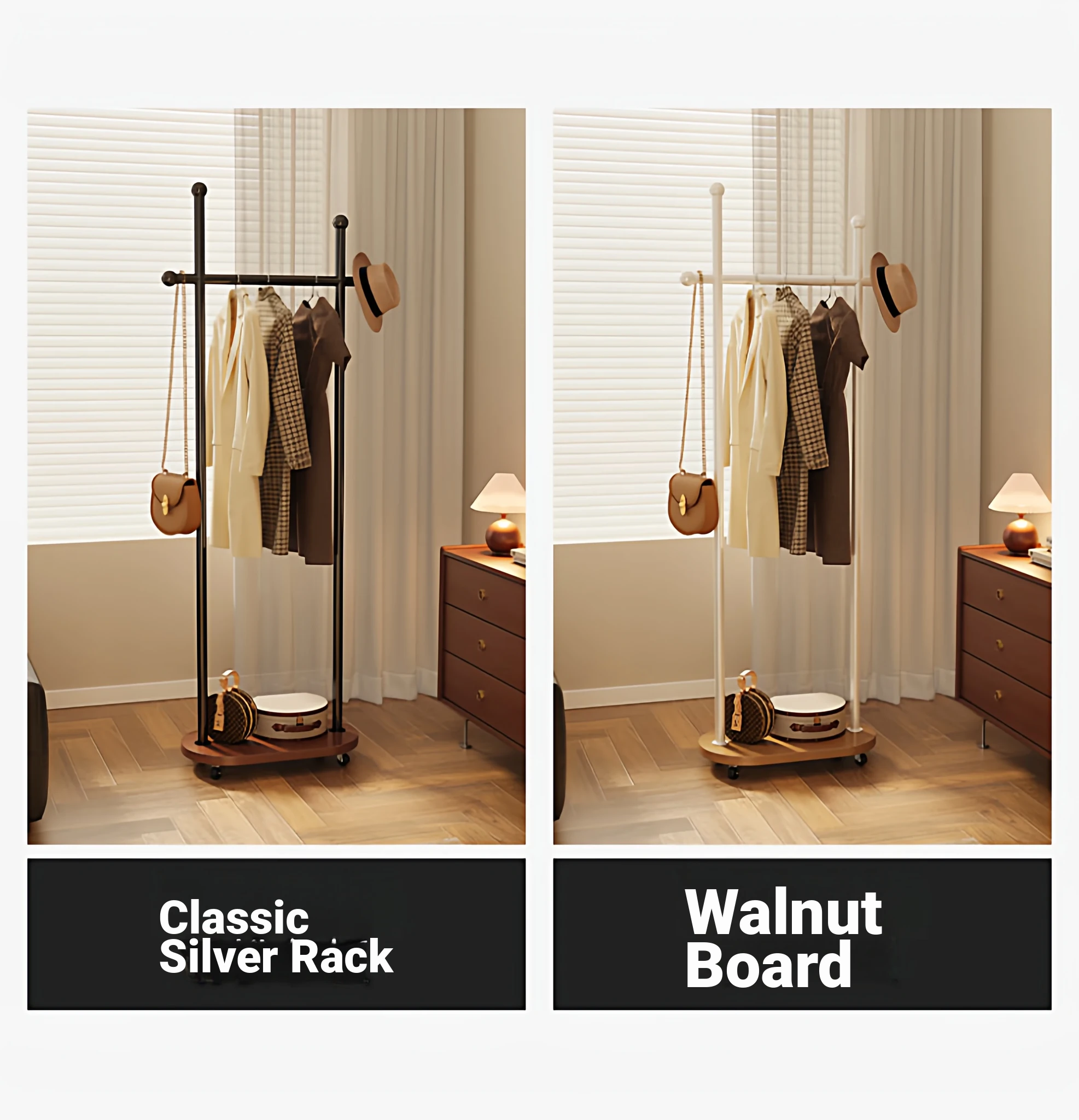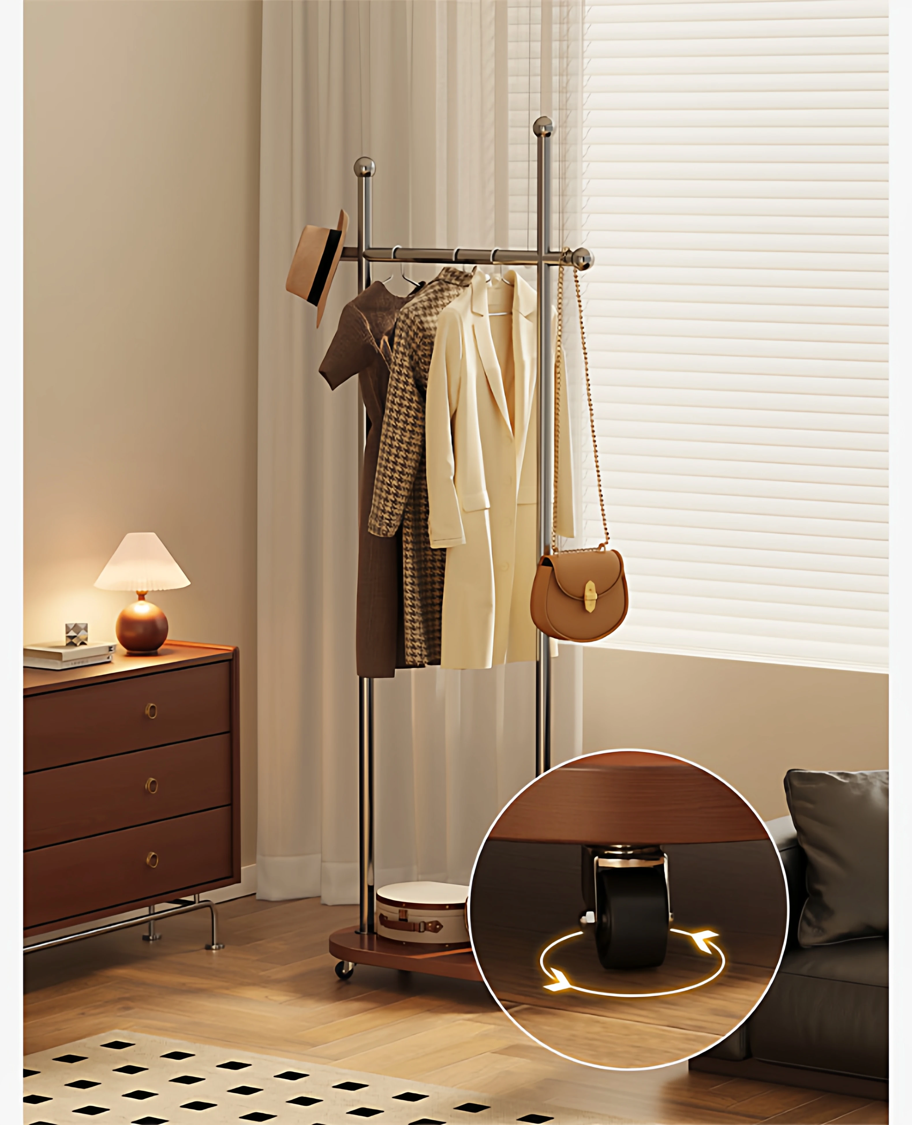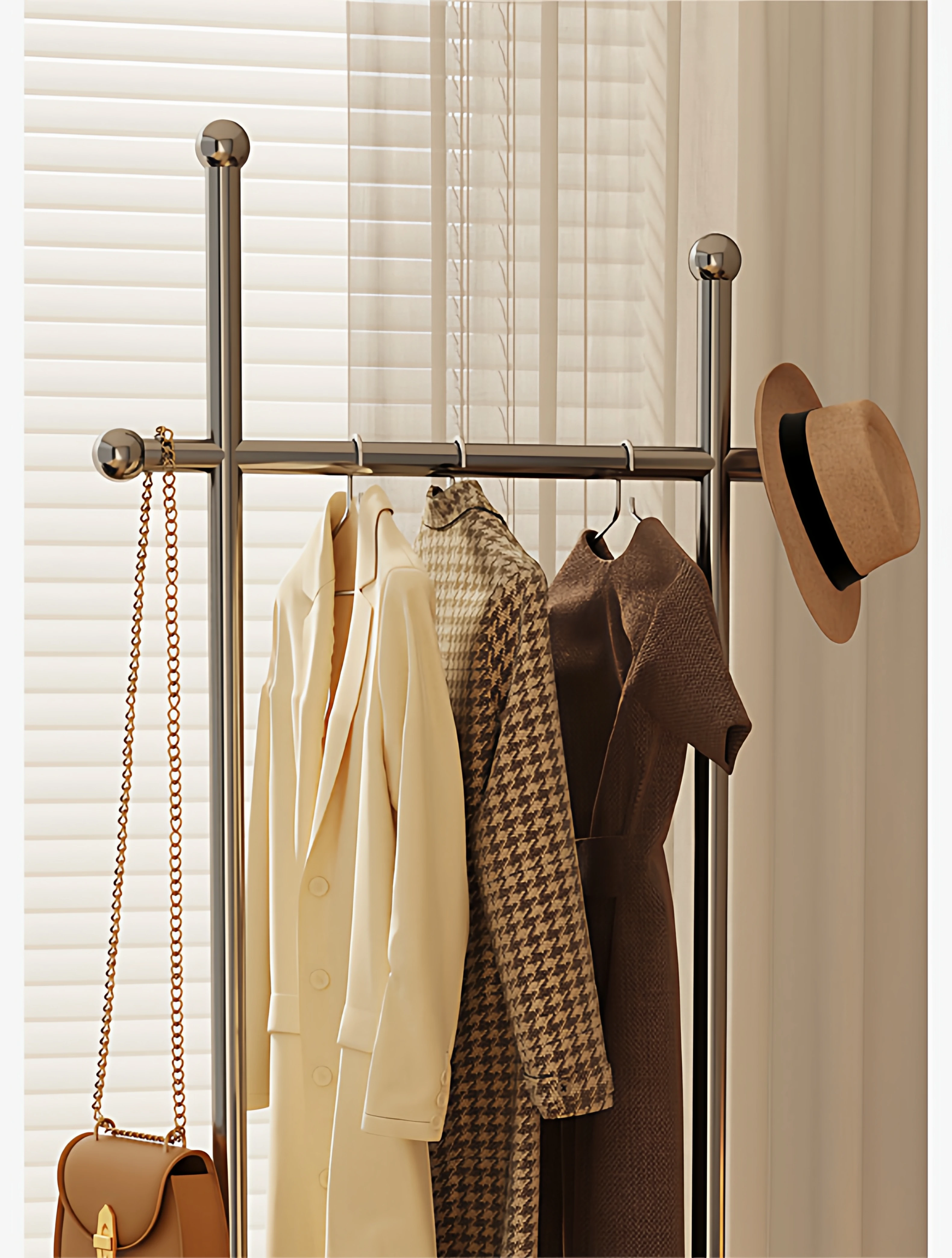 Stylish Space-Saving Freestanding Clothes Rack for Bedroom - Versatile and Portable Hanger Stand, Perfect for Home Use and Organizing Your Clothes and Accessories!