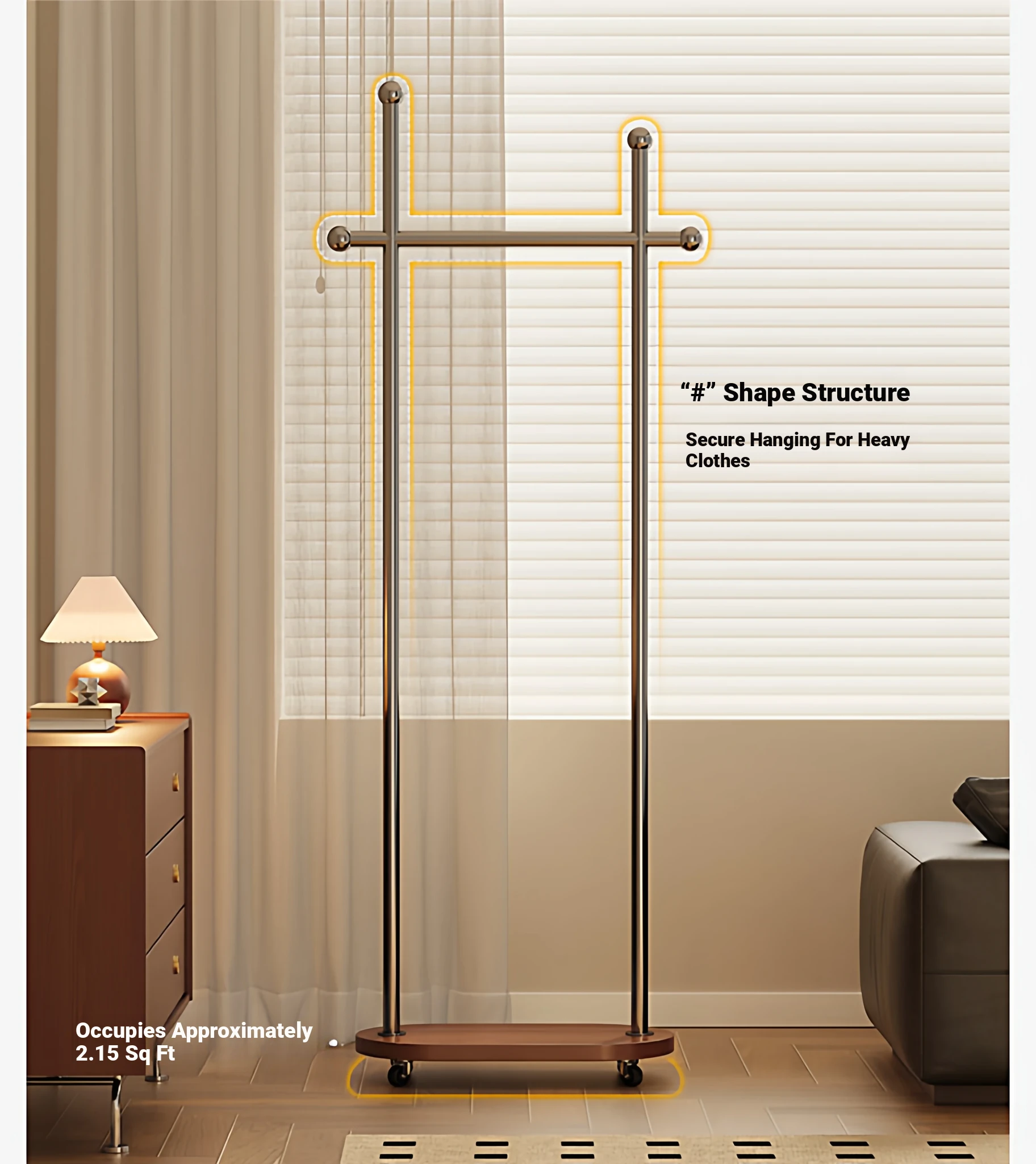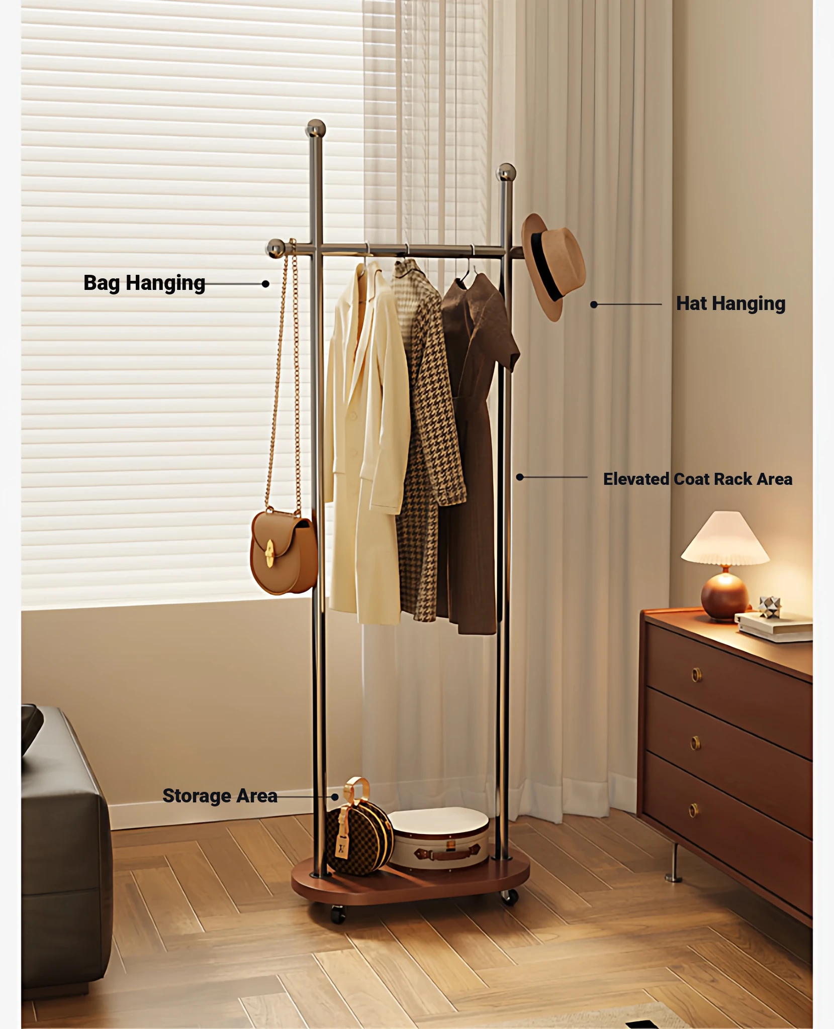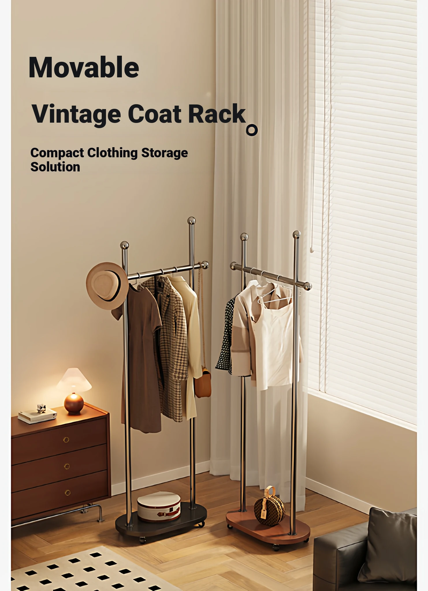 Stylish Space-Saving Freestanding Clothes Rack for Bedroom - Versatile and Portable Hanger Stand, Perfect for Home Use and Organizing Your Clothes and Accessories!