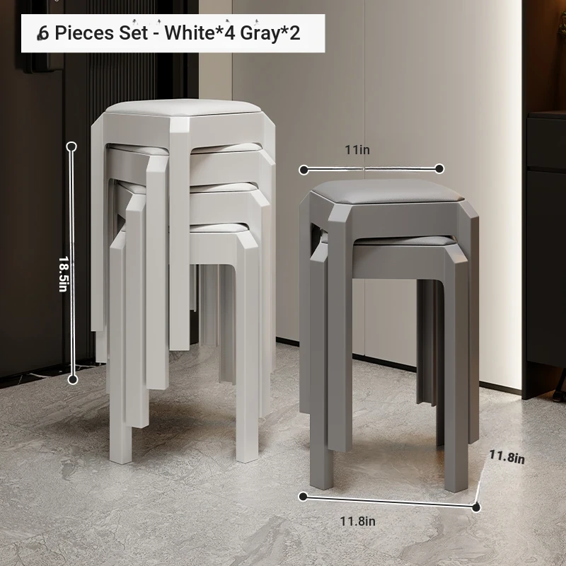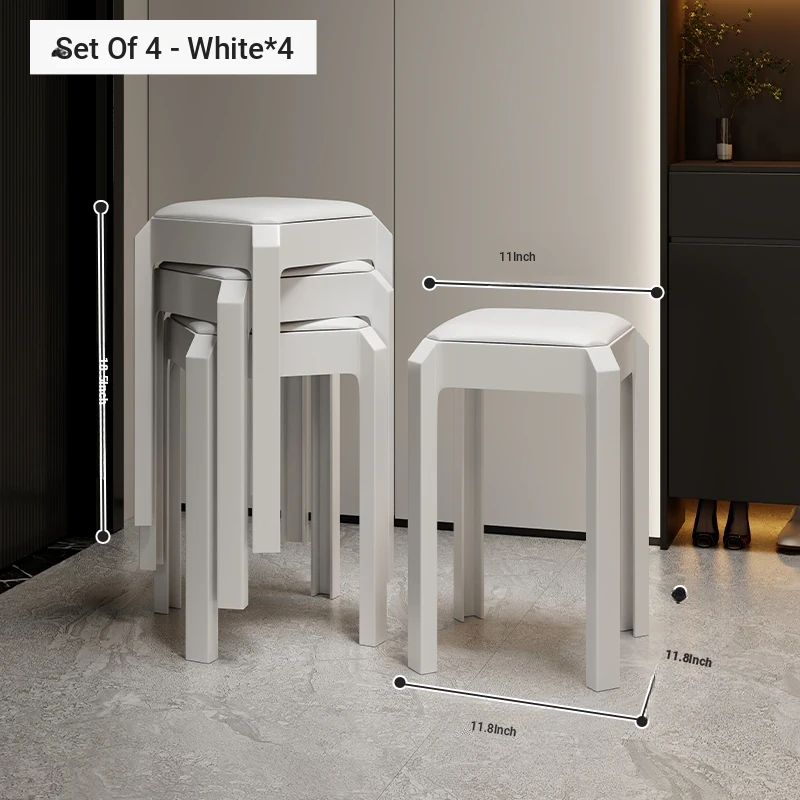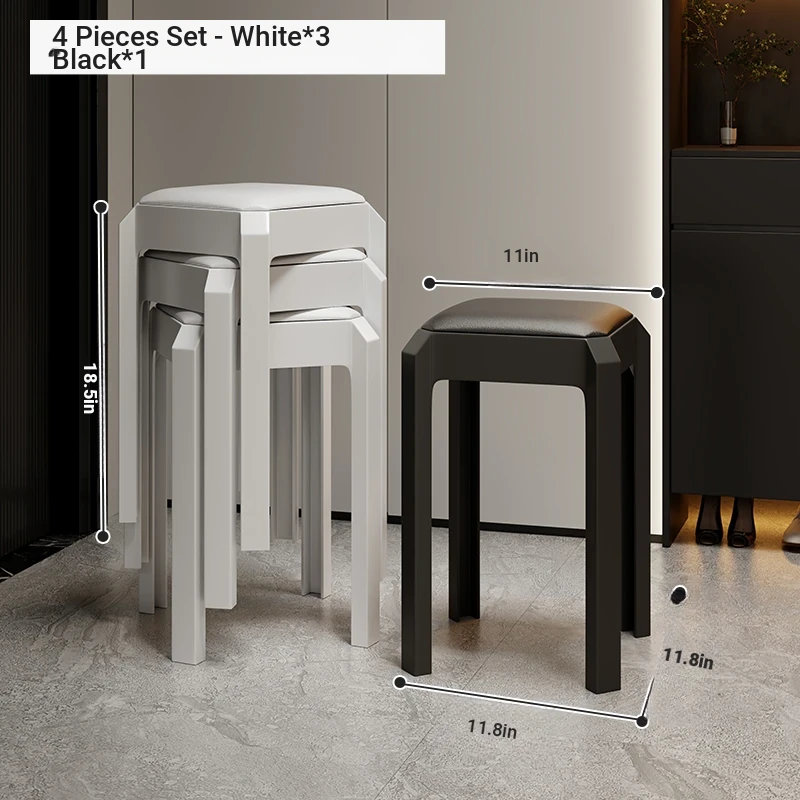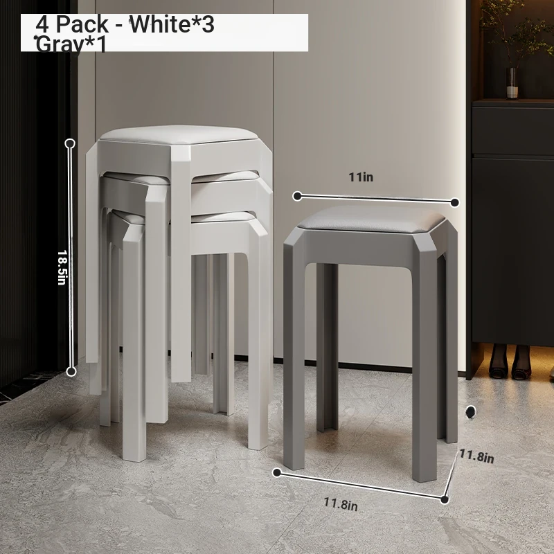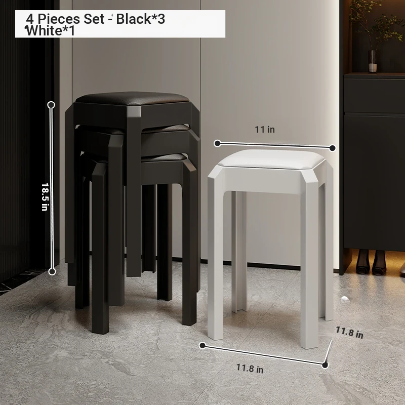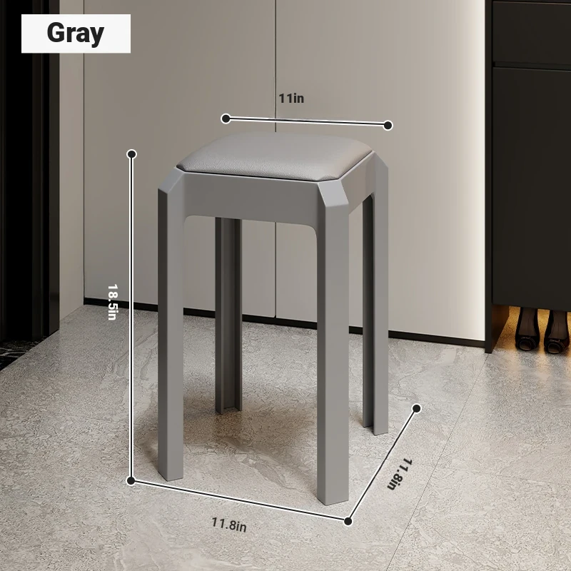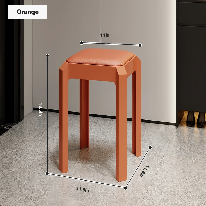 Stylish Stackable Stool - Modern Minimalist Design, Durable Thickened Plastic, Soft Cushion Seat, Perfect for Home Use as Extra Dining Chair or Versatile Square Bench.