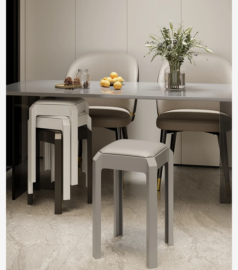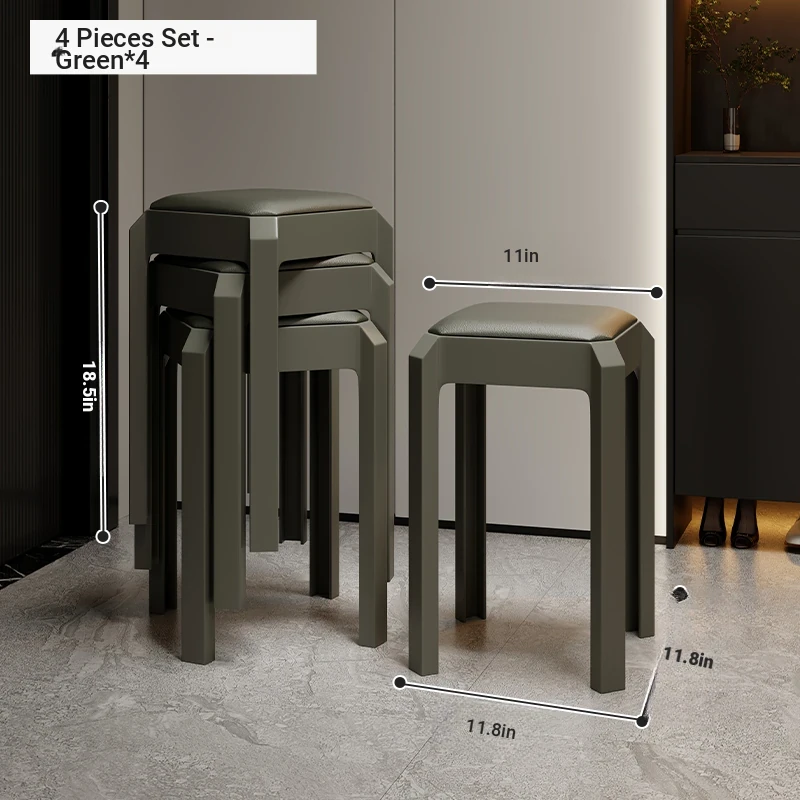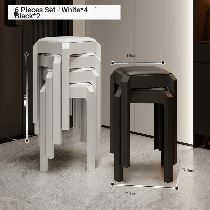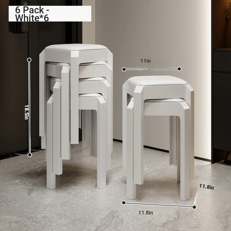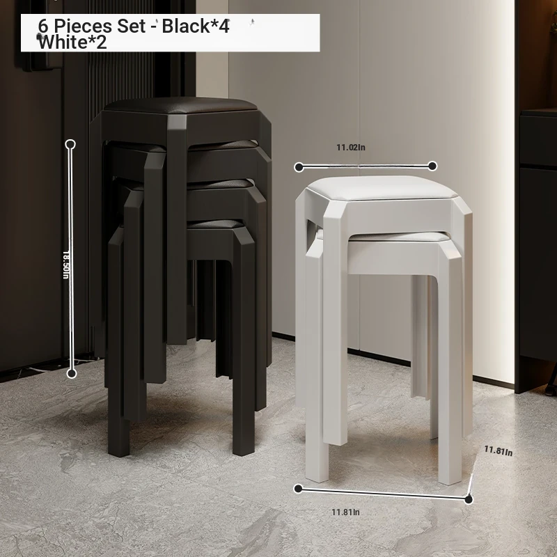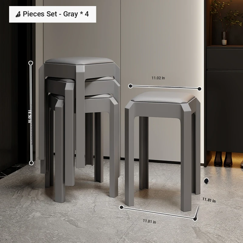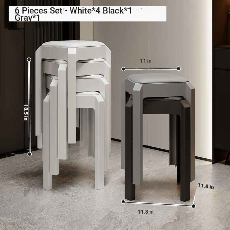 Stylish Stackable Stool - Modern Minimalist Design, Durable Thickened Plastic, Soft Cushion Seat, Perfect for Home Use as Extra Dining Chair or Versatile Square Bench.