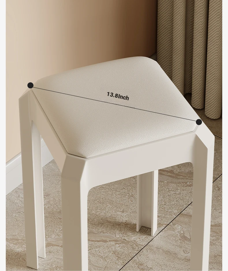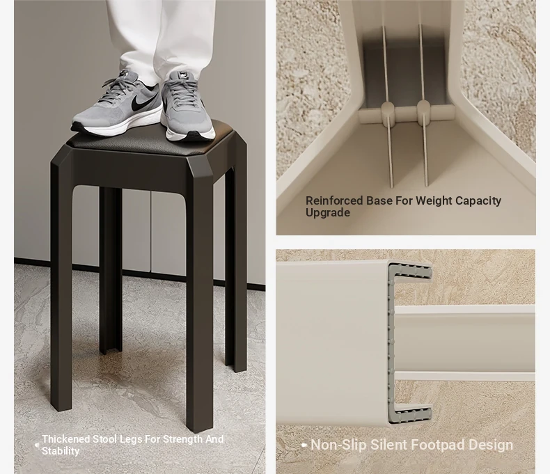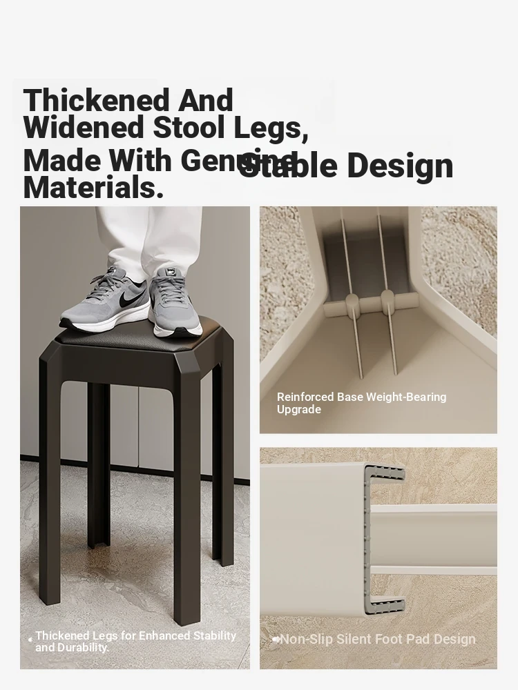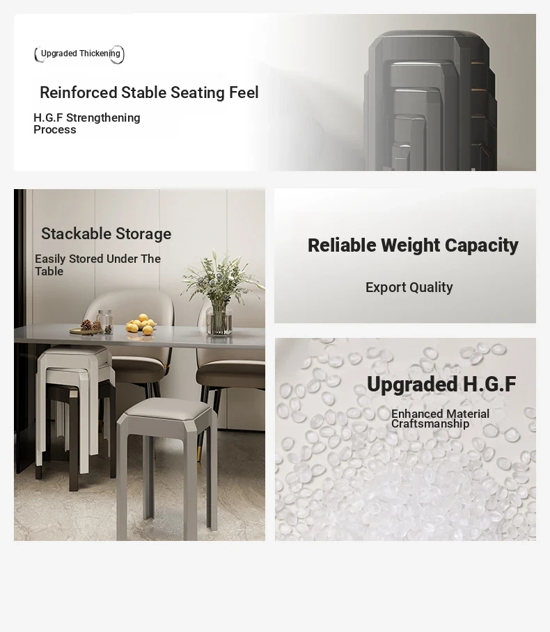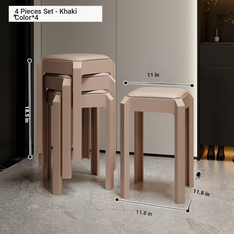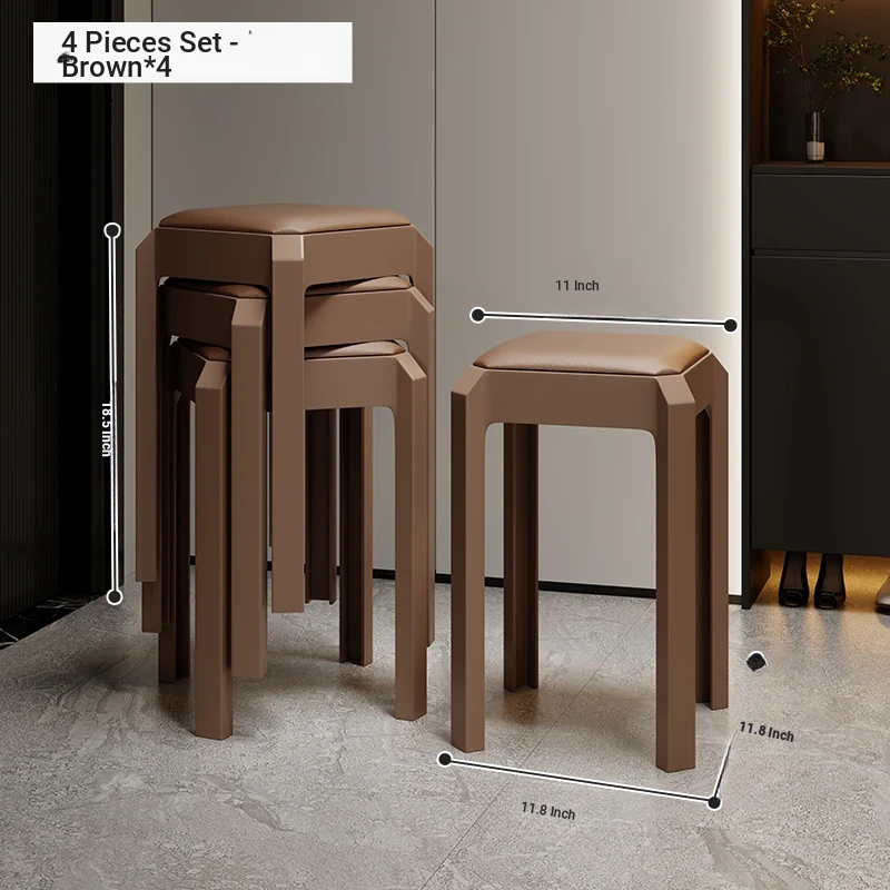 Stylish Stackable Stool - Modern Minimalist Design, Durable Thickened Plastic, Soft Cushion Seat, Perfect for Home Use as Extra Dining Chair or Versatile Square Bench.