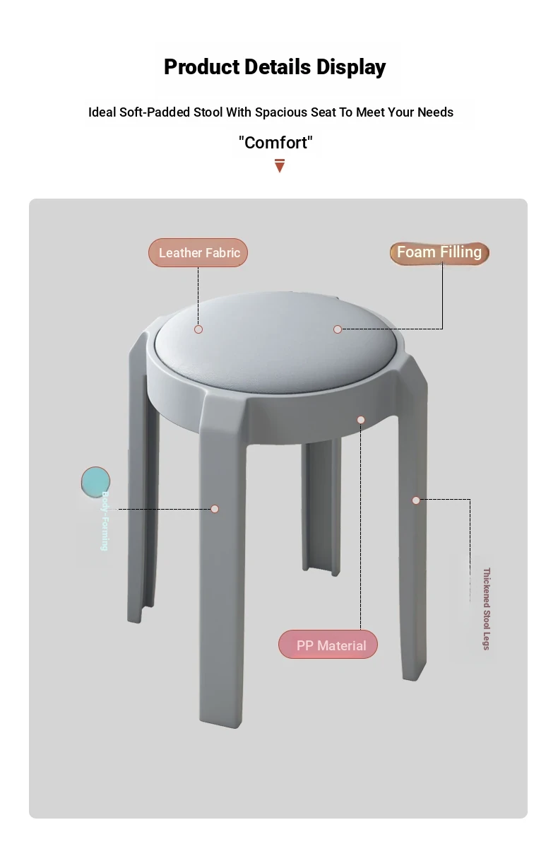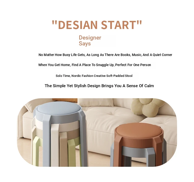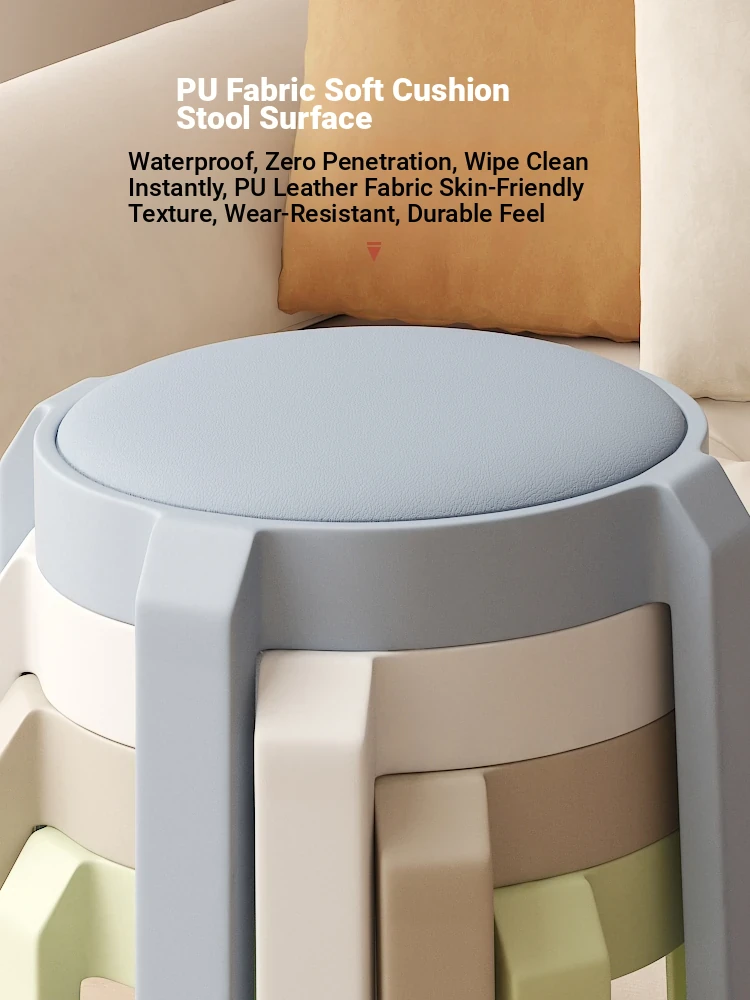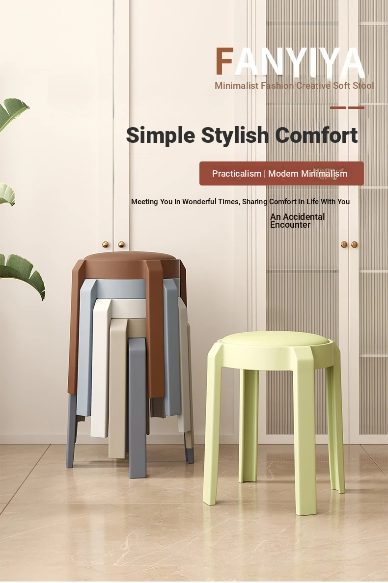 Stylish Stacking Plastic Stool - Premium Quality Round Dining Chair for Home Use, Creative Soft Cushion High Stool, Perfect for Extra Seating at Your Dining Table.