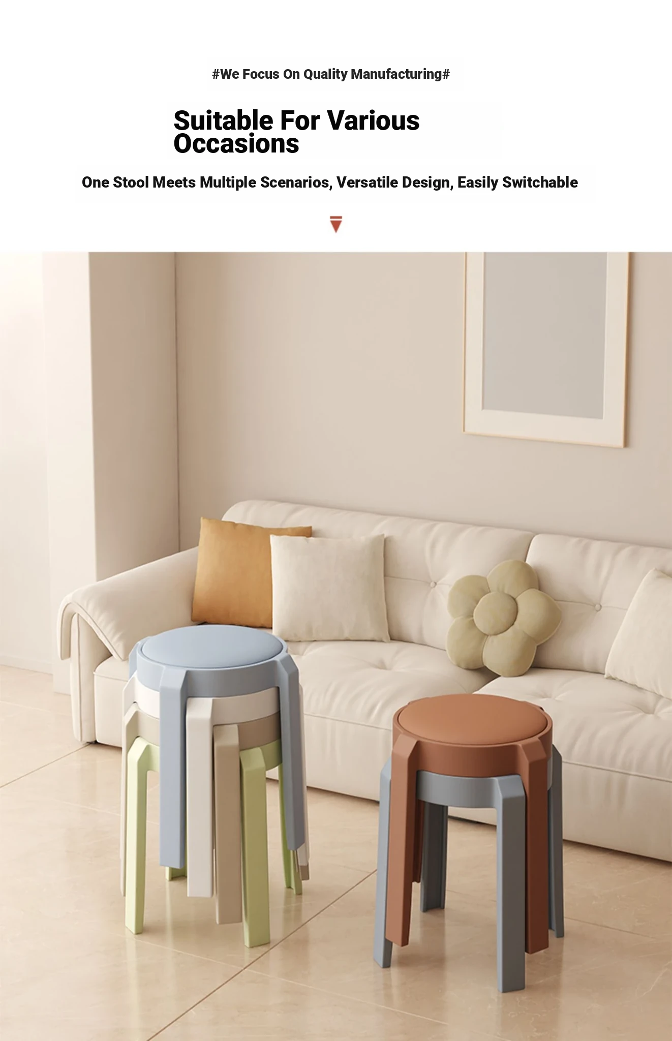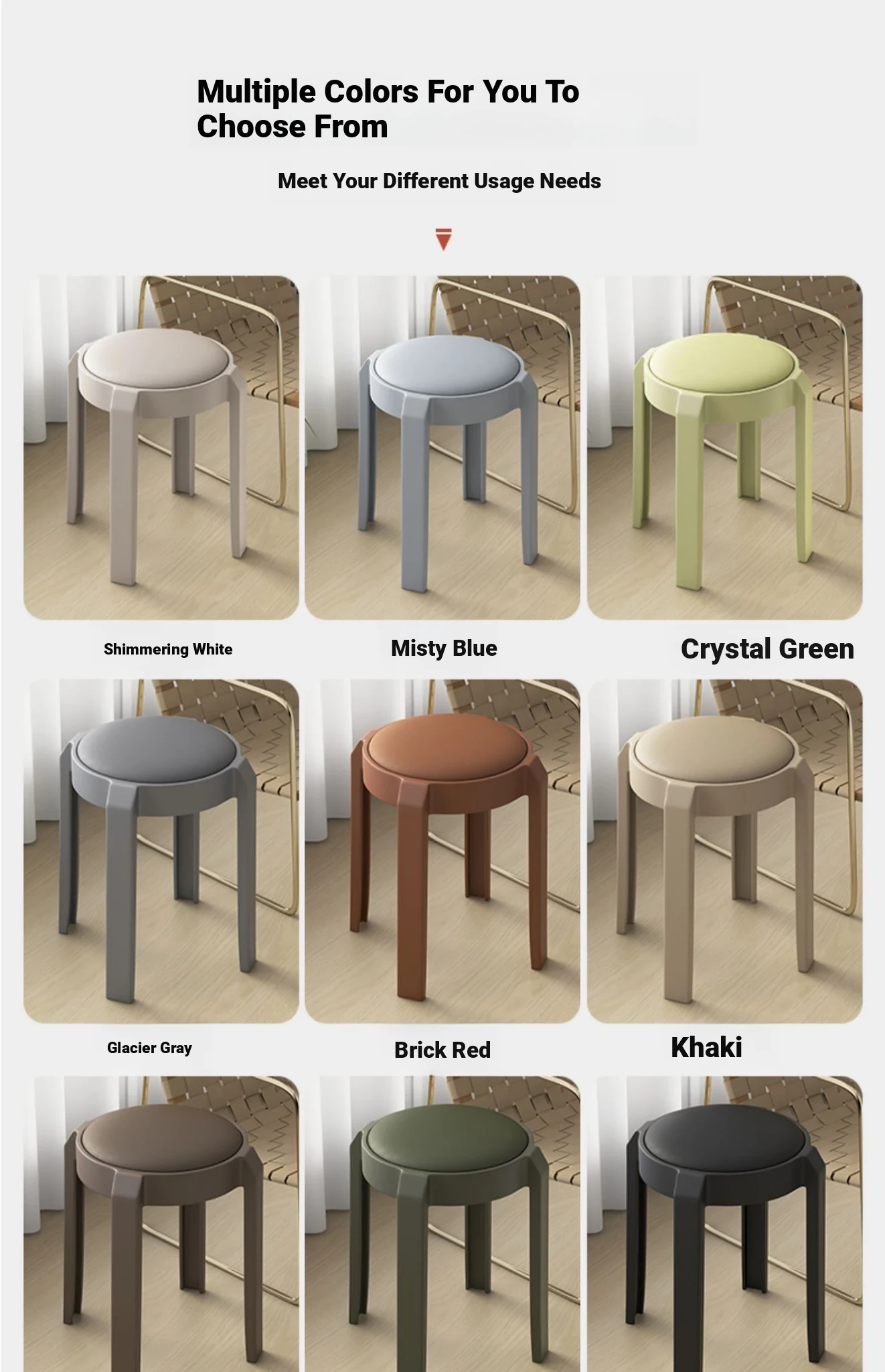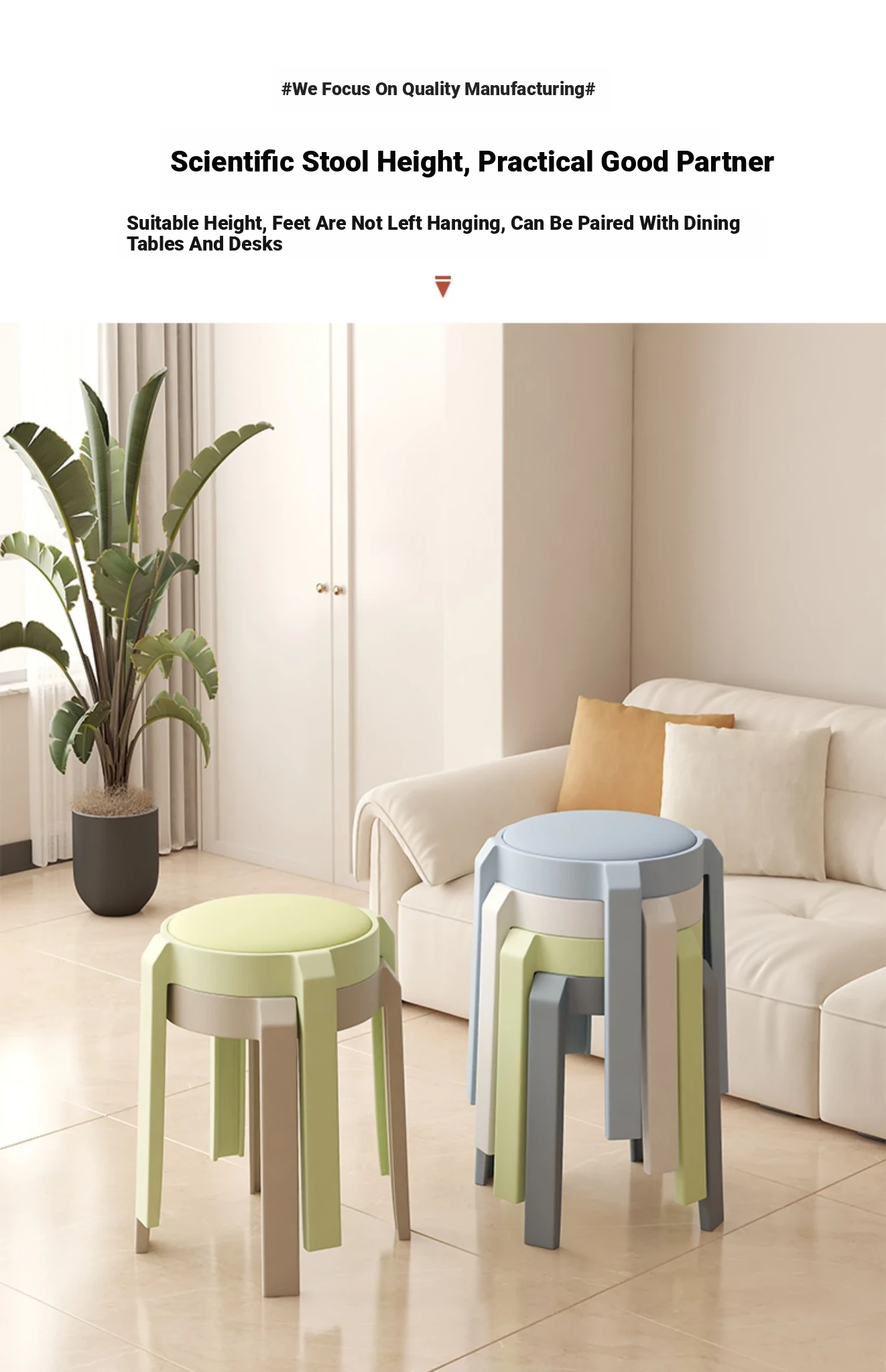 Stylish Stacking Plastic Stool - Premium Quality Round Dining Chair for Home Use, Creative Soft Cushion High Stool, Perfect for Extra Seating at Your Dining Table.