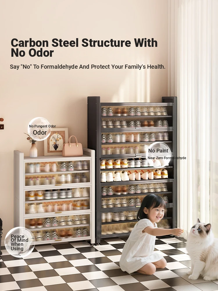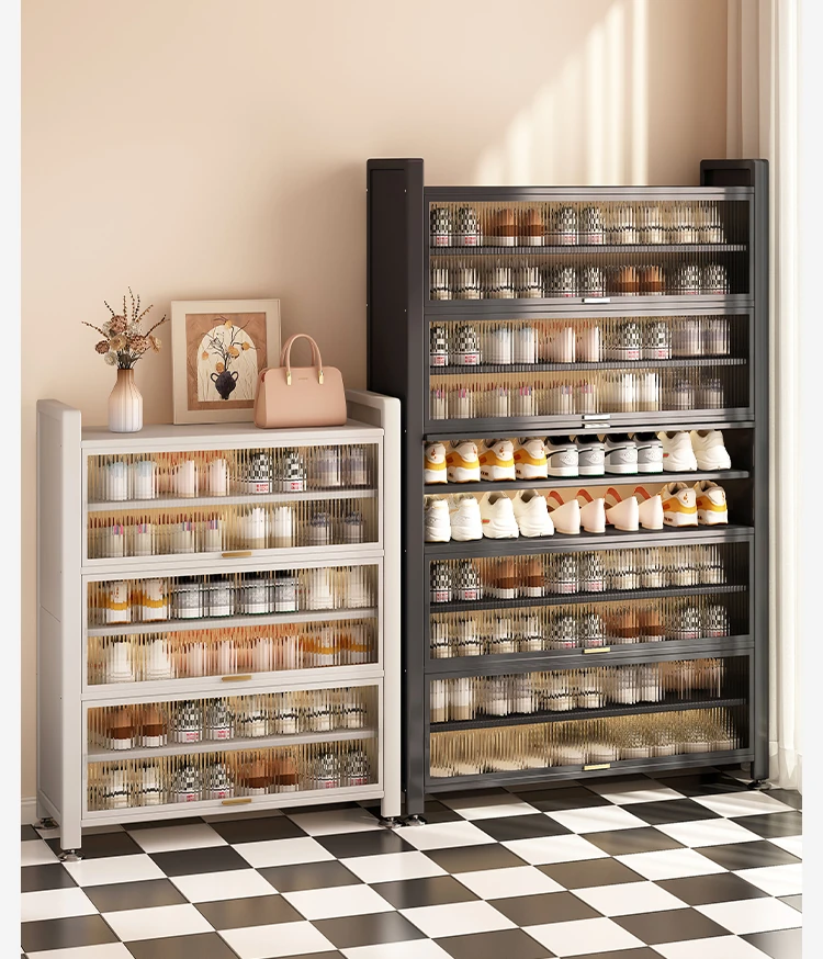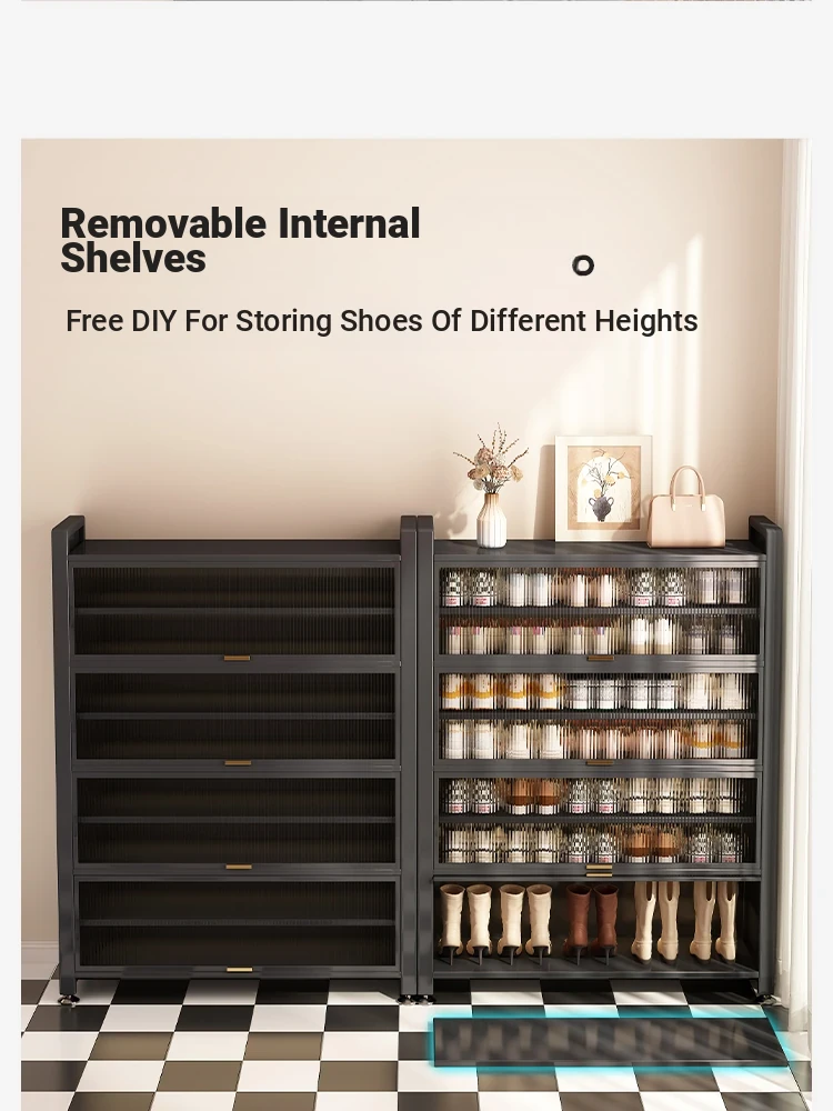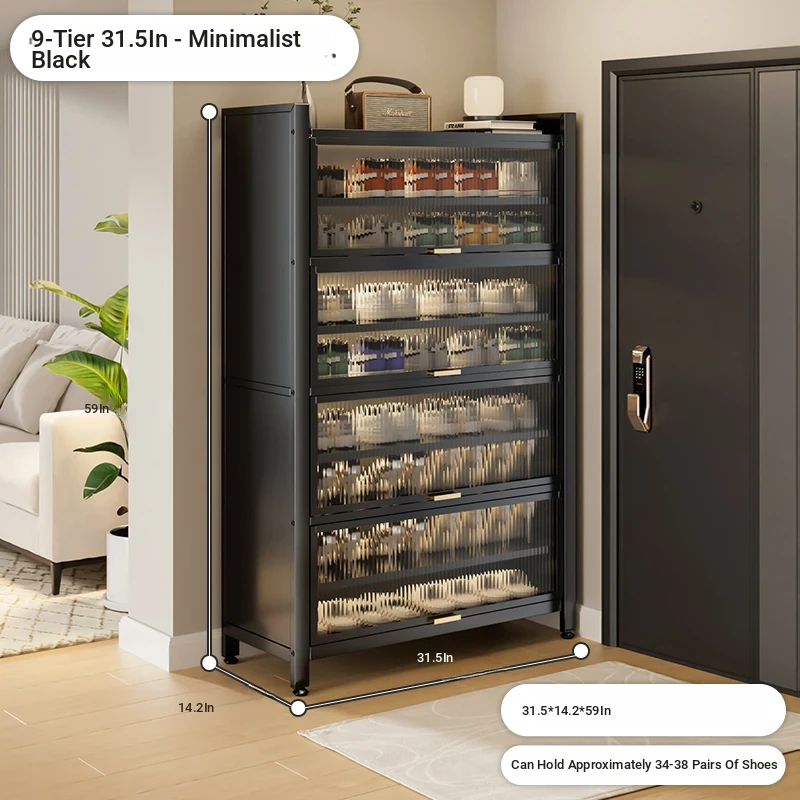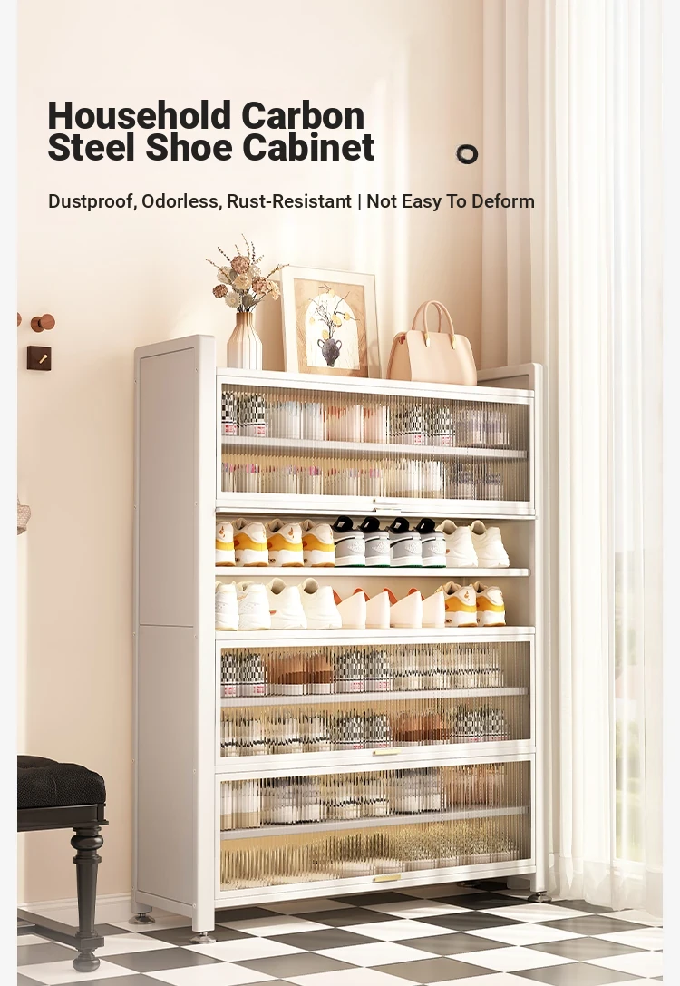 Stylish Steel Shoe Cabinet - Wall-Mounted Entryway Storage Solution for Home, Dust-Proof Floor Shoe Rack for Hallway and Entrance, Perfect for Organizing Your Shoes in Style!