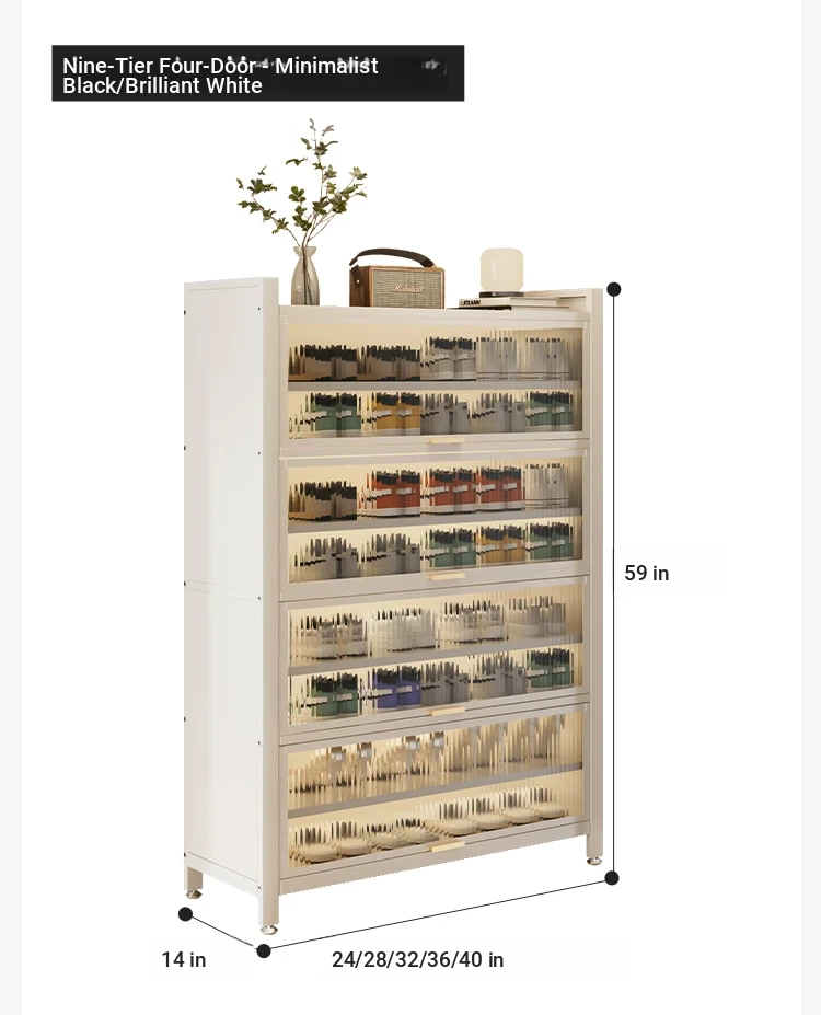 Main drawing⭐Four doors -9 floors 39.37in-bright moon White [thickened carbon steel firm]]