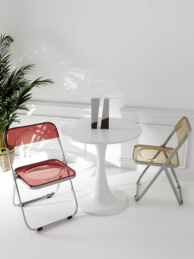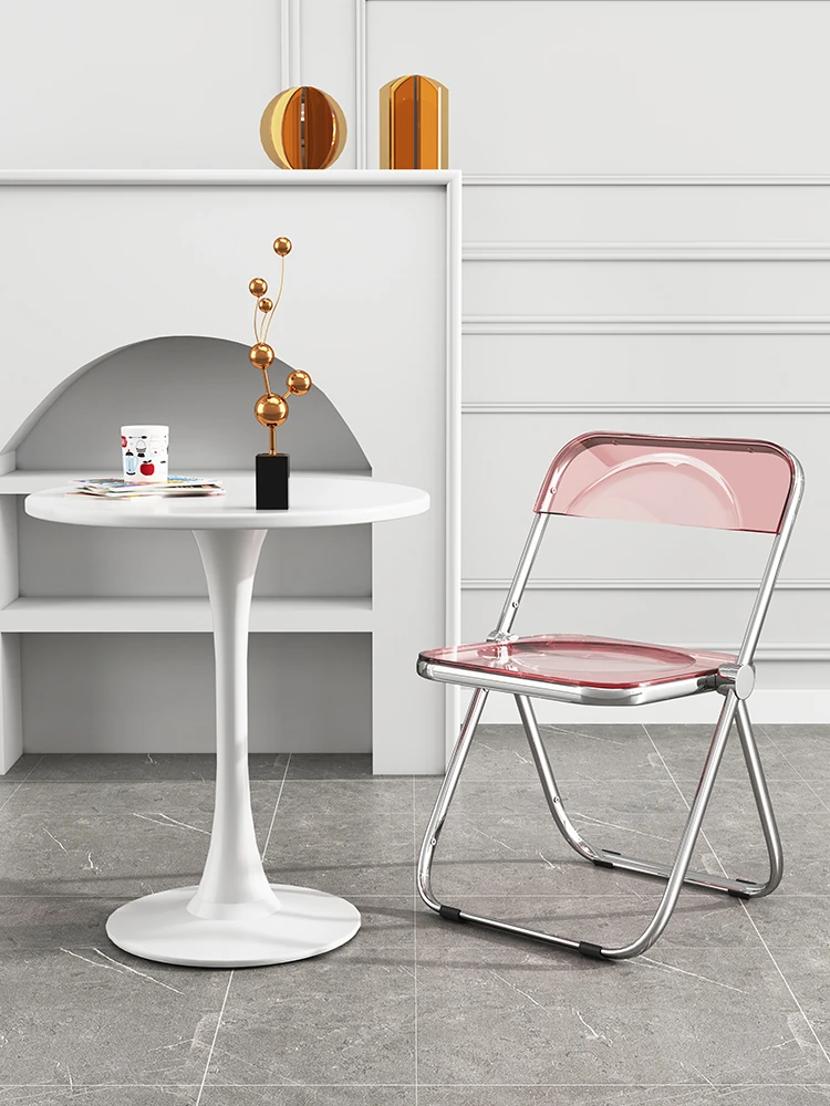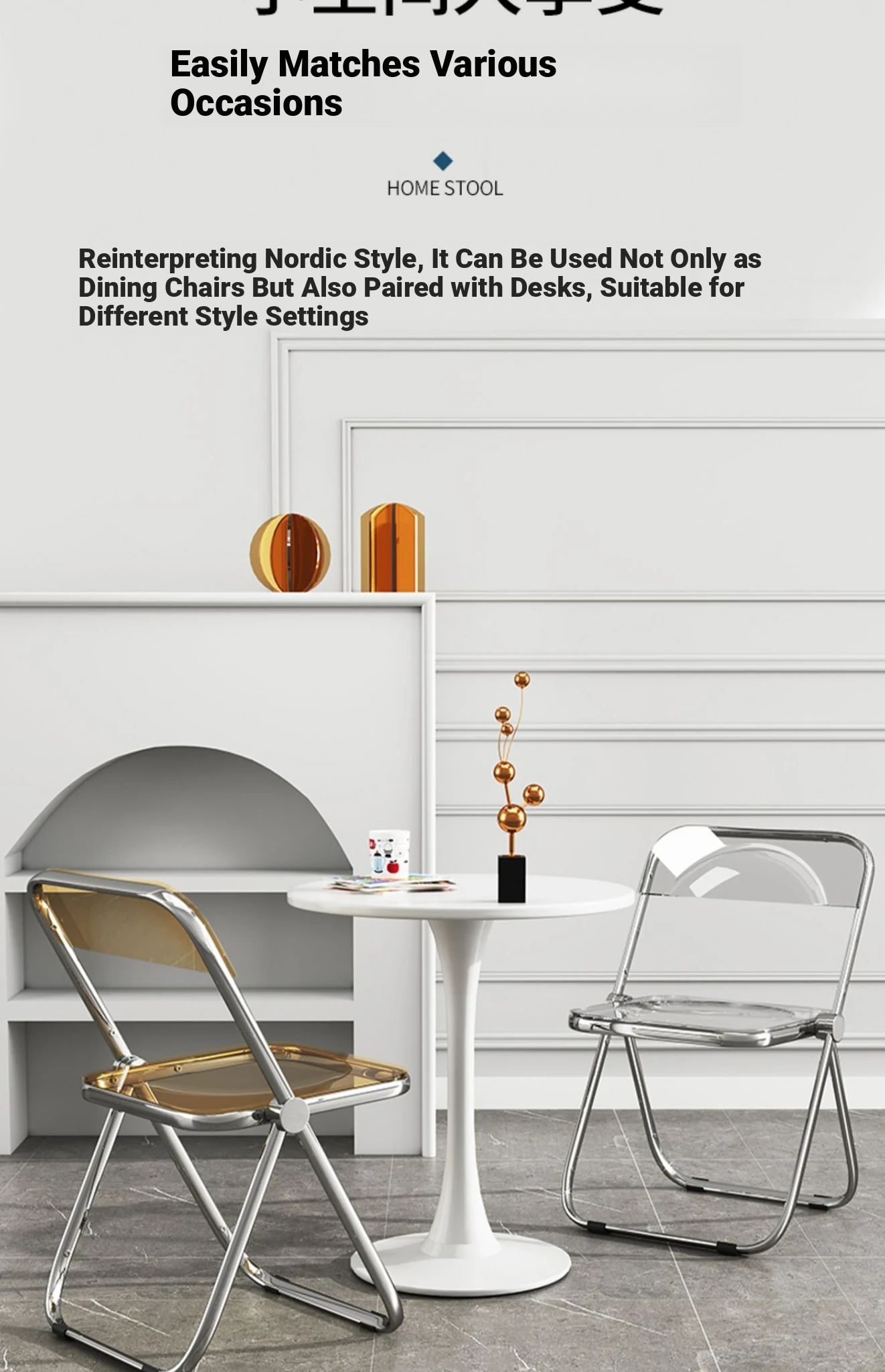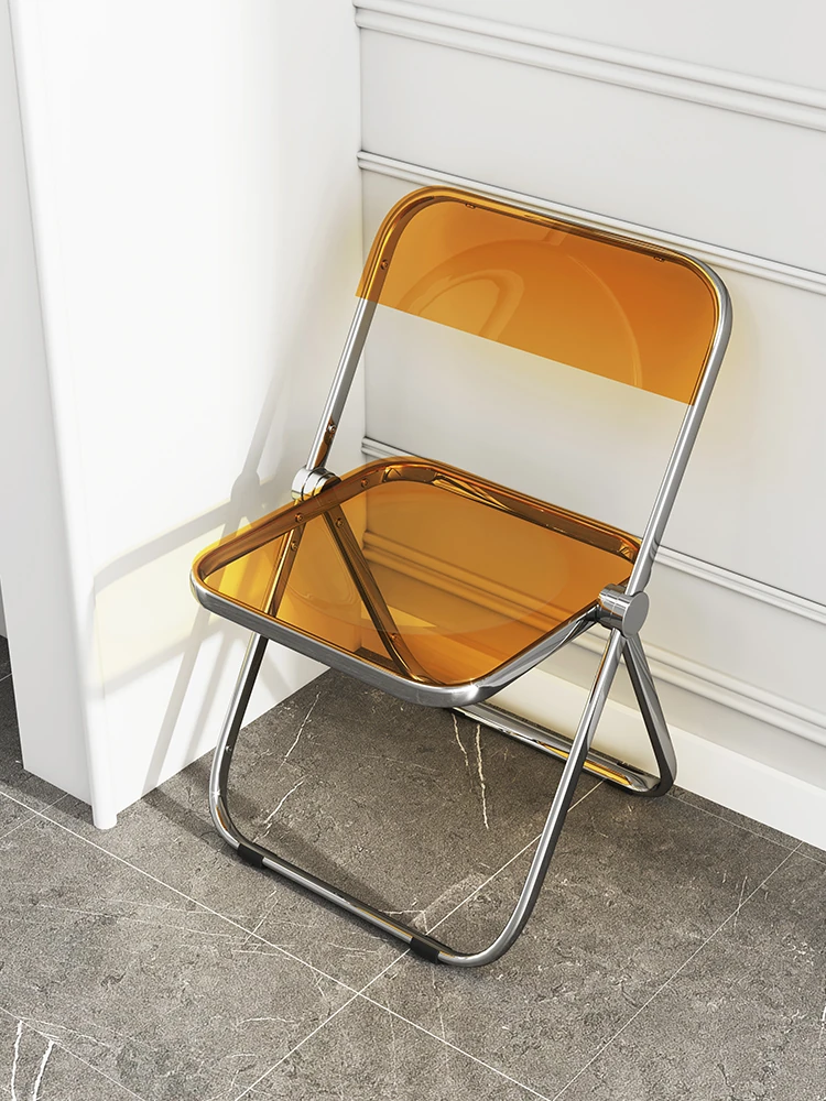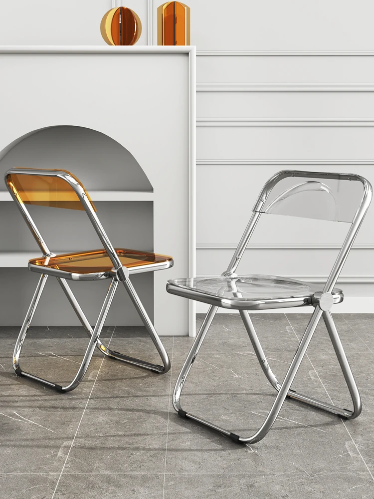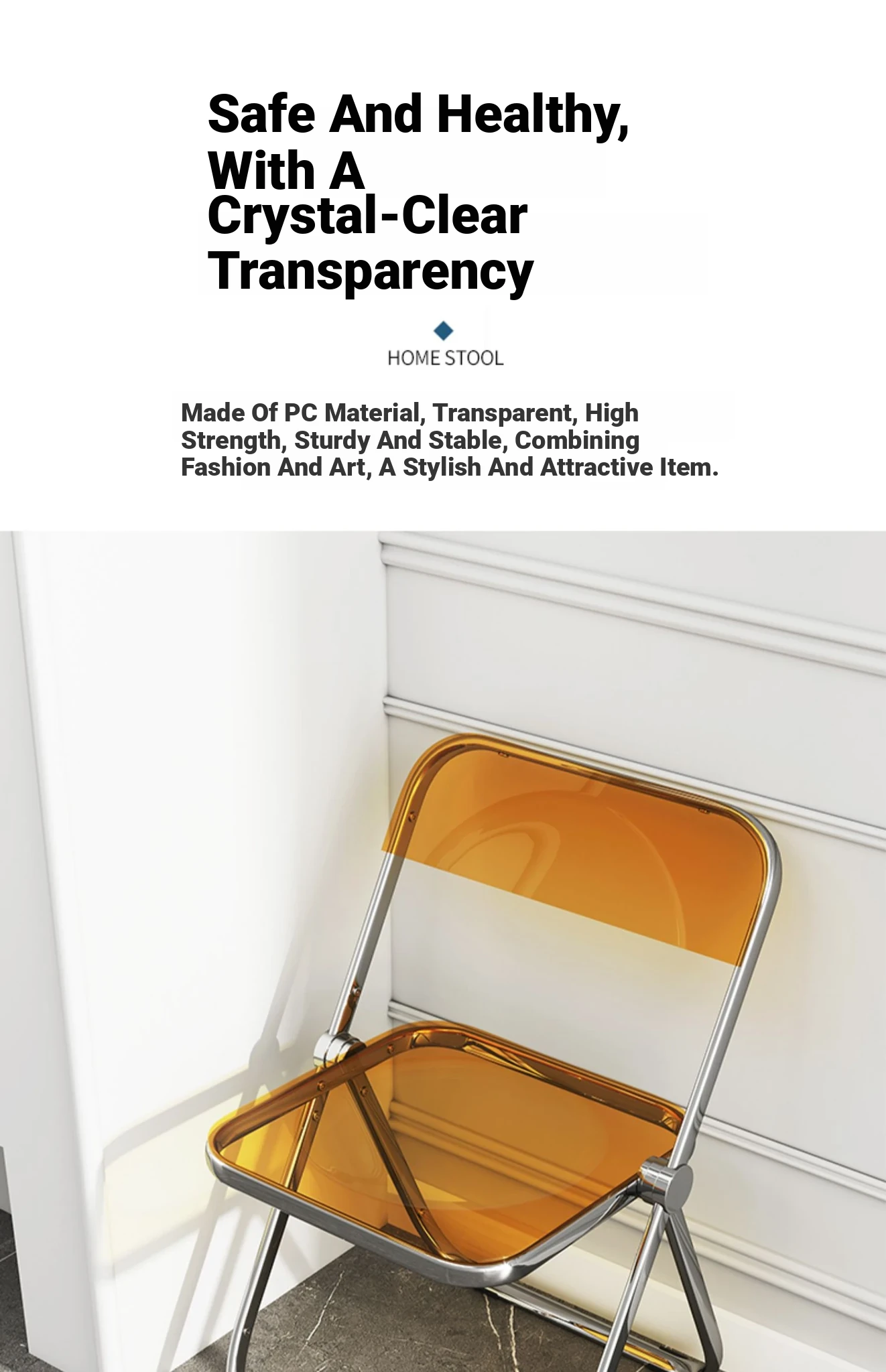 Transparent Acrylic Makeup Stool - Stylish Vanity Chair for Home Dining Table, Modern Minimalist Crystal Folding Chair, Perfect for Trendy Spaces