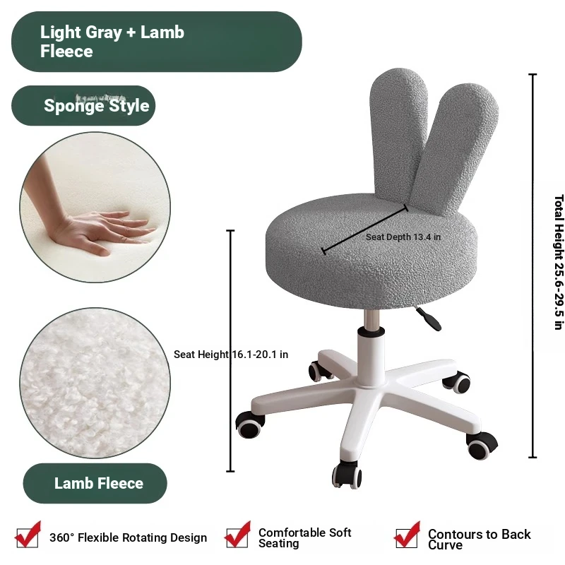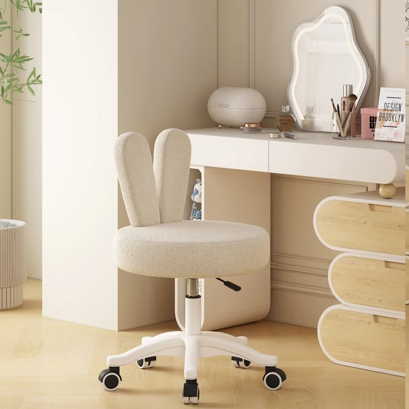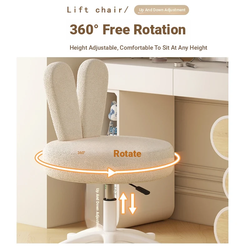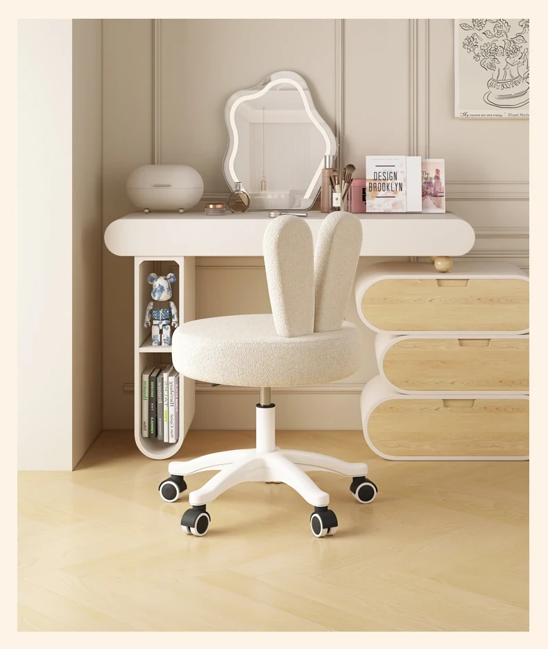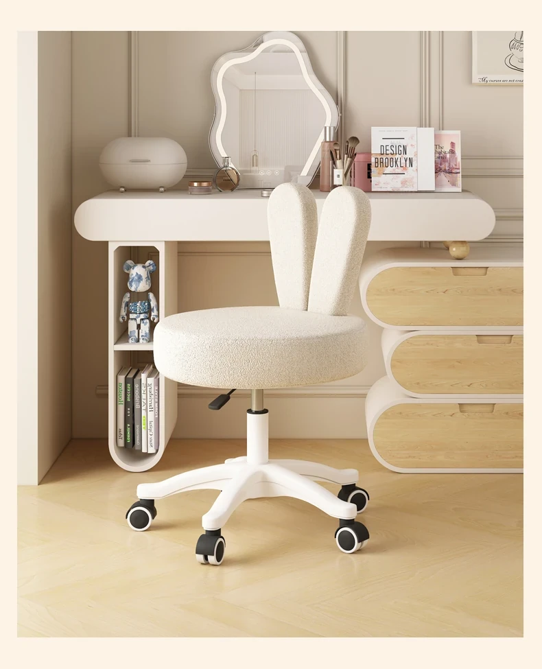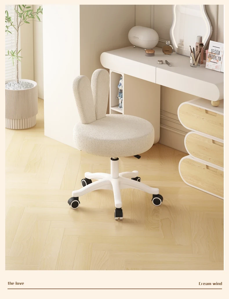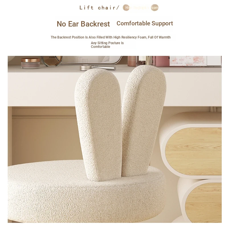 Trendy Makeup Chair for Master Bedroom – Adjustable Height Creamy Aesthetic Chair with Bunny Ear Backrest, Perfect for Your Makeup Vanity or Dressing Room